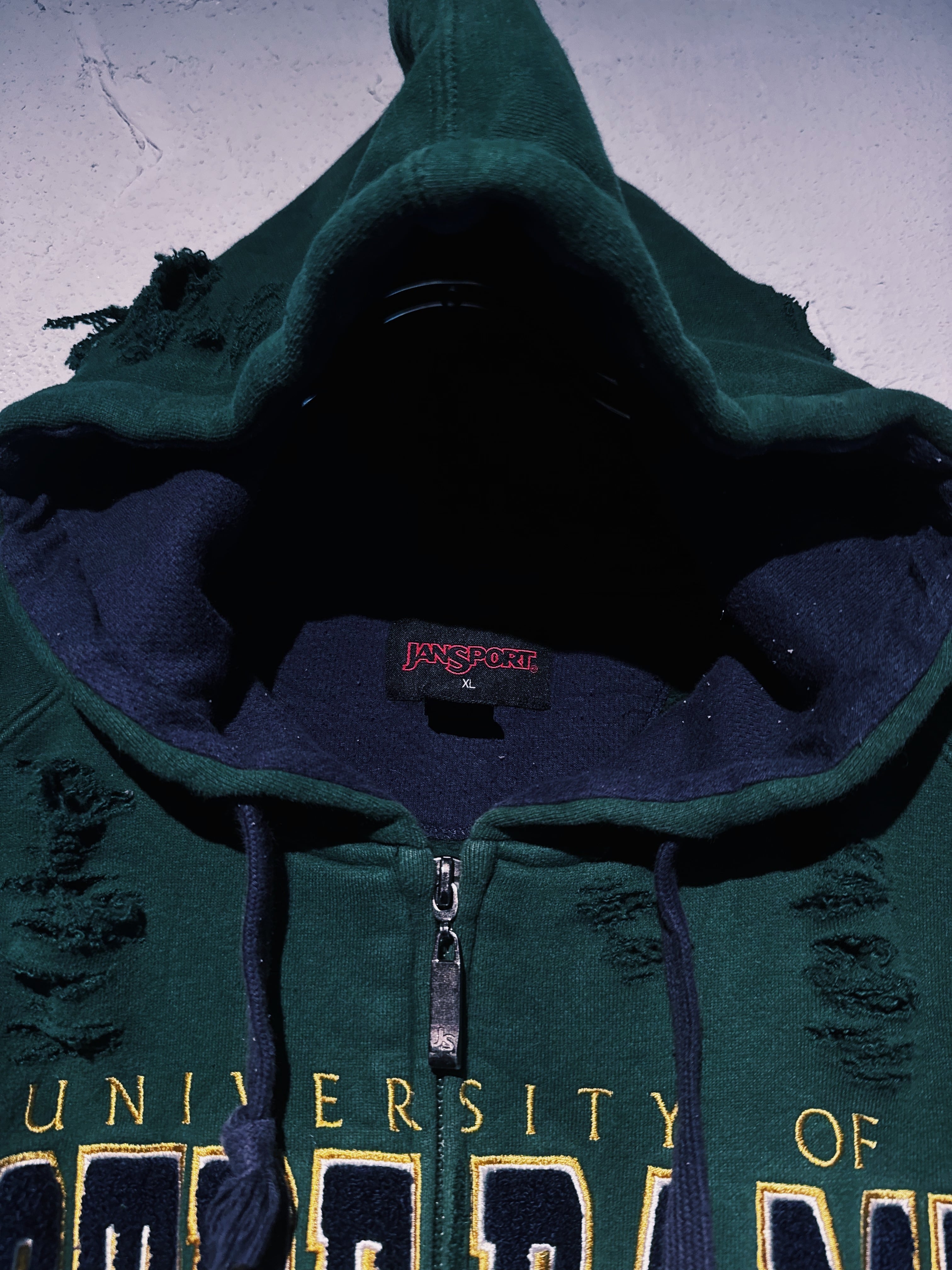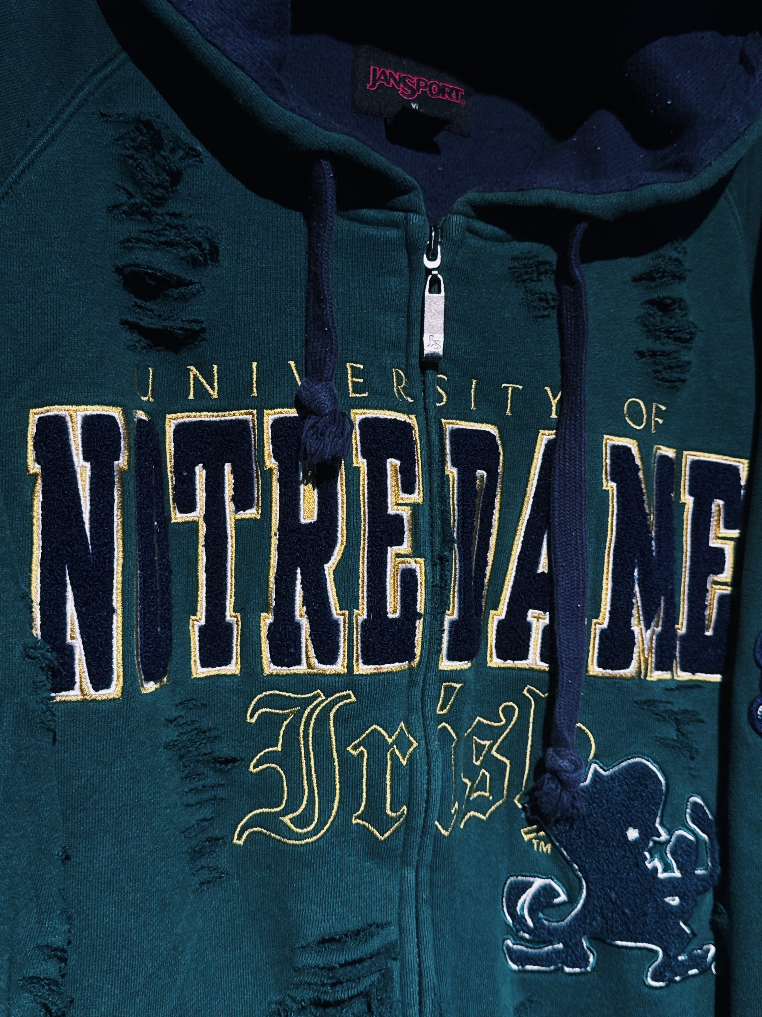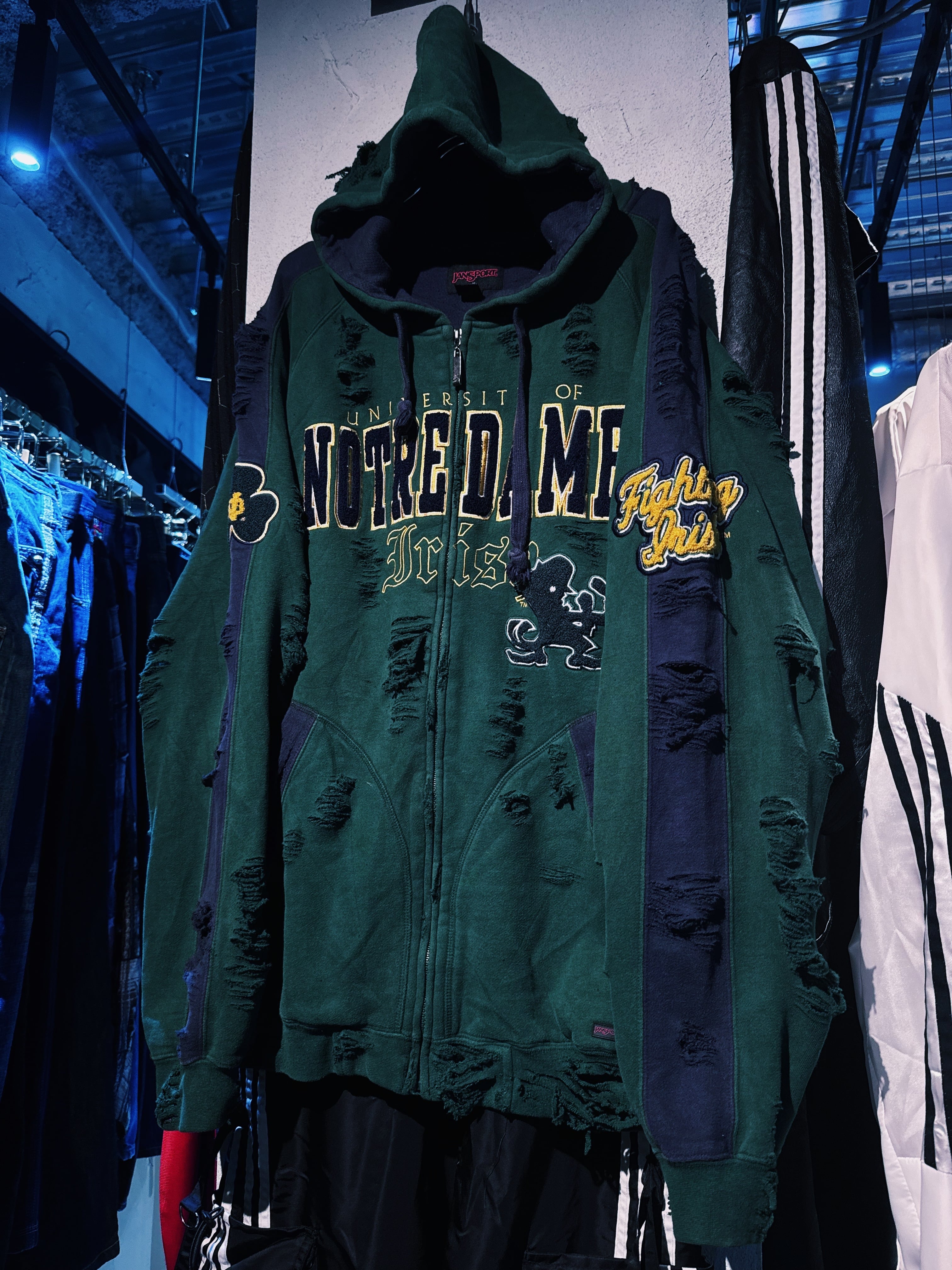 “NOTRE DAME" patchwork design boro custom re:make zip up hoodie