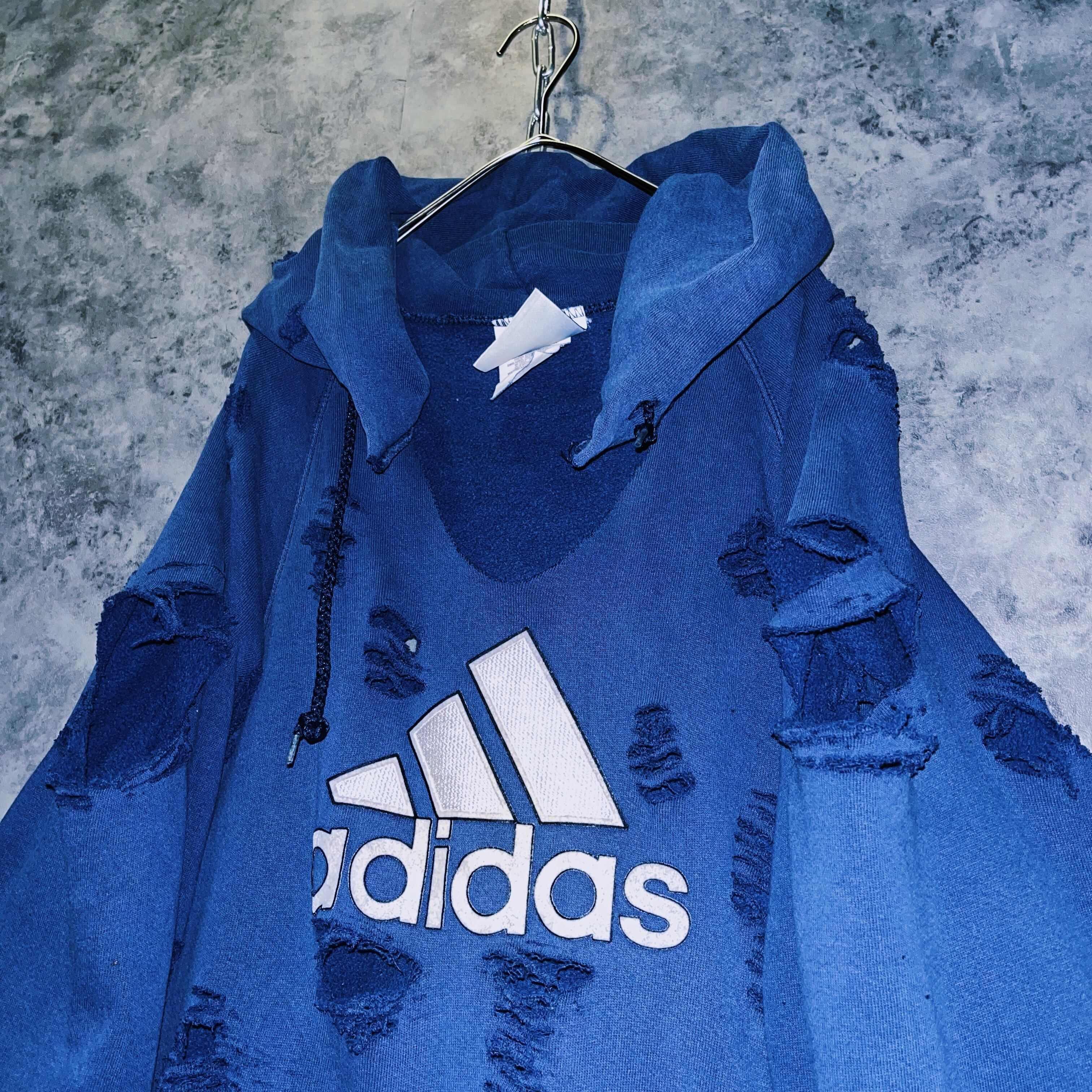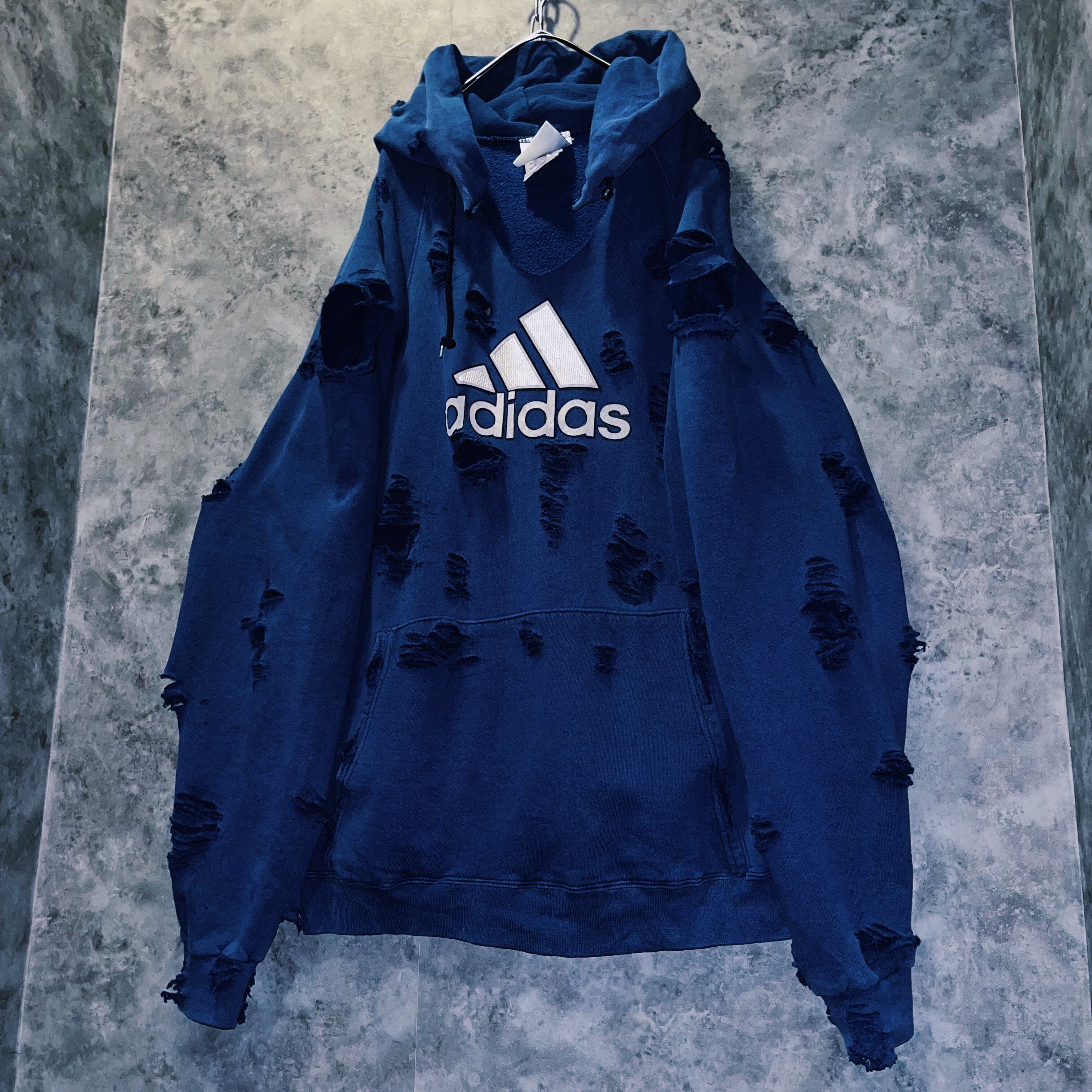 ヴィンテージ“adidas”パフォーマンスロゴデザインボロカスタムスウェットフーディ