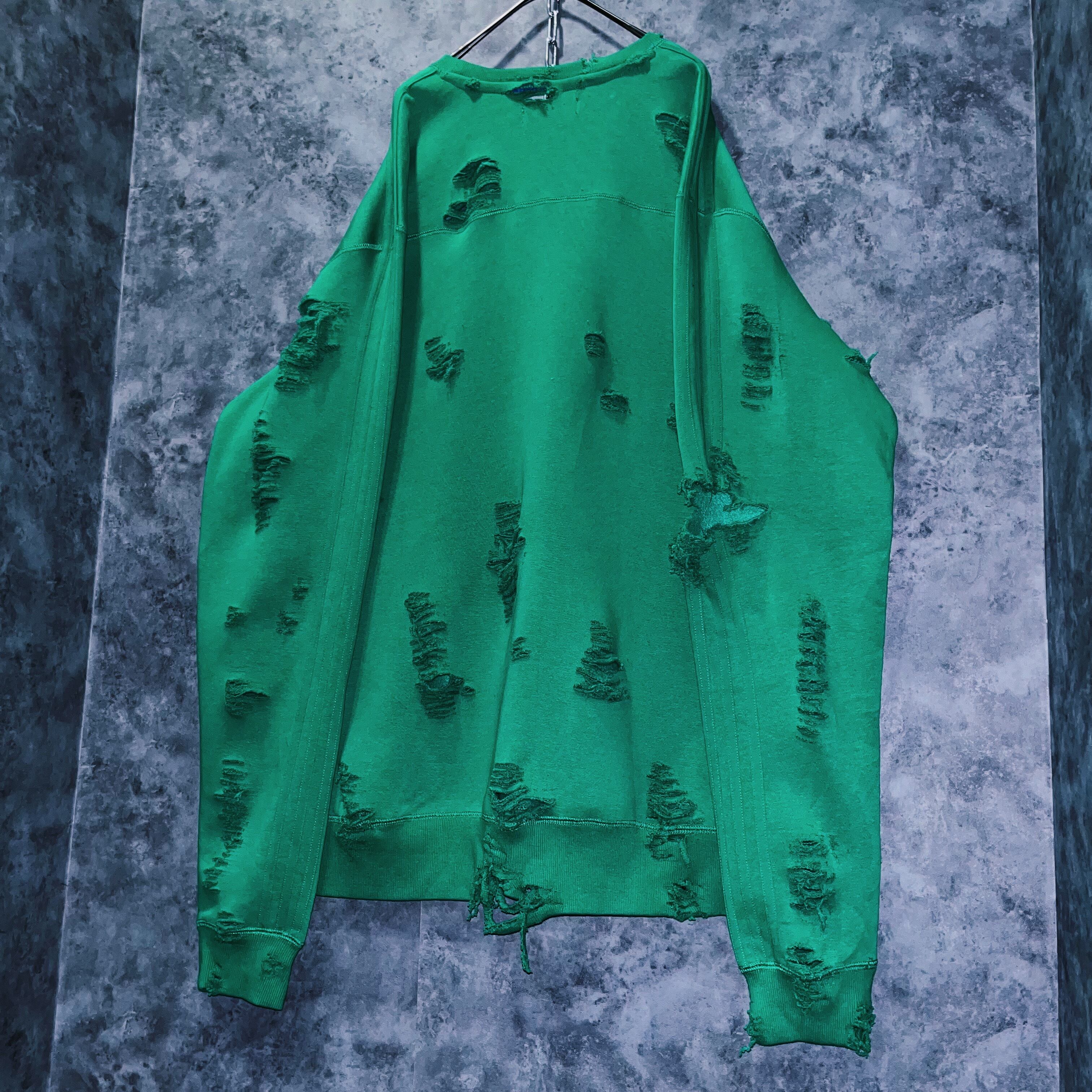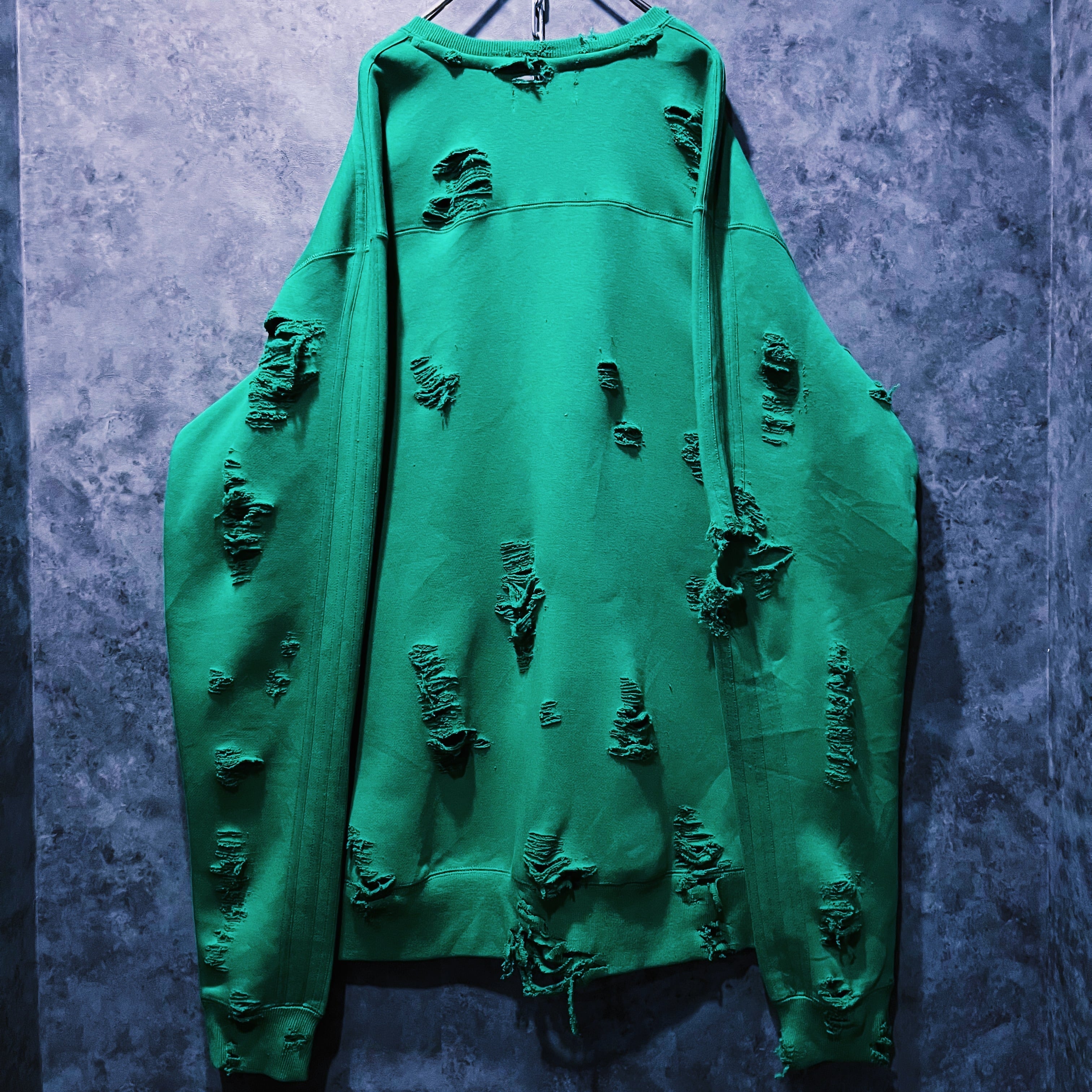 シンプルなデザインながらアーム部分には同カラーでスリーストライプが施された“adidas”の要素が詰め込まれた贅沢な一枚。そこに当店自慢のボロカスタムを重ねた極上のデザイン。