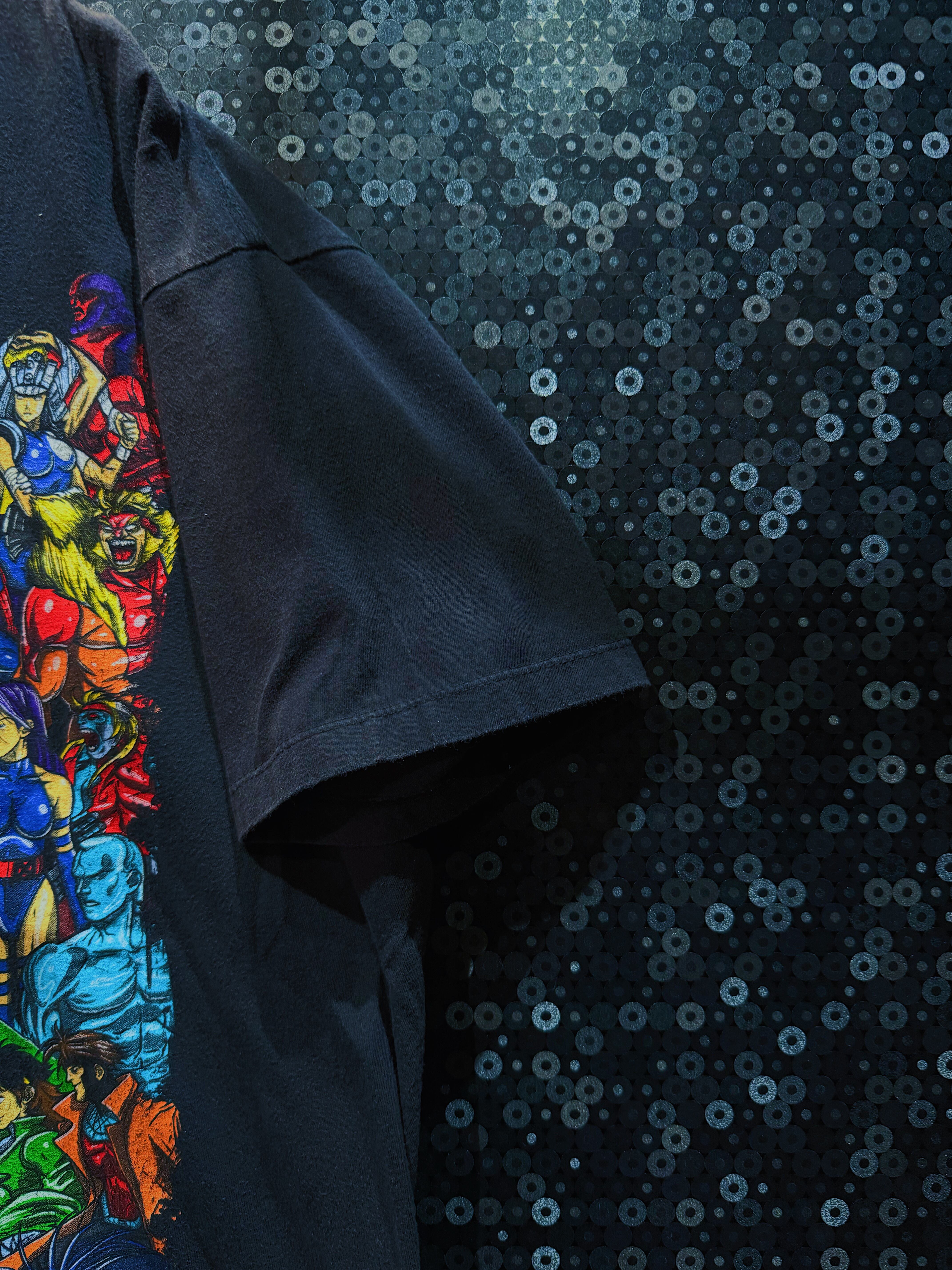 まさに夢の対決が布の上で実現した一枚。MARVELとCAPCOMという異なる二大ユニバースのキャラクターたちが一堂に会する「MARVEL VS CAPCOM」シリーズは、1996年から続く格闘ゲームの金字塔。