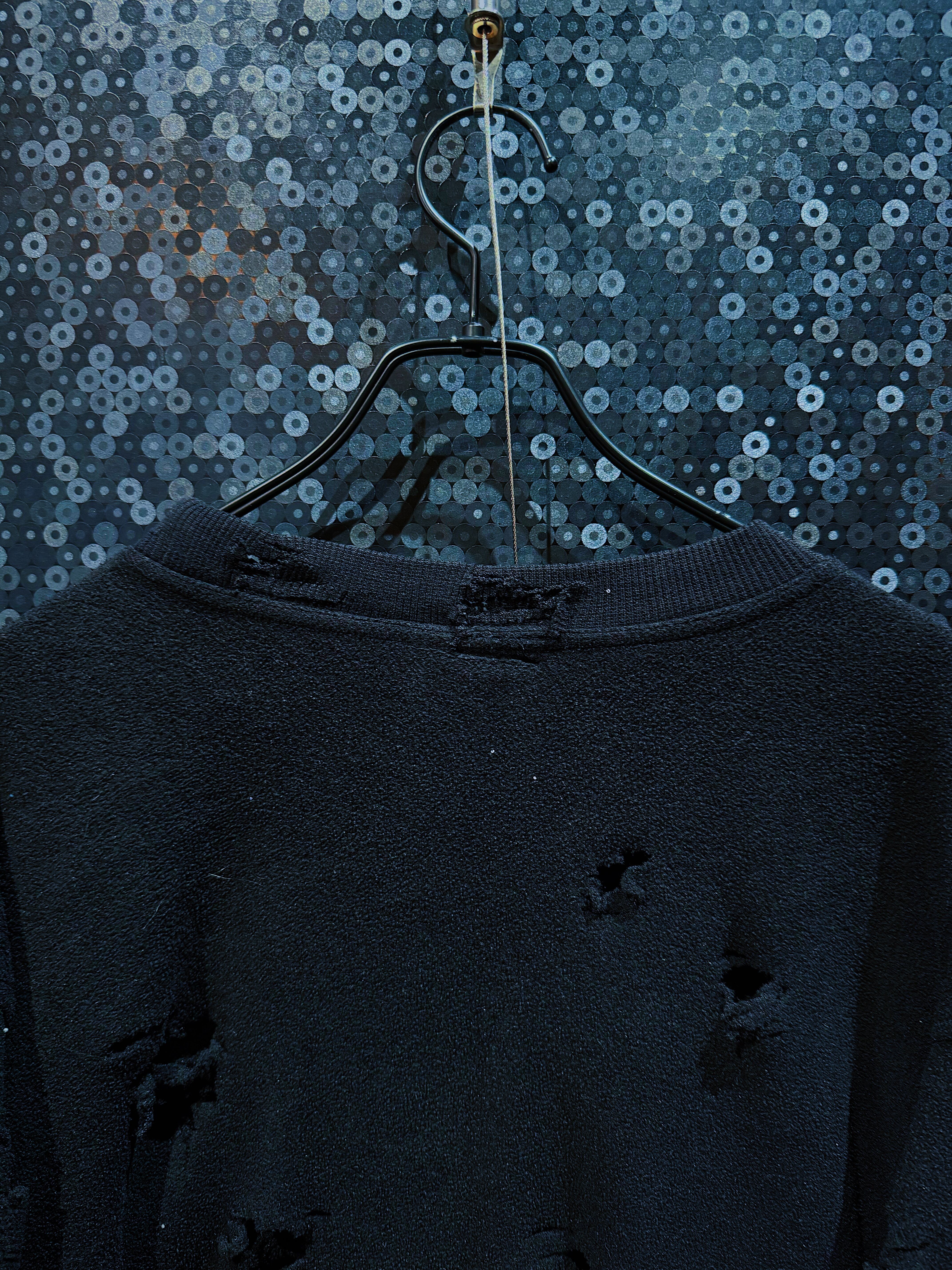 ブラックのヴィンテージadidasスウェットを使用し、随所に大胆なダメージ加工を施したボロリメイク仕様。