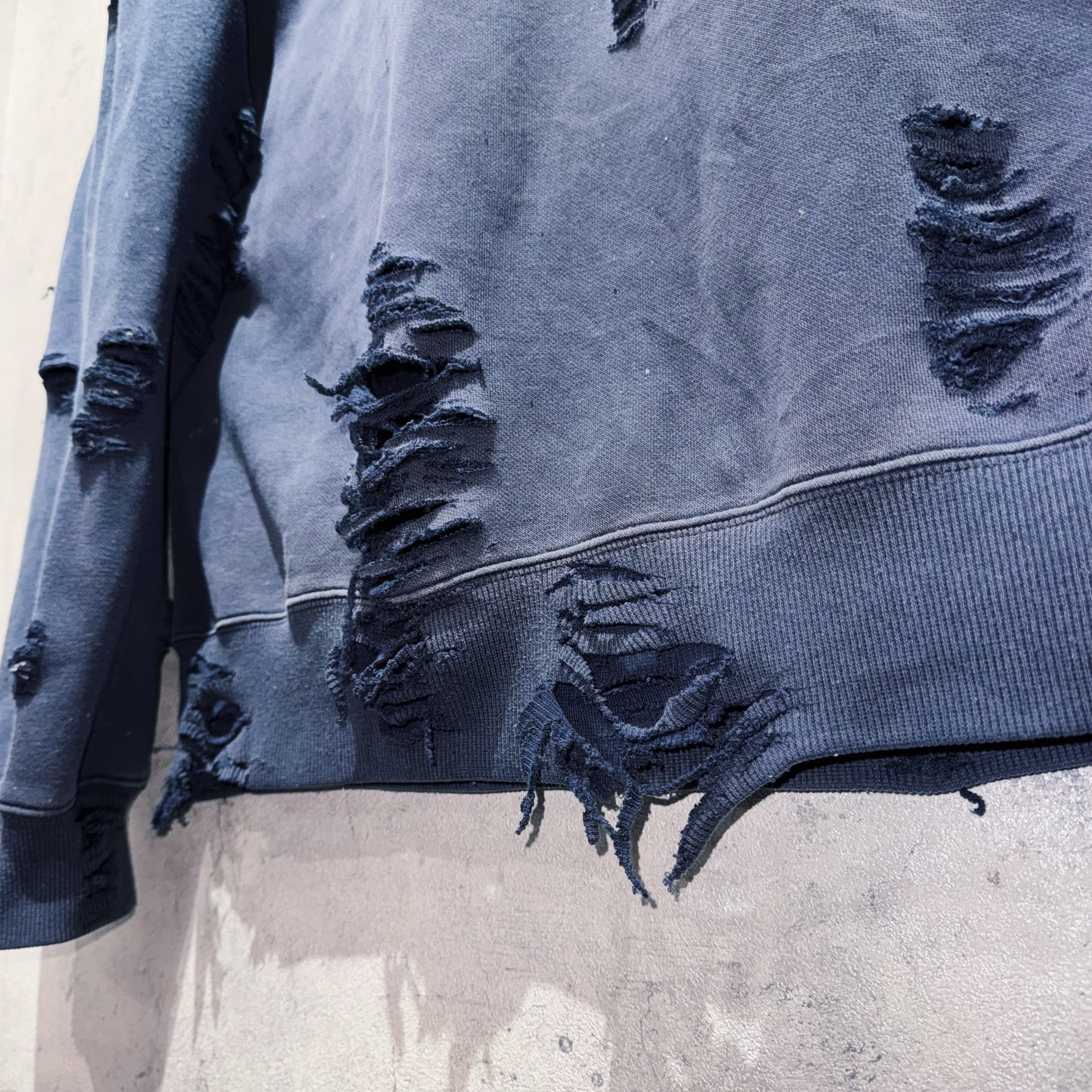 "ADIDAS"のボディを贅沢に採用したボロスウェット。デザイナーズブランドでもダメージアイテムが近年増えてきていますが、それに引けを取らない精密なダメージ技術は間違いなく一流。