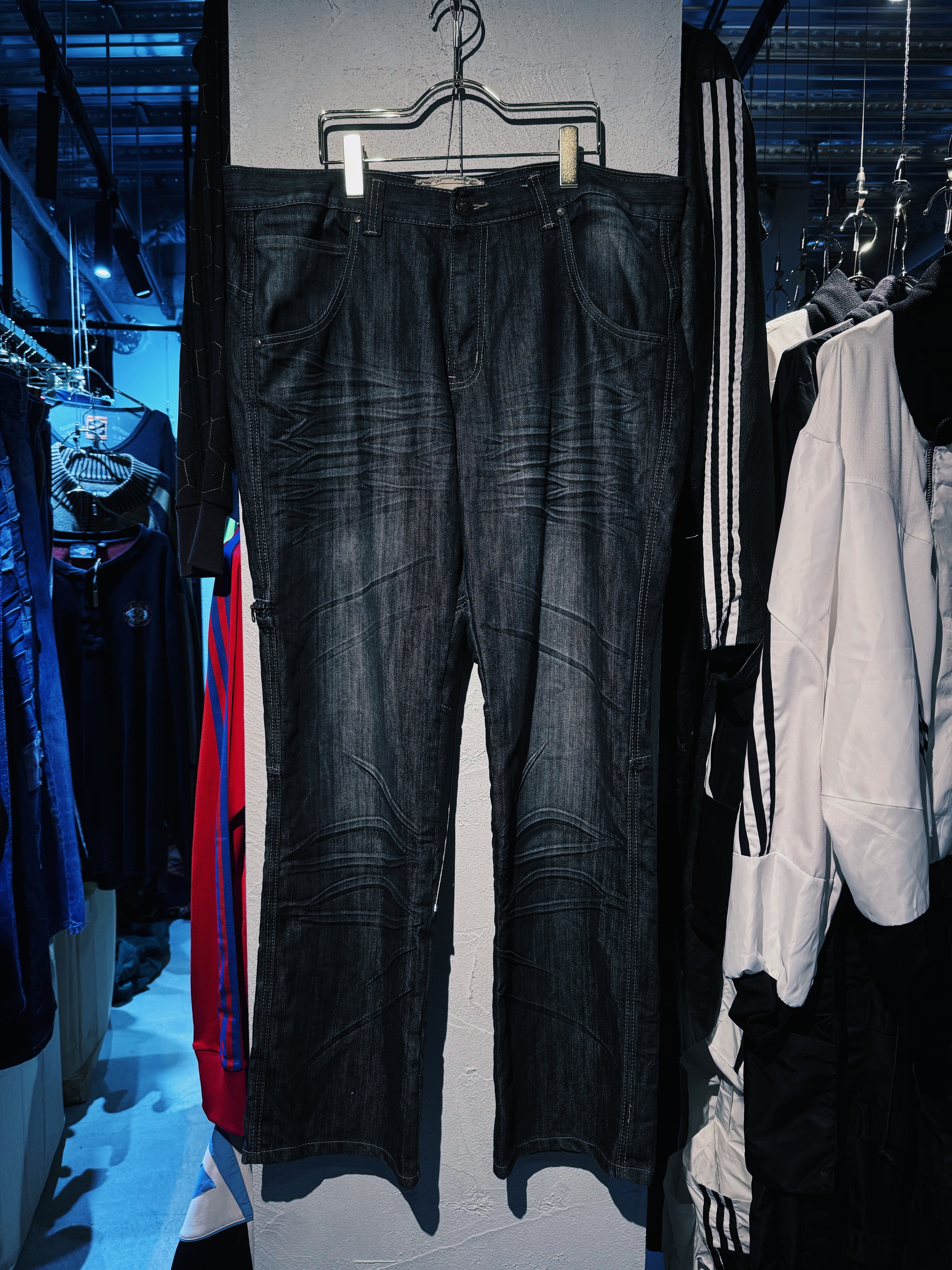 フェード感のあるヴィンテージの風合いを感じるデニムに、全体を走る割れのデザインを施した圧巻の一枚。