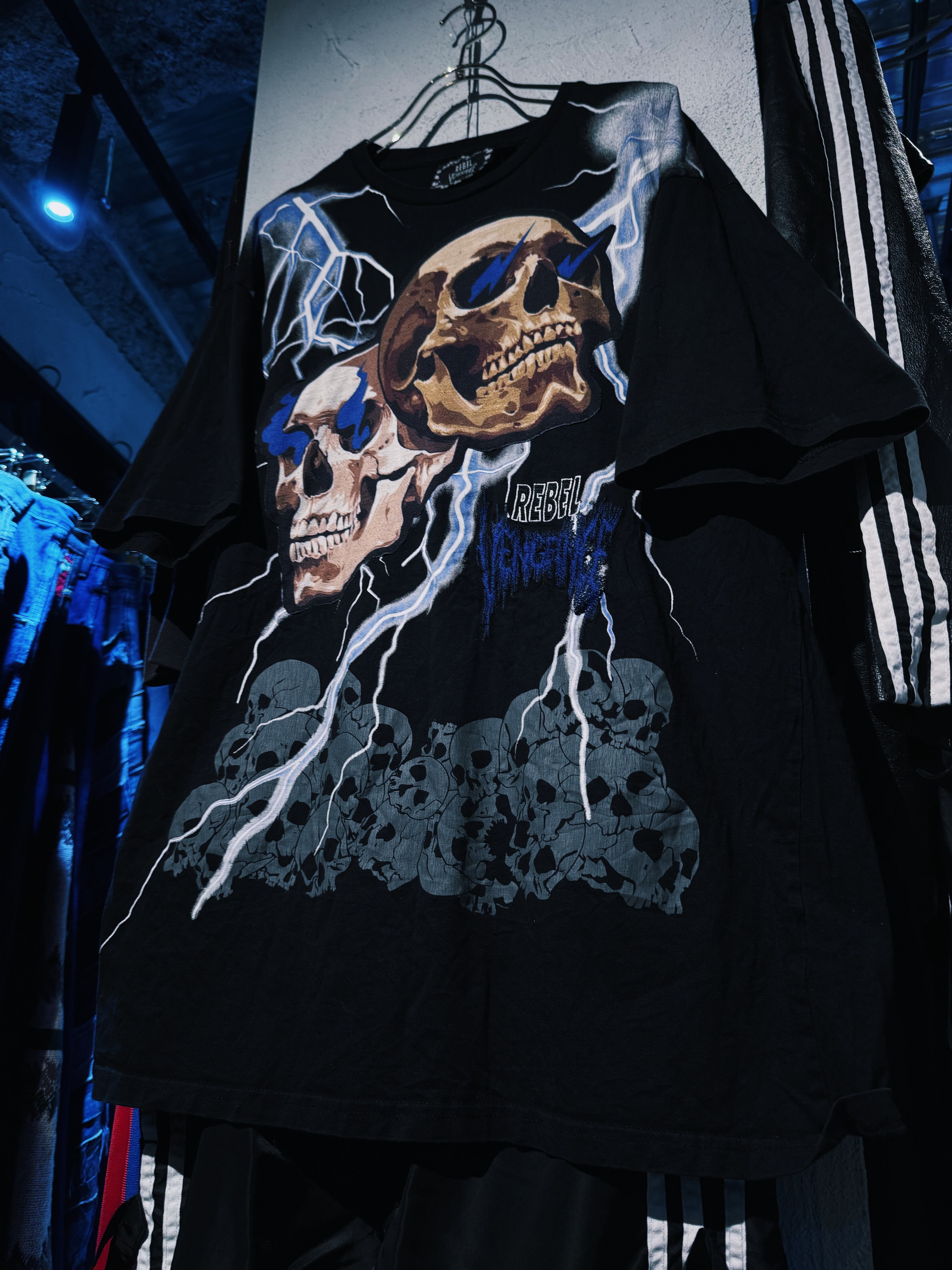 vintage "REBEL VENGEANCE" thunder twin Skull design S/S T shirt