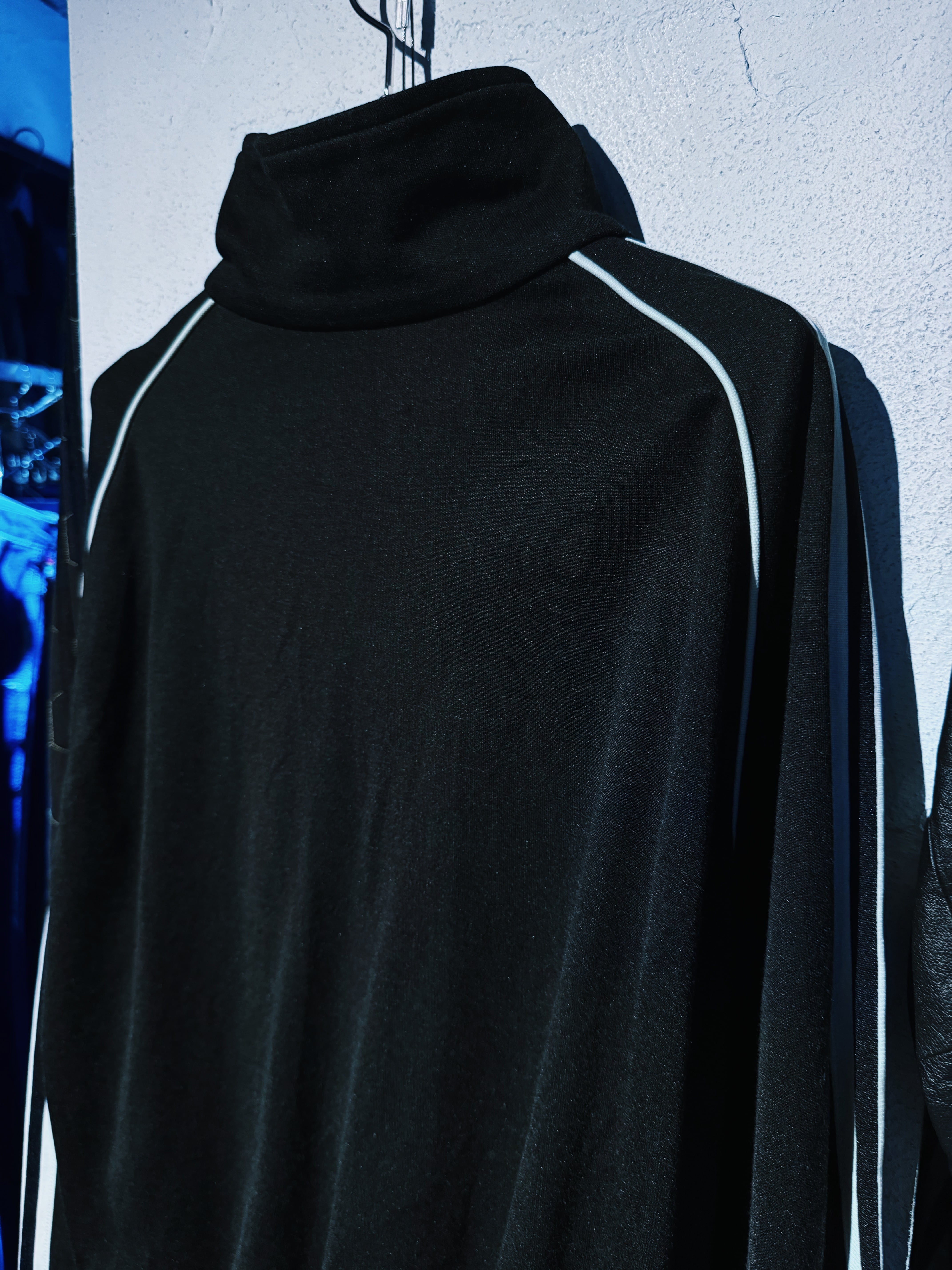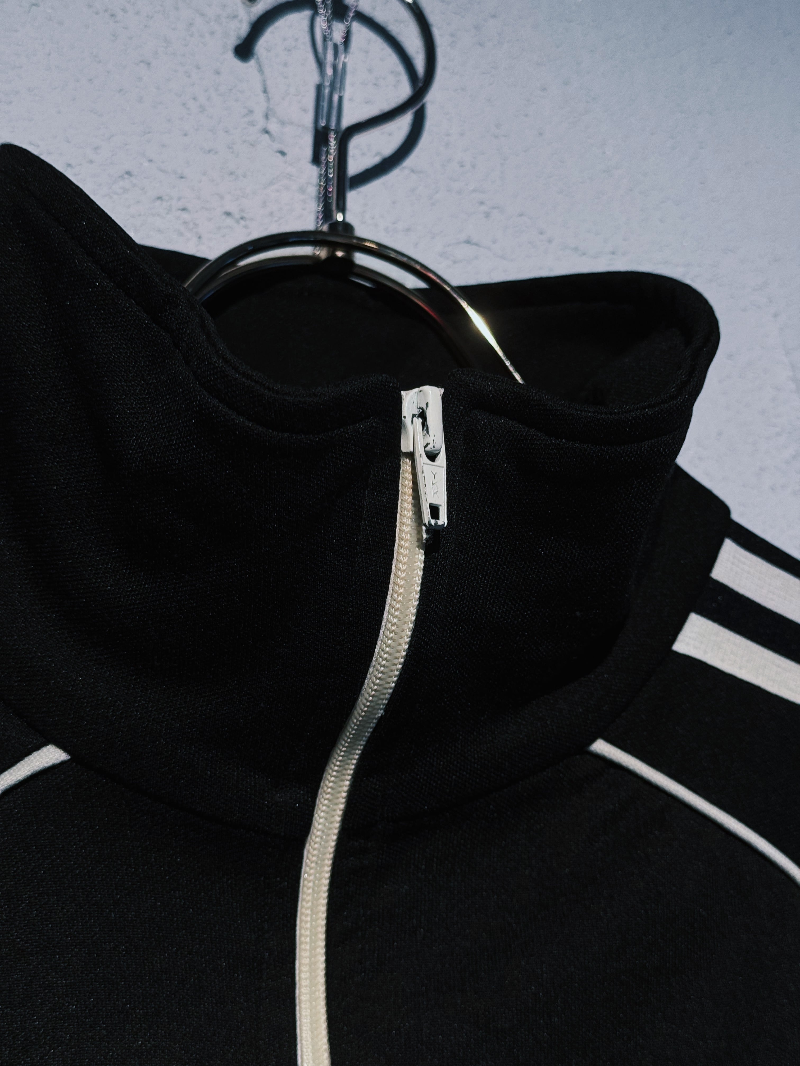 毎度即完のモノトーンカラーのボディにクラシカルなストライプを載せたスタンドネックタイプのトラックジャケット。