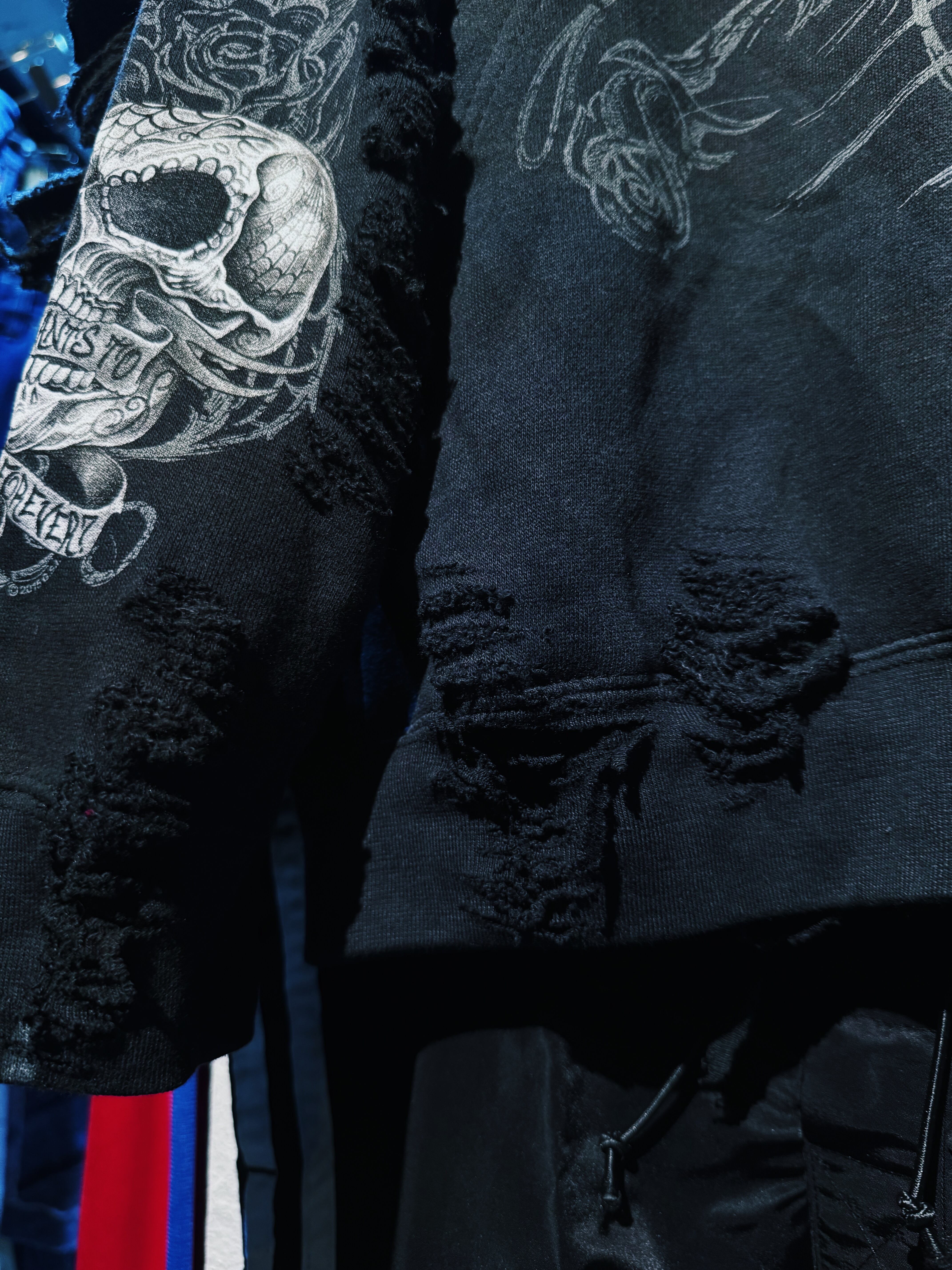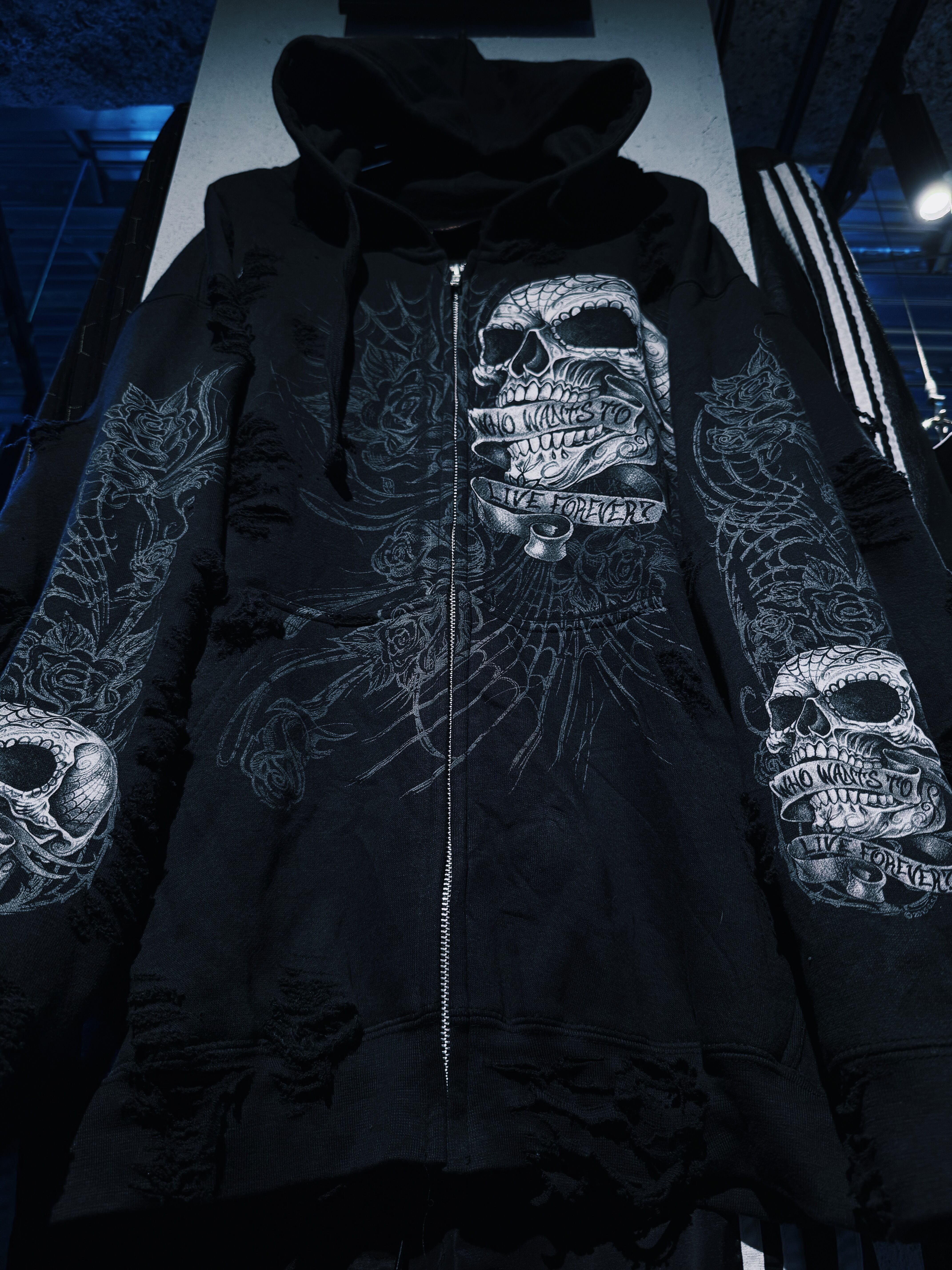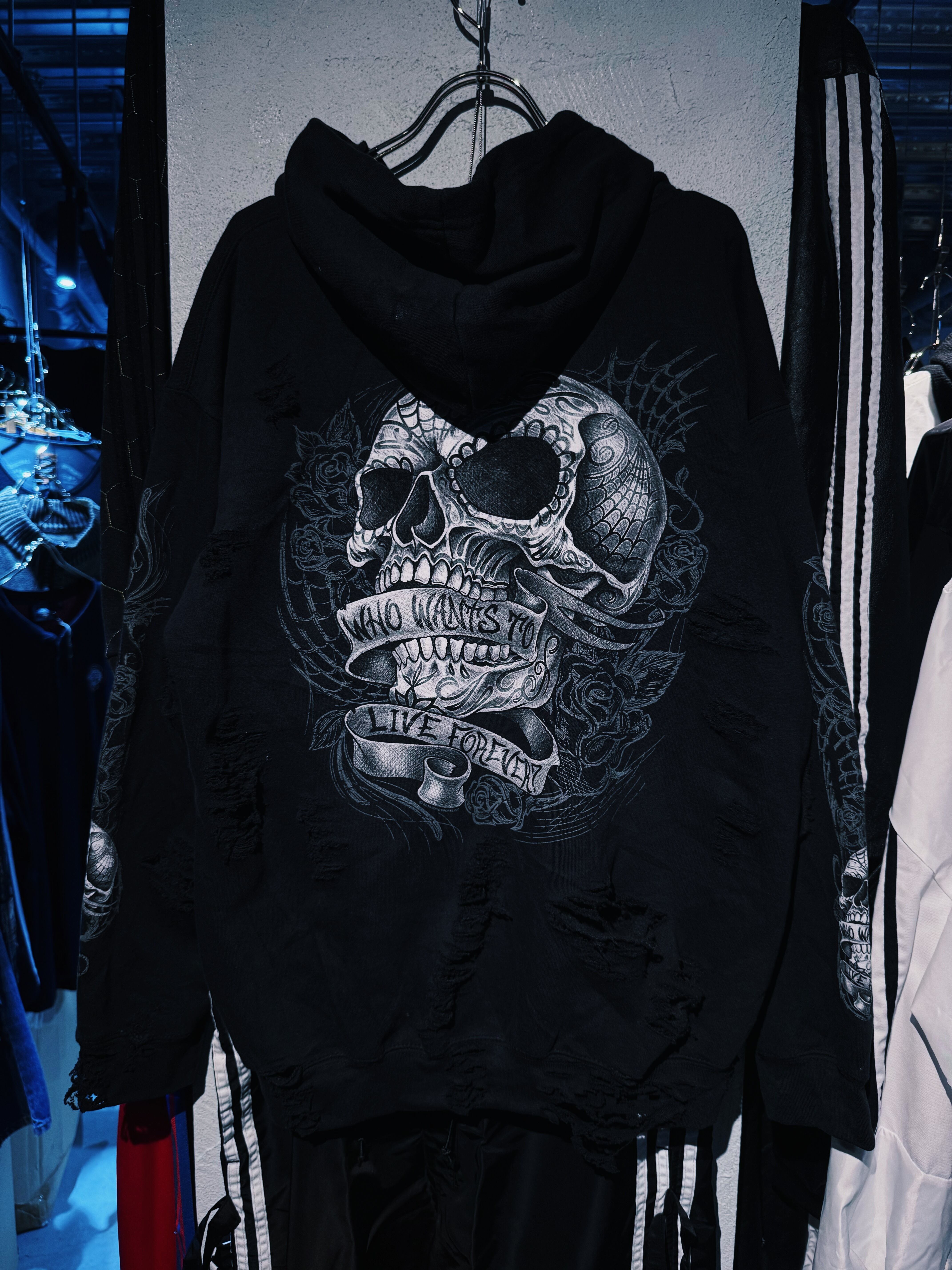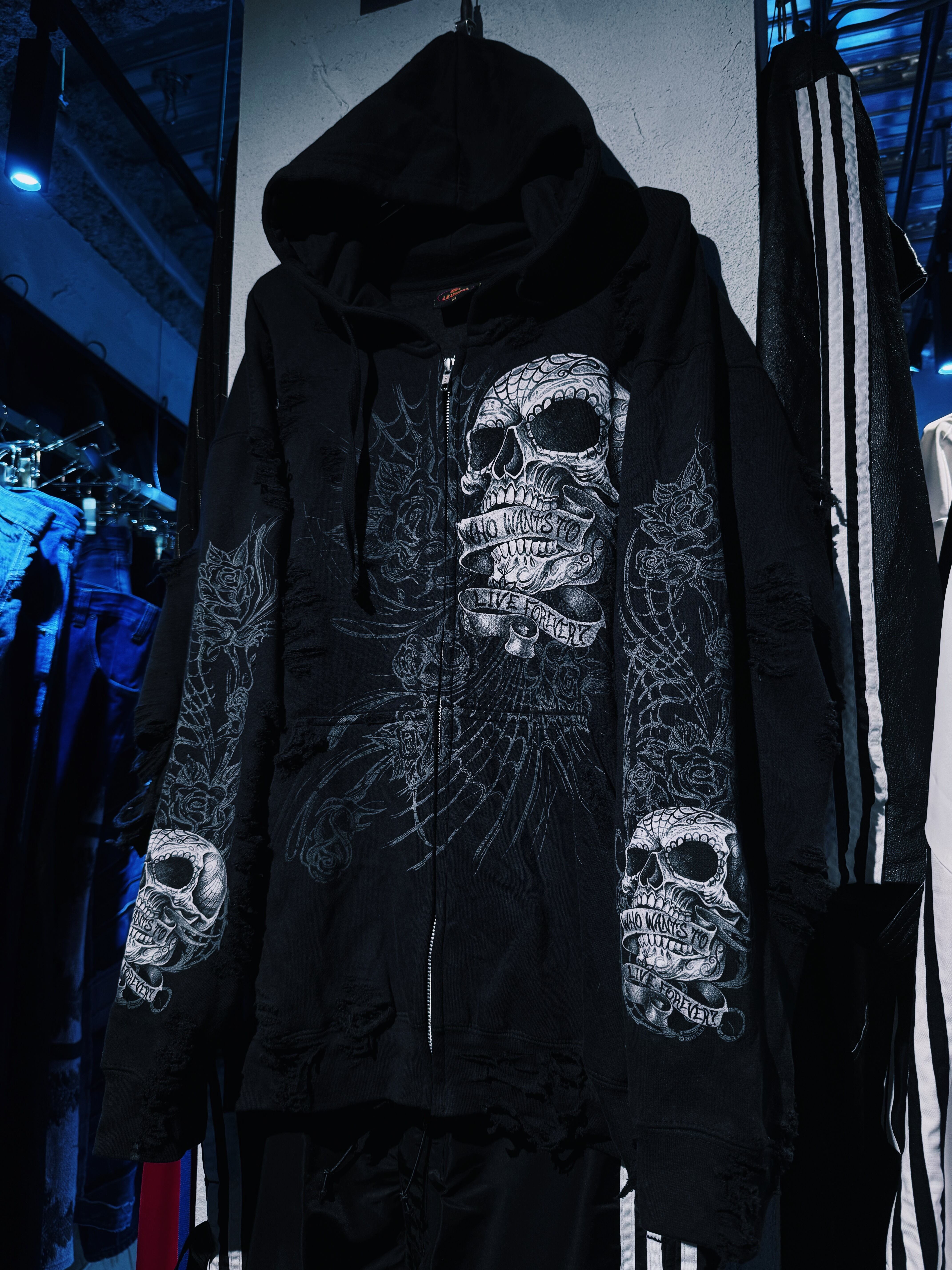 【D4C】vintage full pattern skull & rose tatoo print design zip up boro custom hoodie