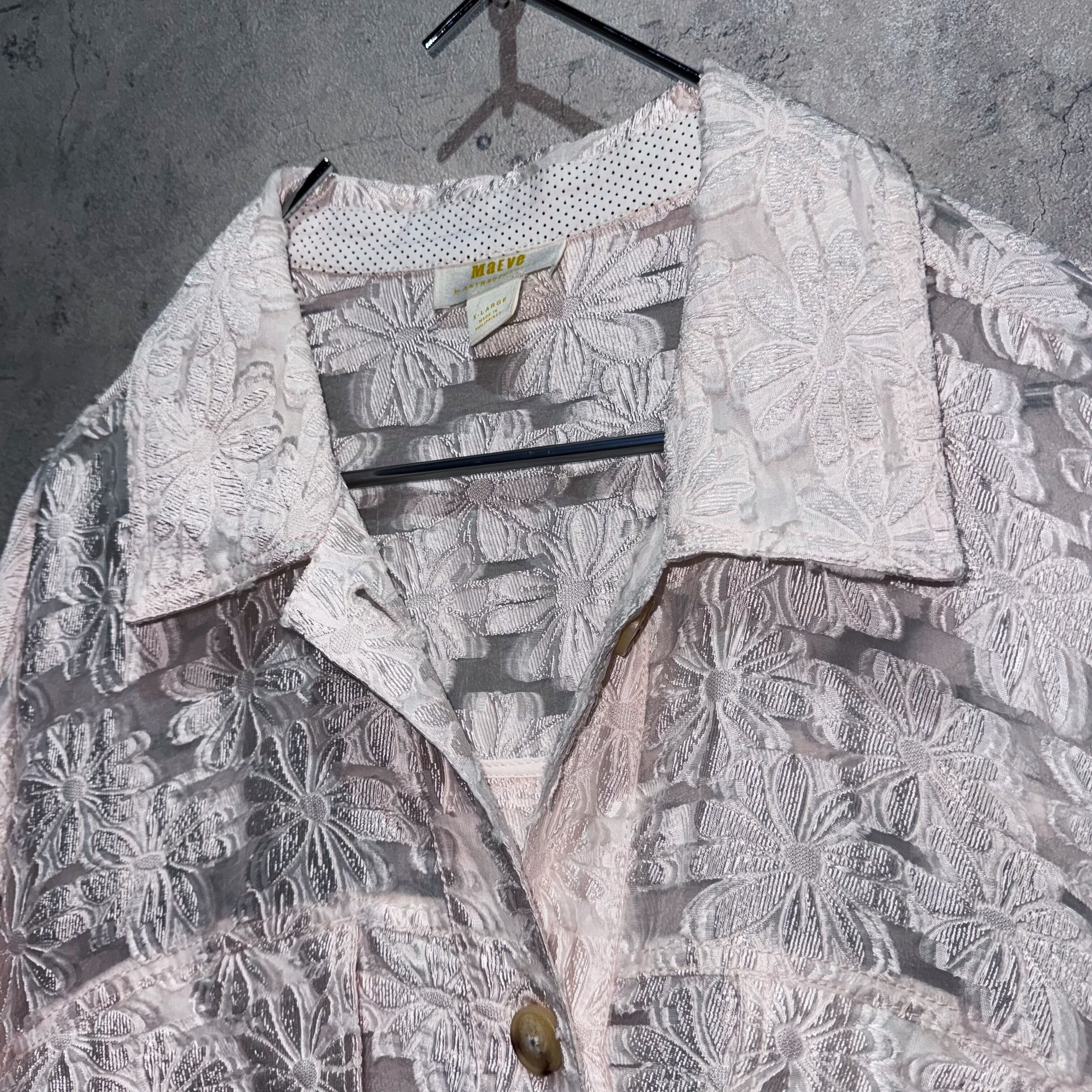 ヴィンテージボタニカルパターンデザインルーズシアーシャツ