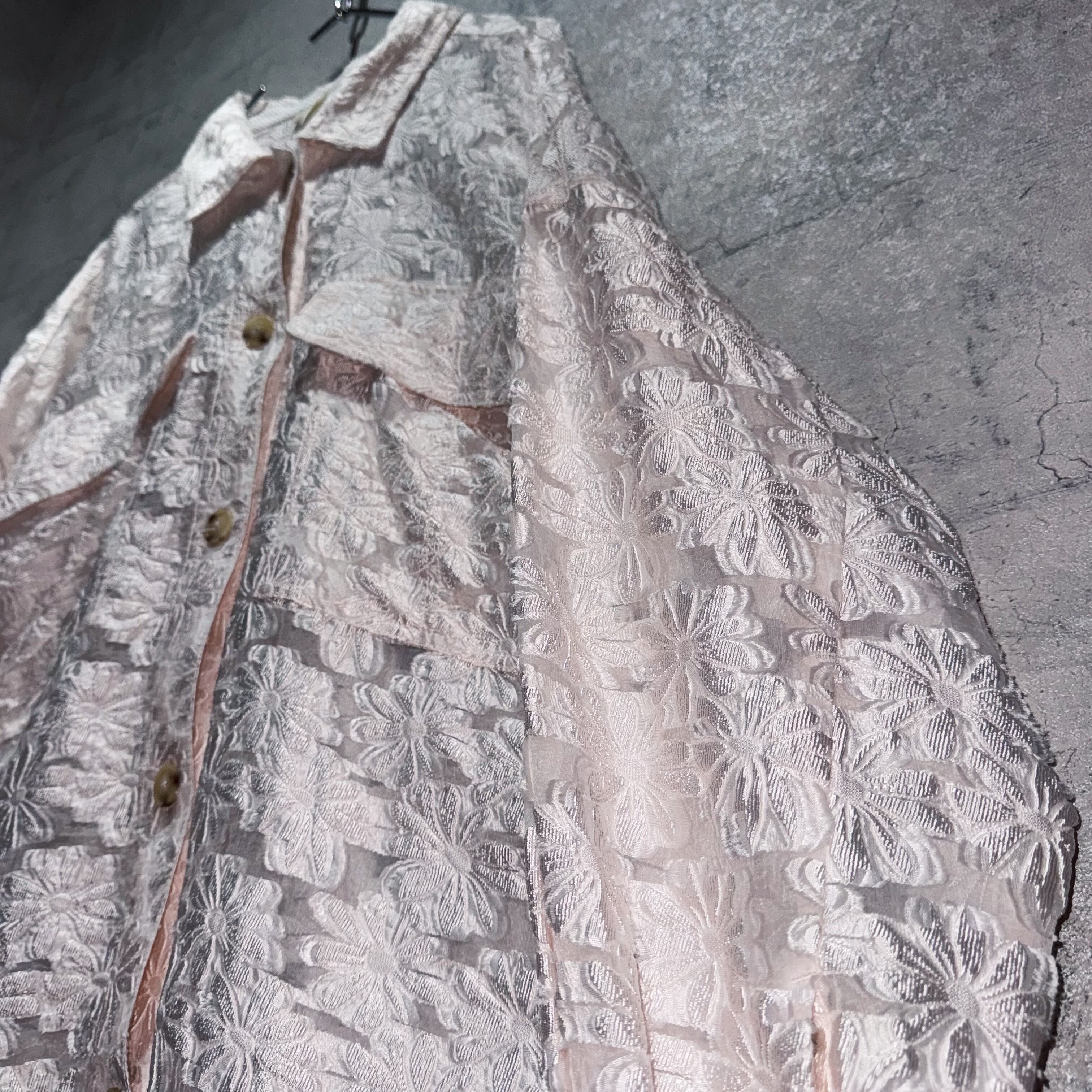 ほんの少しピンクゴールドっぽい色合いを纏ったホワイトカラーのシアーシャツ。ボディ全体にはデイジーの花の刺繍あしらい立体的な仕上がりに。