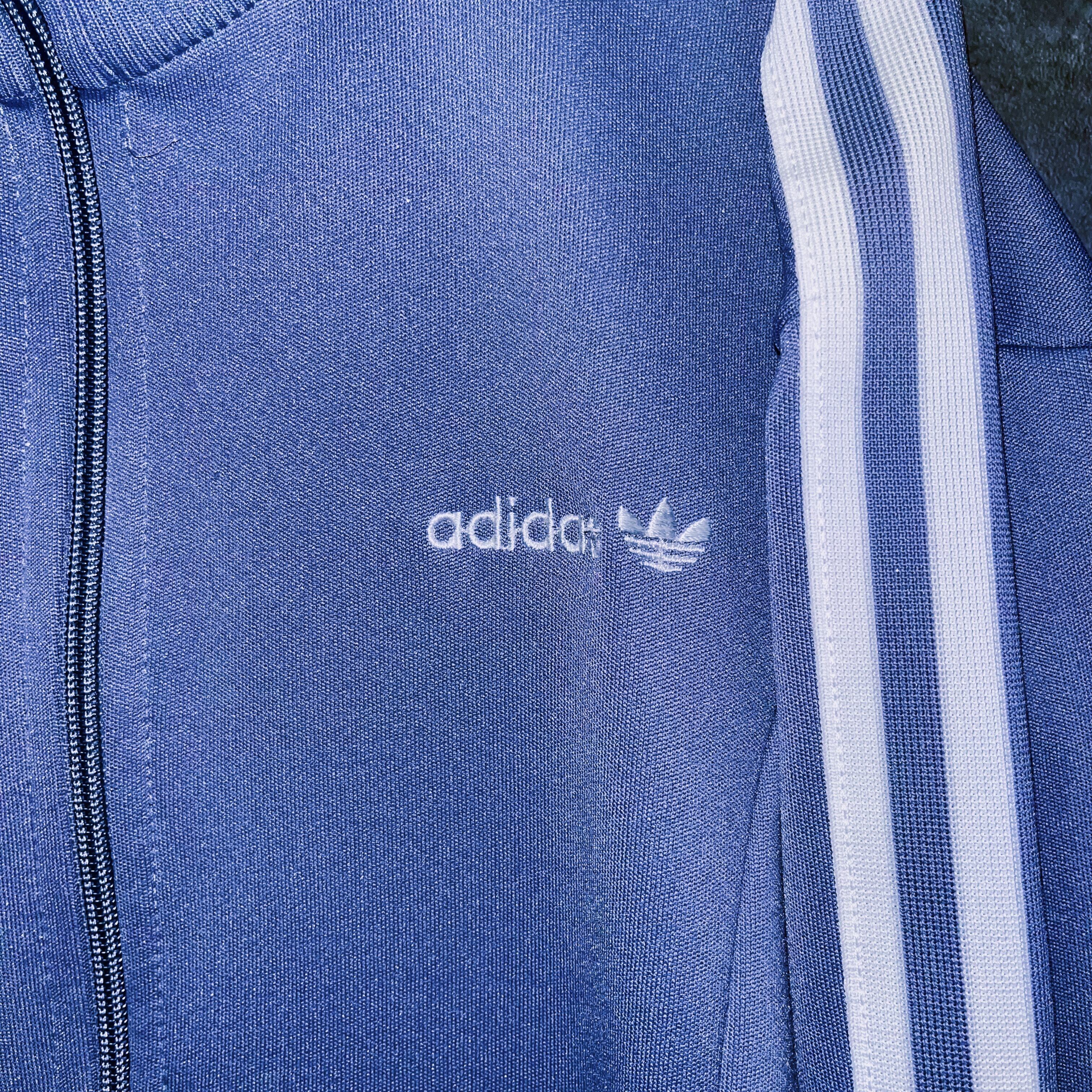 80’s vintage “adidas” three stripe design stand neck track jacket