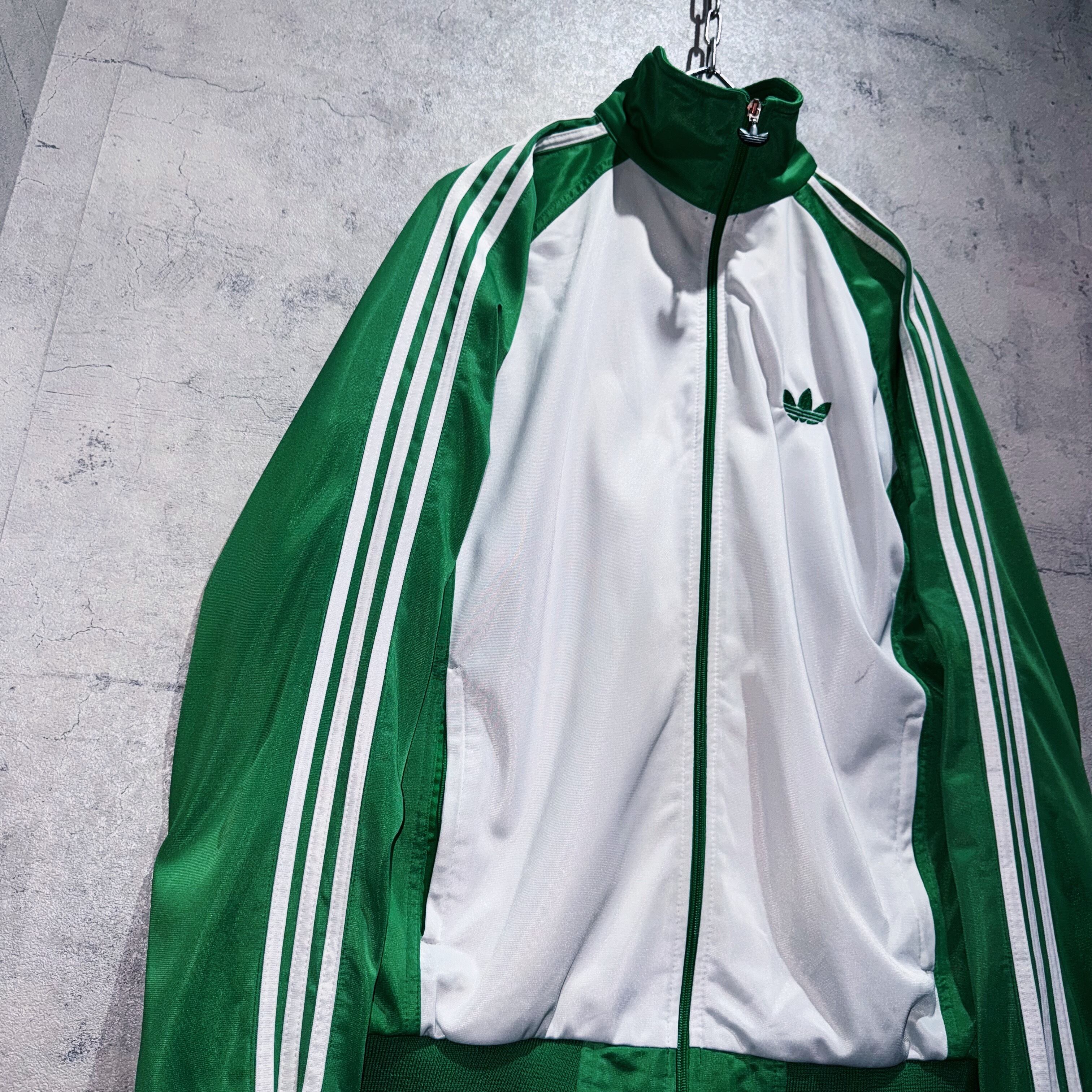 "アディダスオリジナルス"ホワイト×グリーンスイッチングカラートラックジャケット