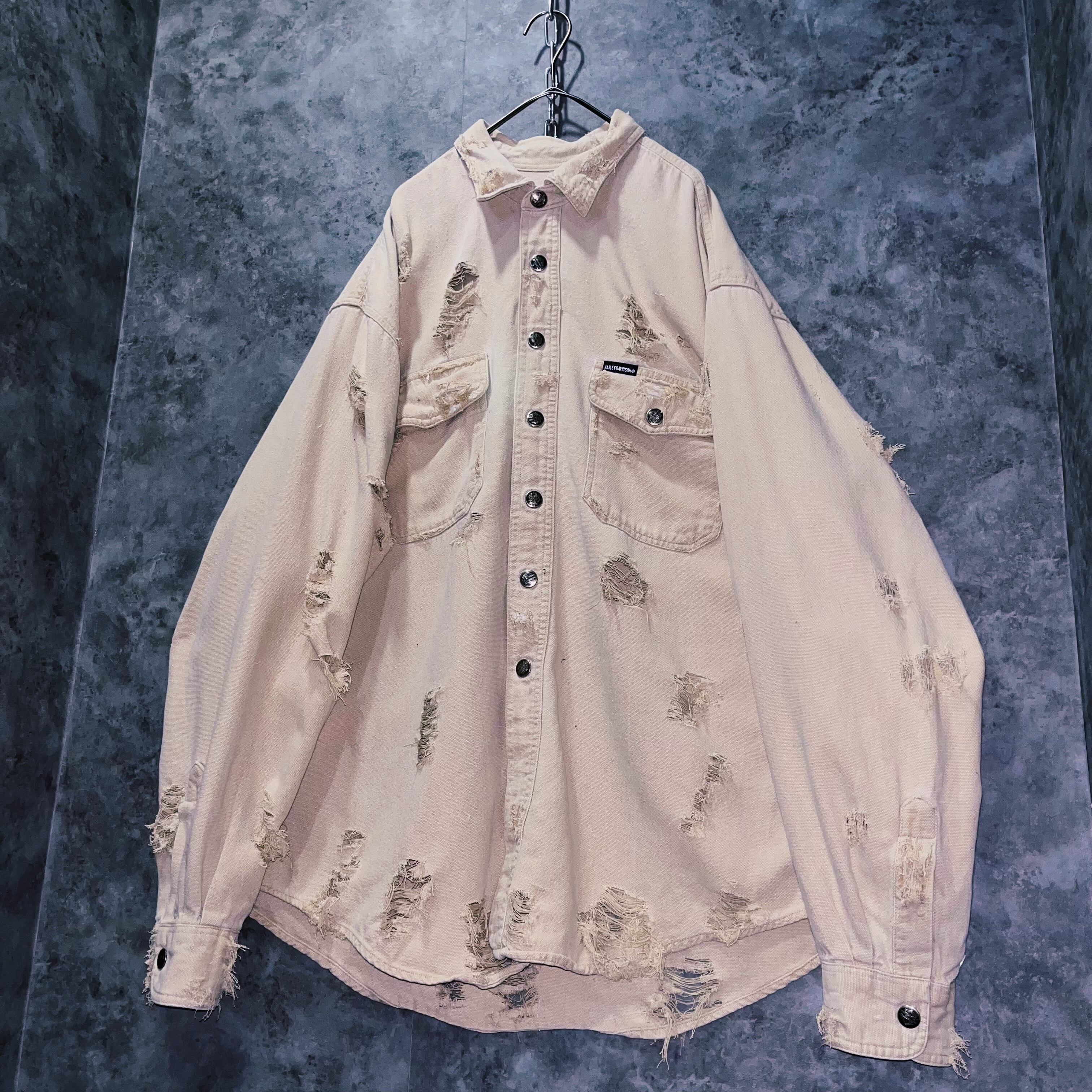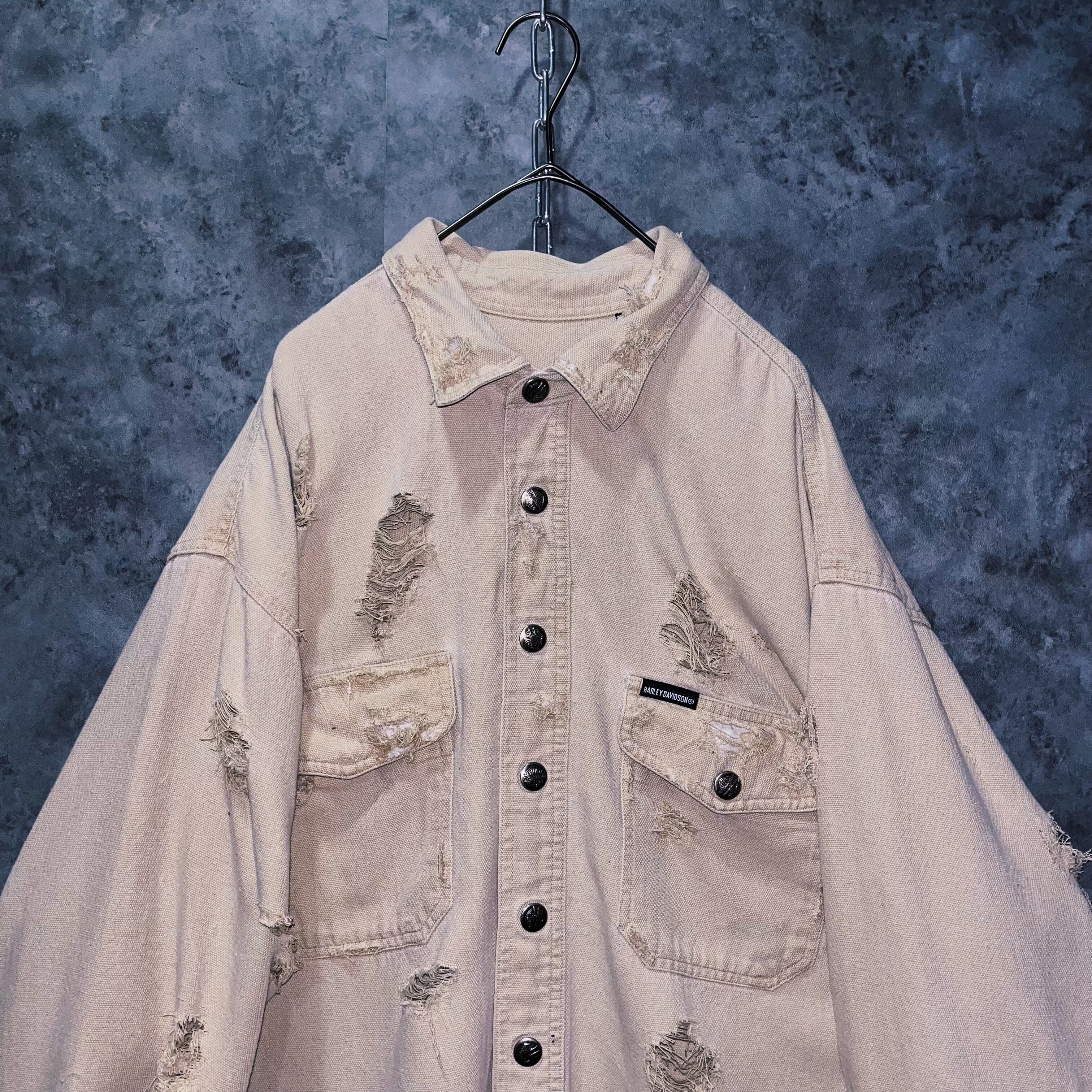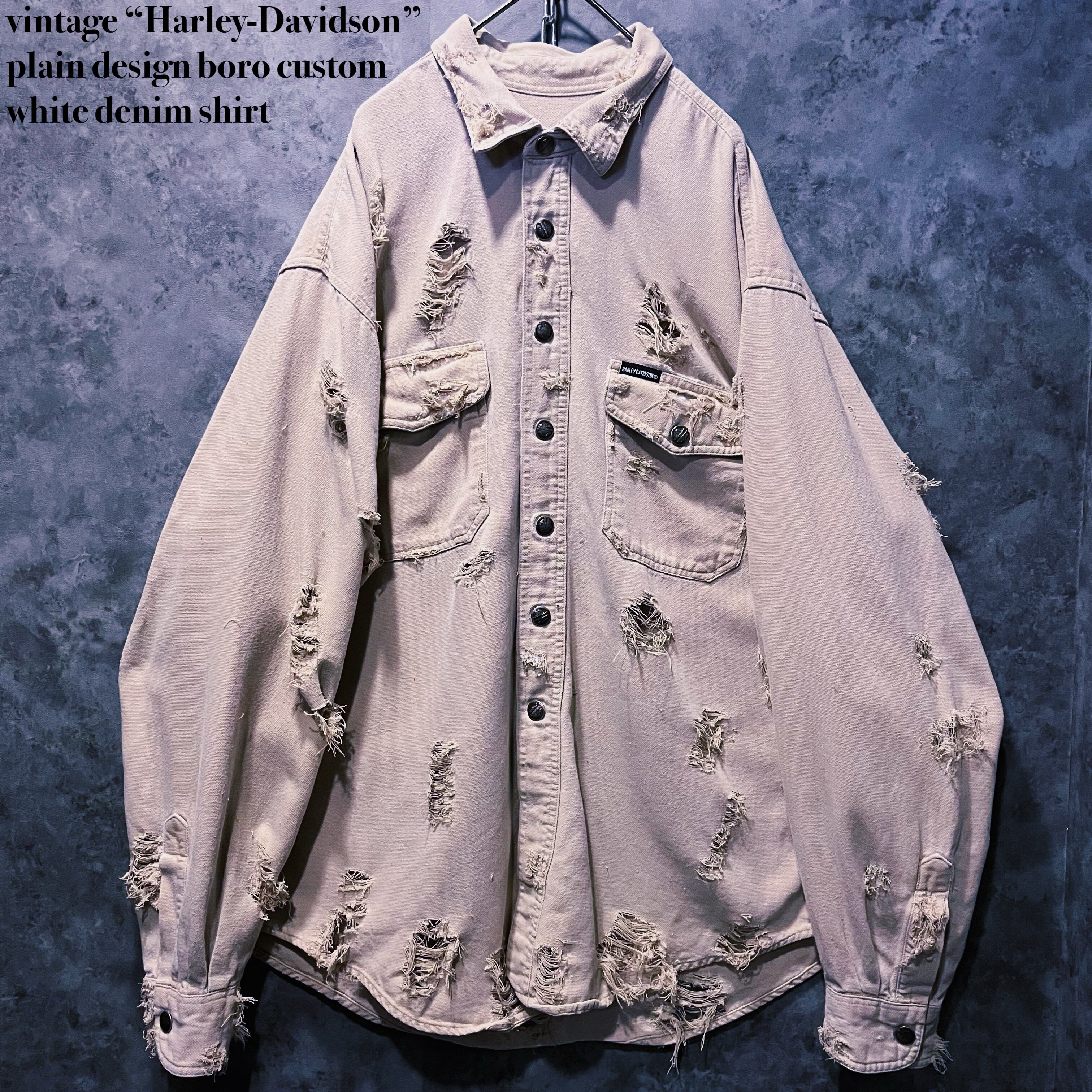 ヴィンテージ“Harley-Davidson”プレーンデザインボロカスタムホワイトデニムシャツ