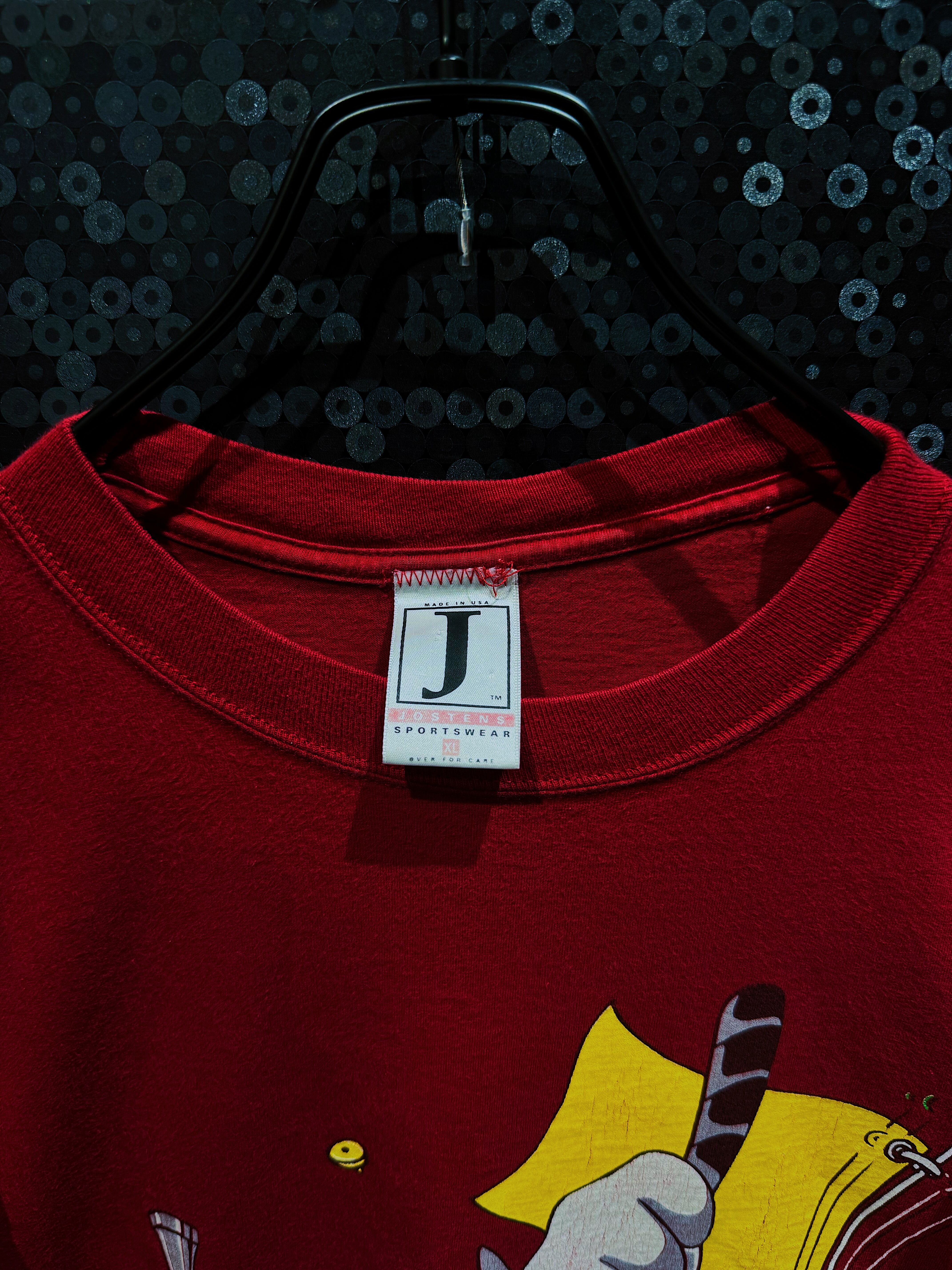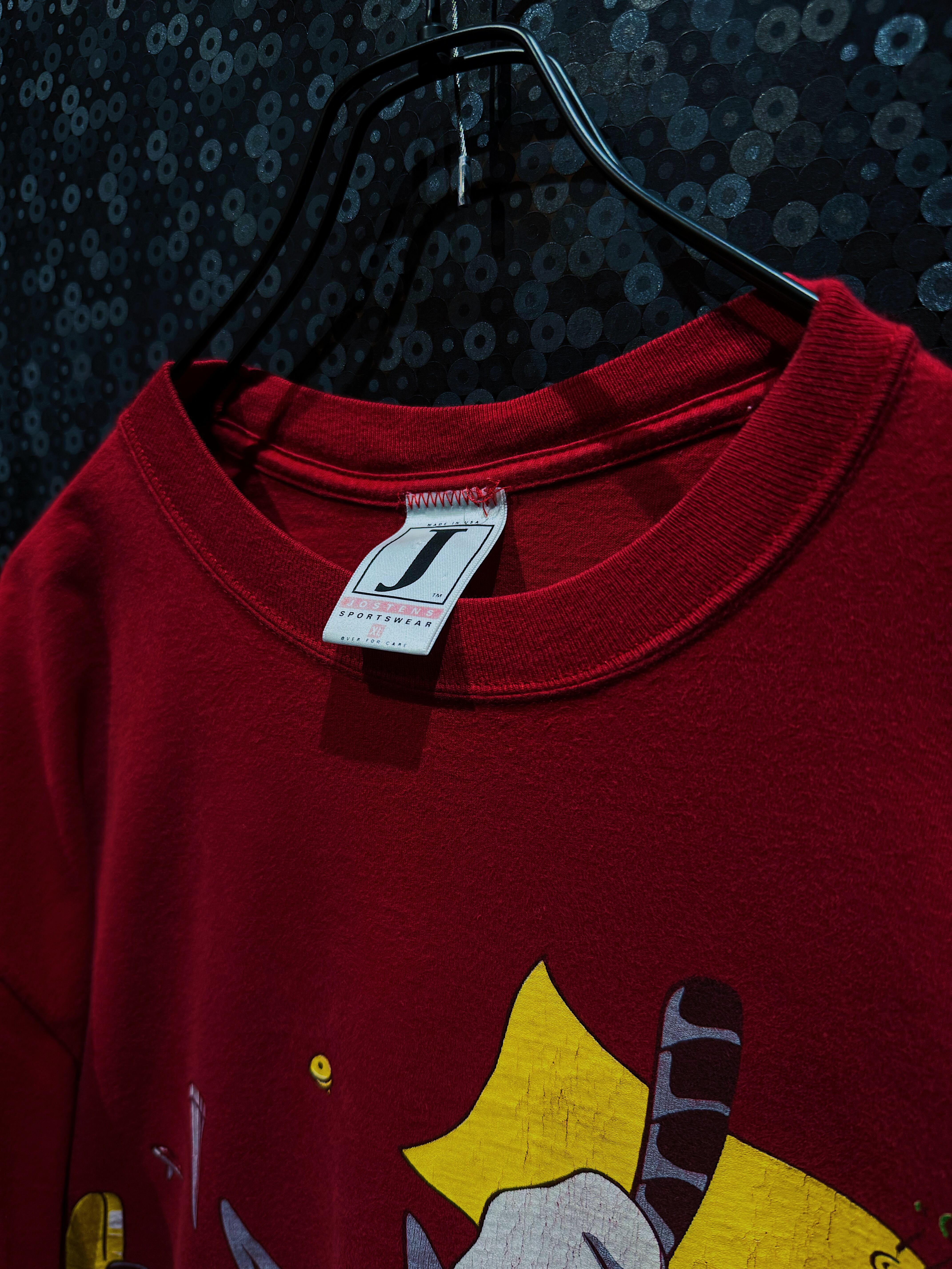タグ付近にかすかに見られる使用感やプリントの経年変化も、むしろ味わい深さを引き立て、ヴィンテージならではの一点物感を楽しめます。ポップなデザインとヴィンテージ特有の温かみを両立した、他にはない特別な一着です。