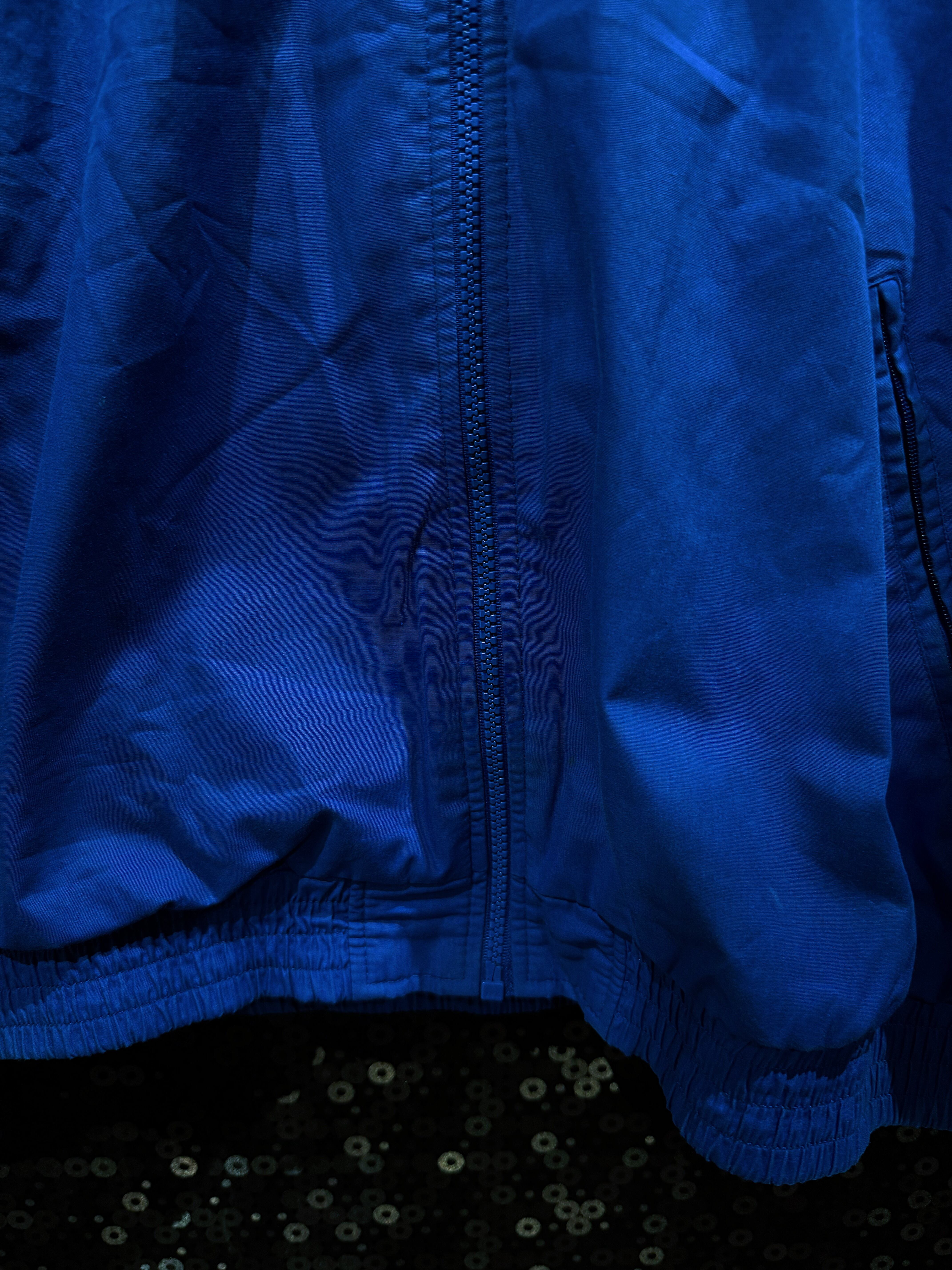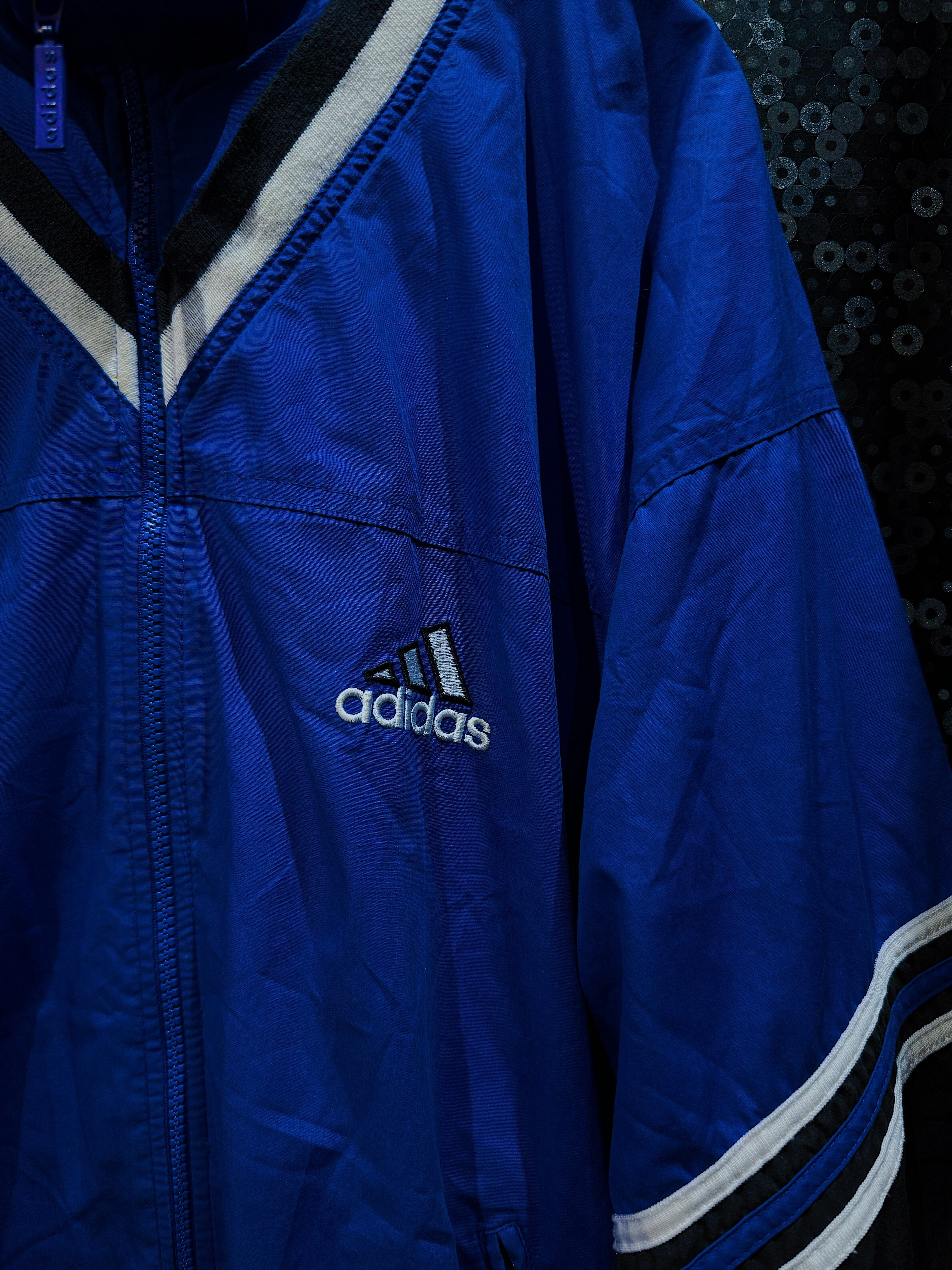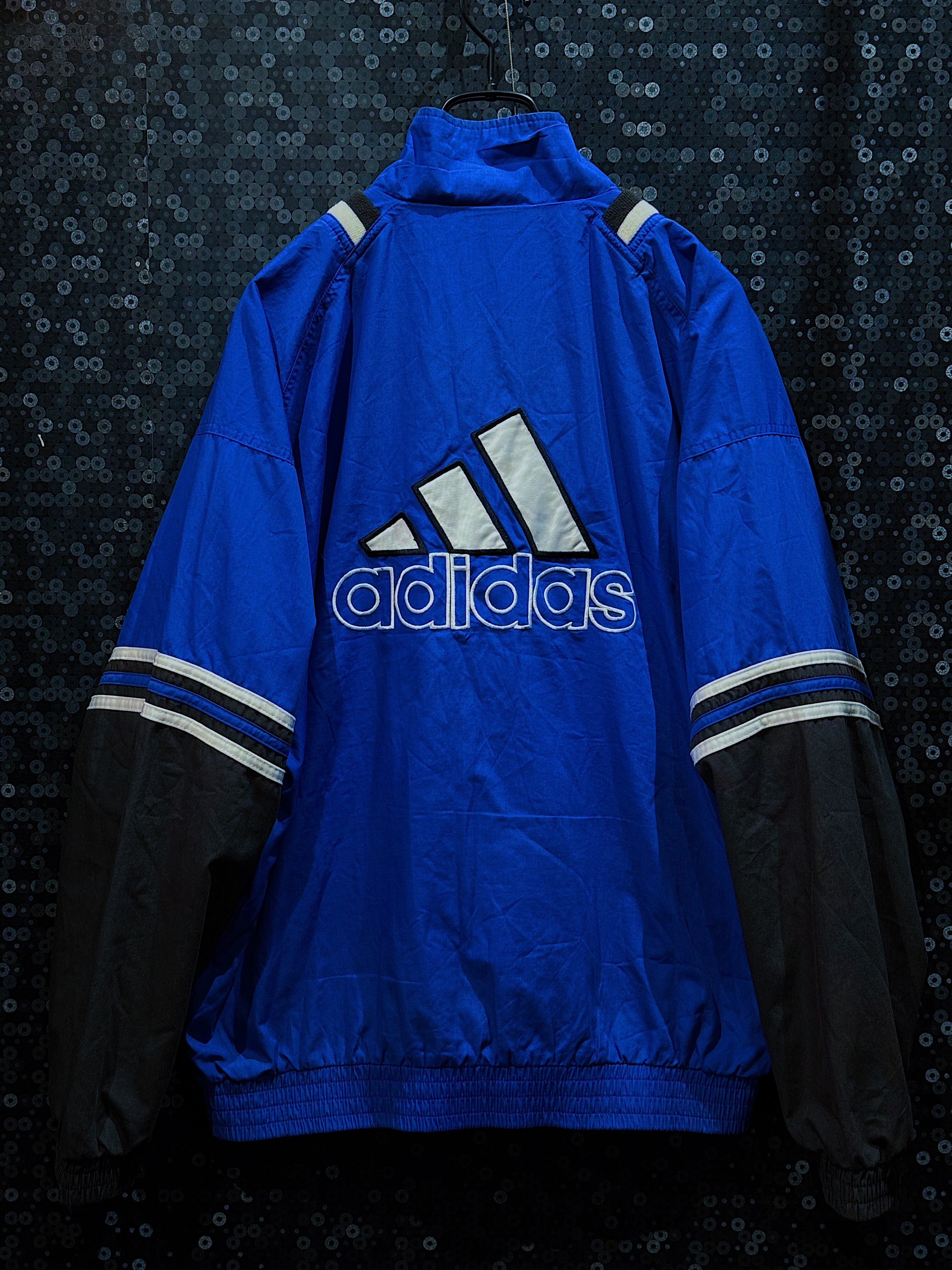 鮮やかなロイヤルブルーとブラックの切り替えが目を惹く、90年代ヴィンテージadidasトラックジャケット。