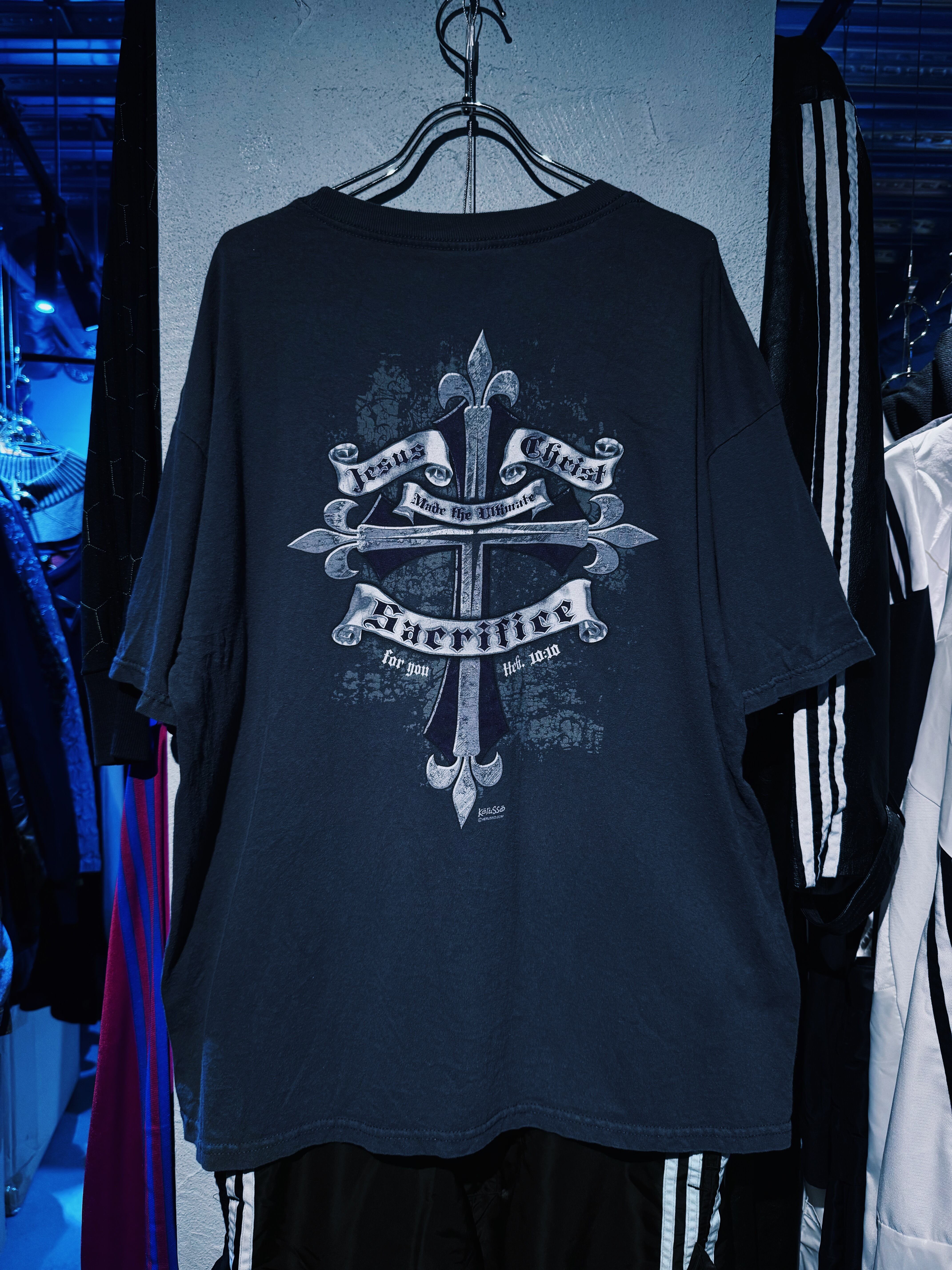 ヴィンテージグレーカラークロスロゴデザインS/STシャツ
