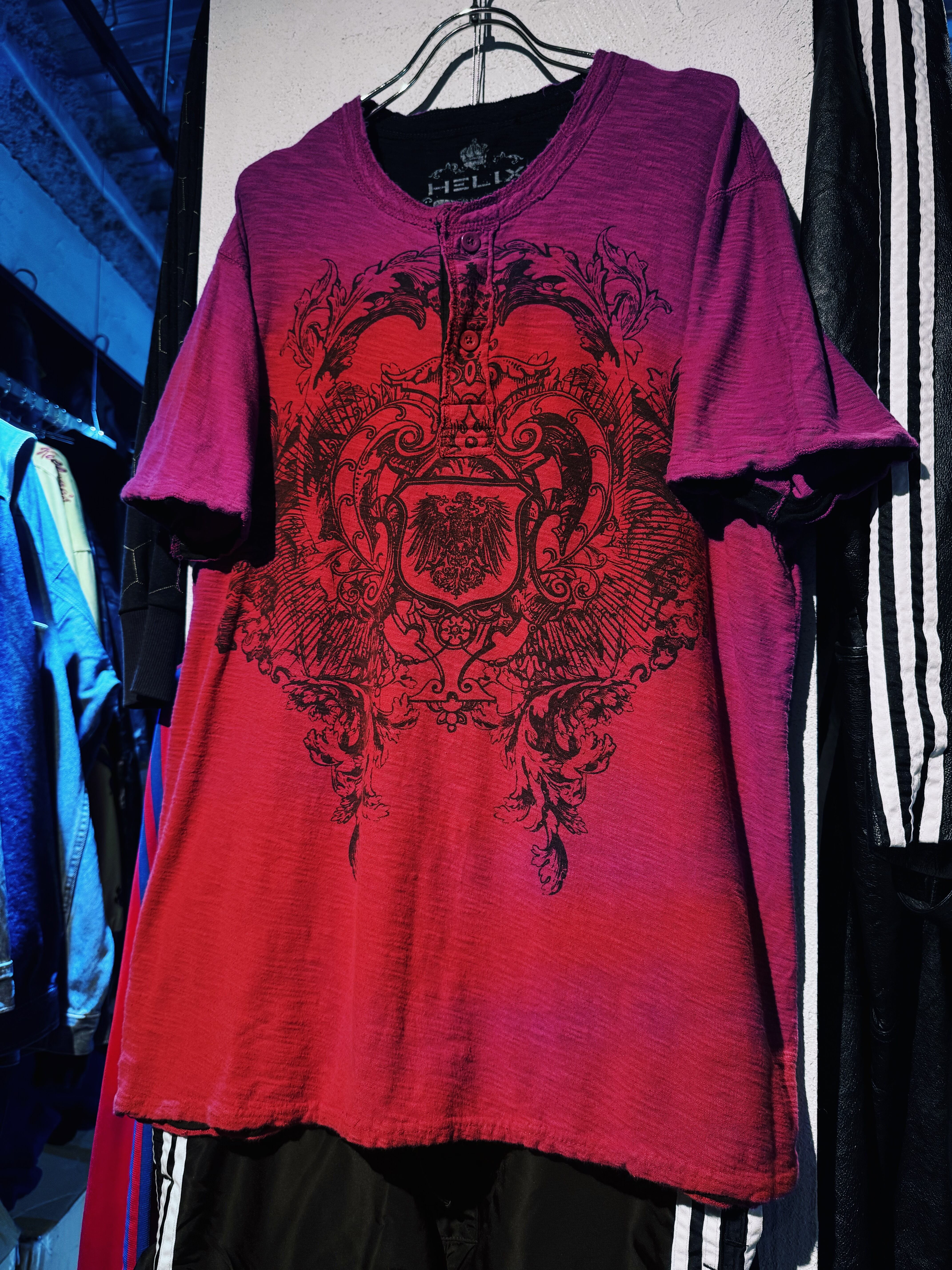 ヴィンテージ"HELIX"レッドカラーゴージャスエンブレムデザイン2ボタンS/S Tシャツ