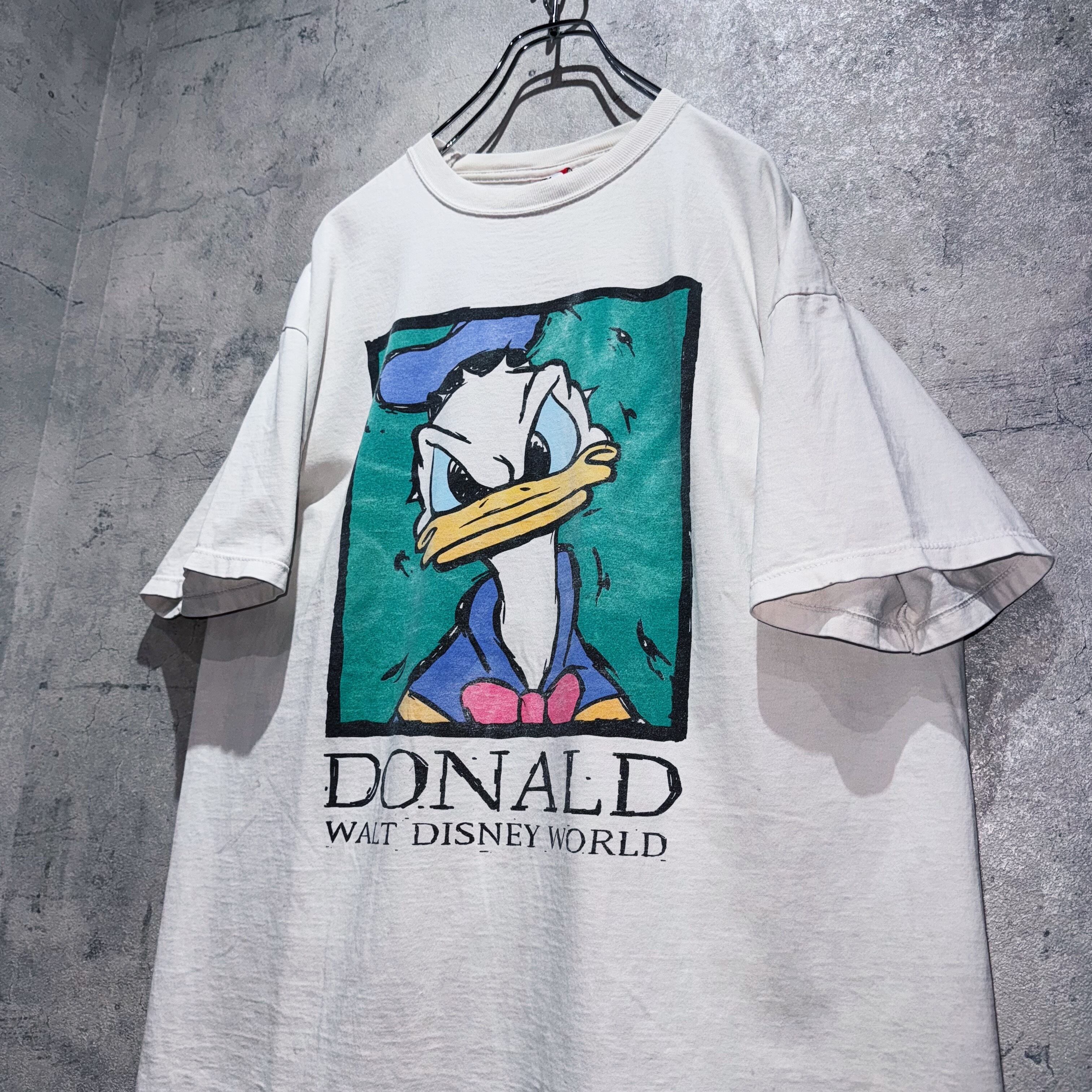 90年代"ディズニー"ドナルドダックアートグラフィックデザインプリントTシャツ