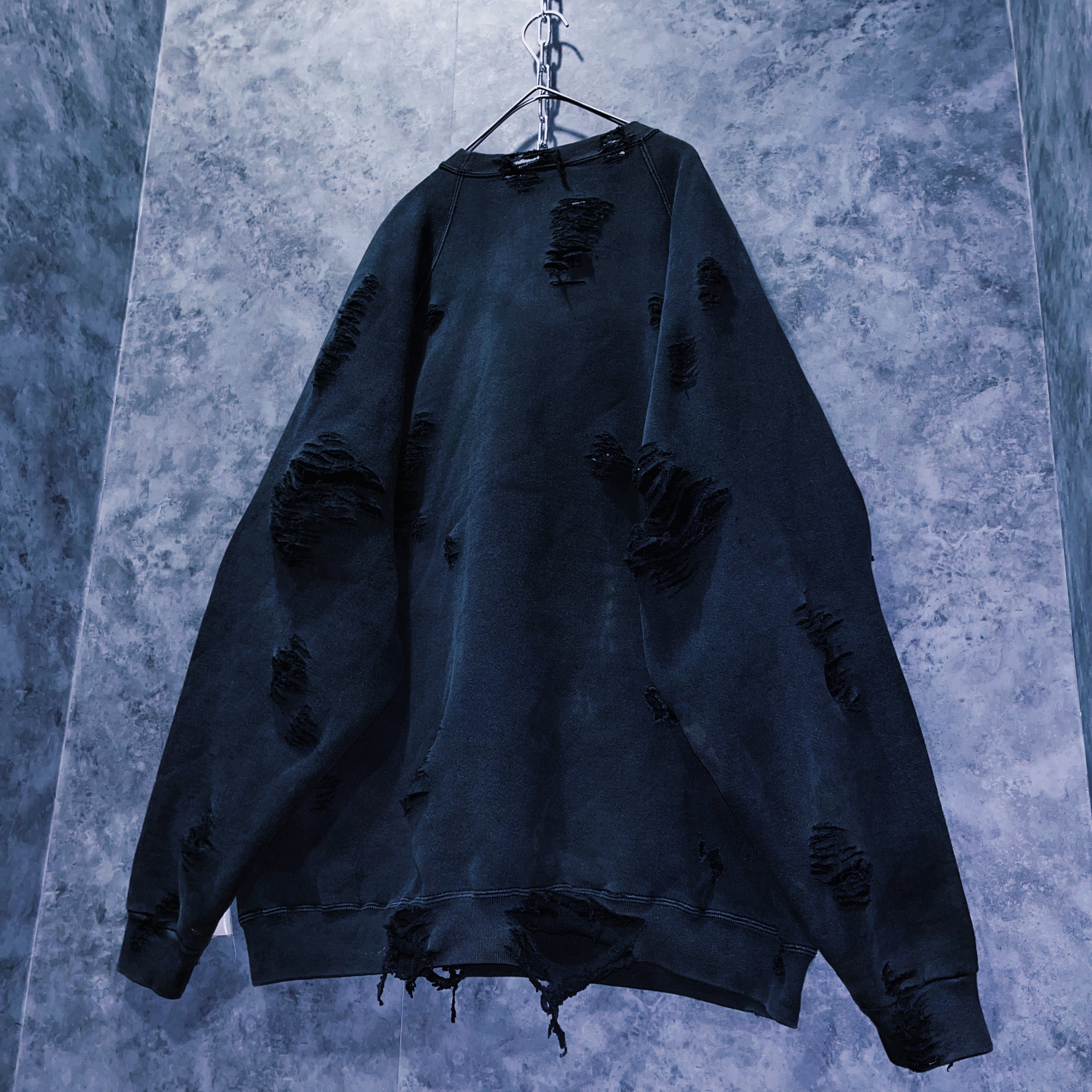 バレンシアガとadidasのコラボスウェットのサンプリング元となったスウェットを贅沢にもボロカスタムに仕上げました。細かく裂かれたようなデザインはシンプルなブラックカラーにエッジを加えハイモードな雰囲気に仕上げられています。