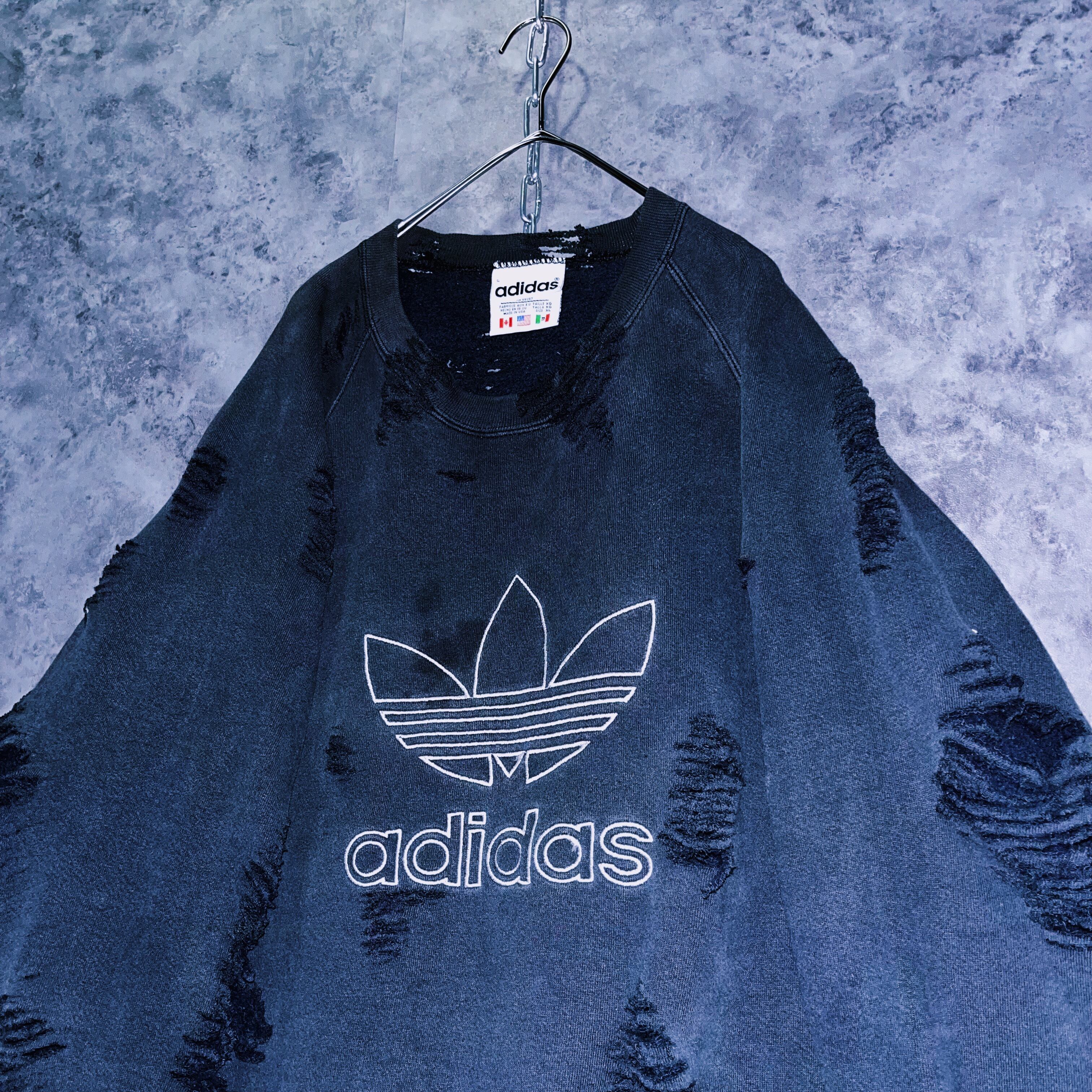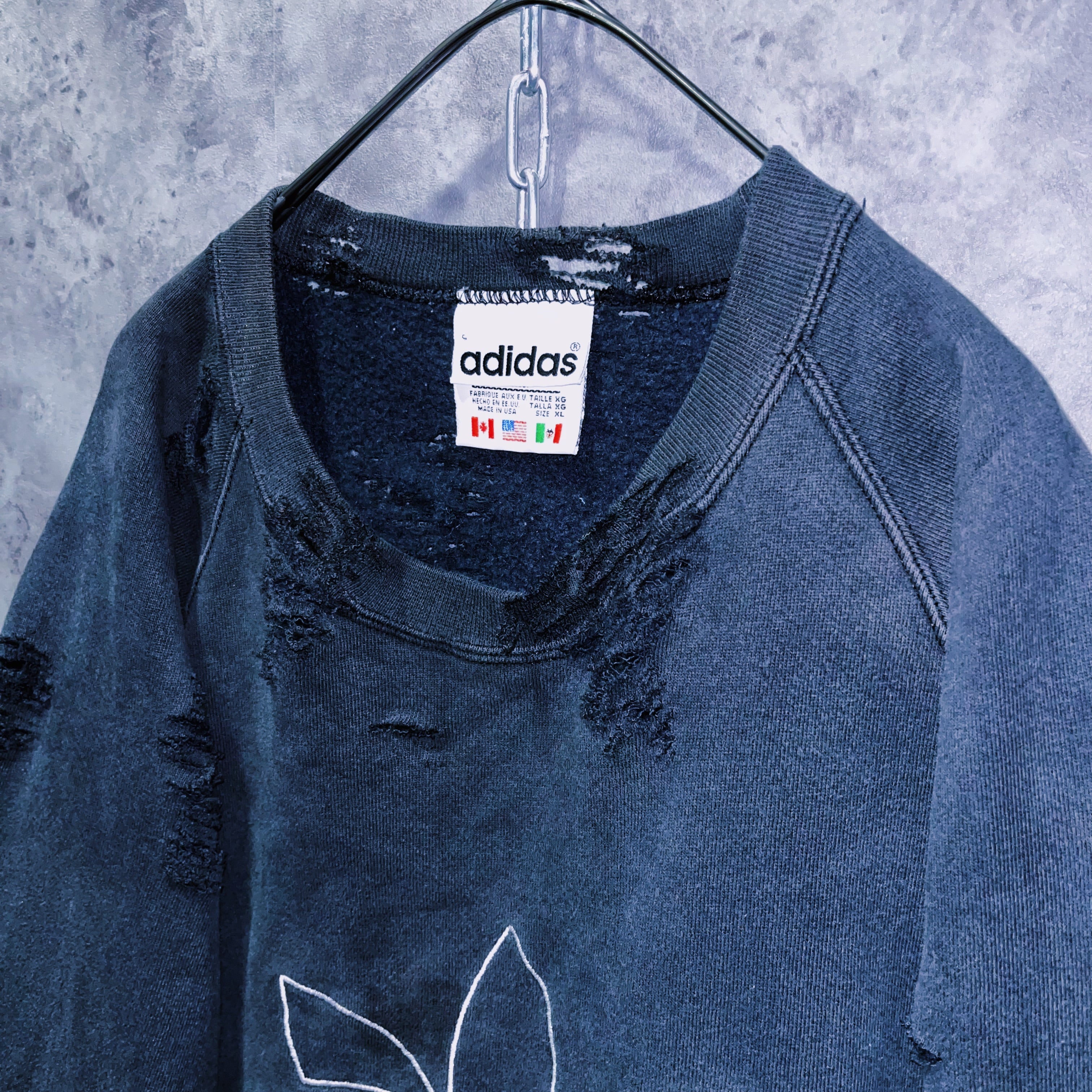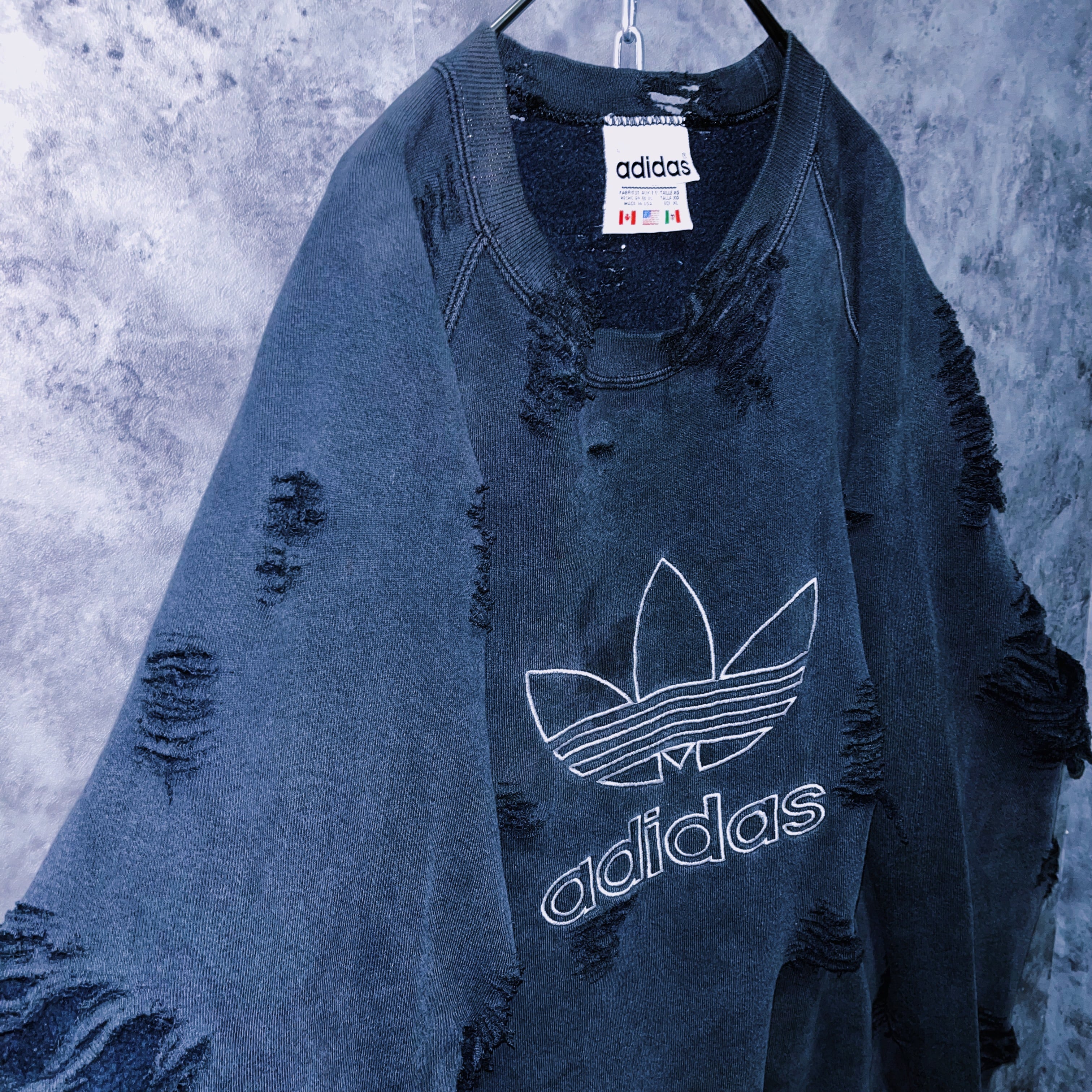 ヴィンテージ“adidas”トレフォイルロゴデザインボロカスタムスウェットプルオーバー