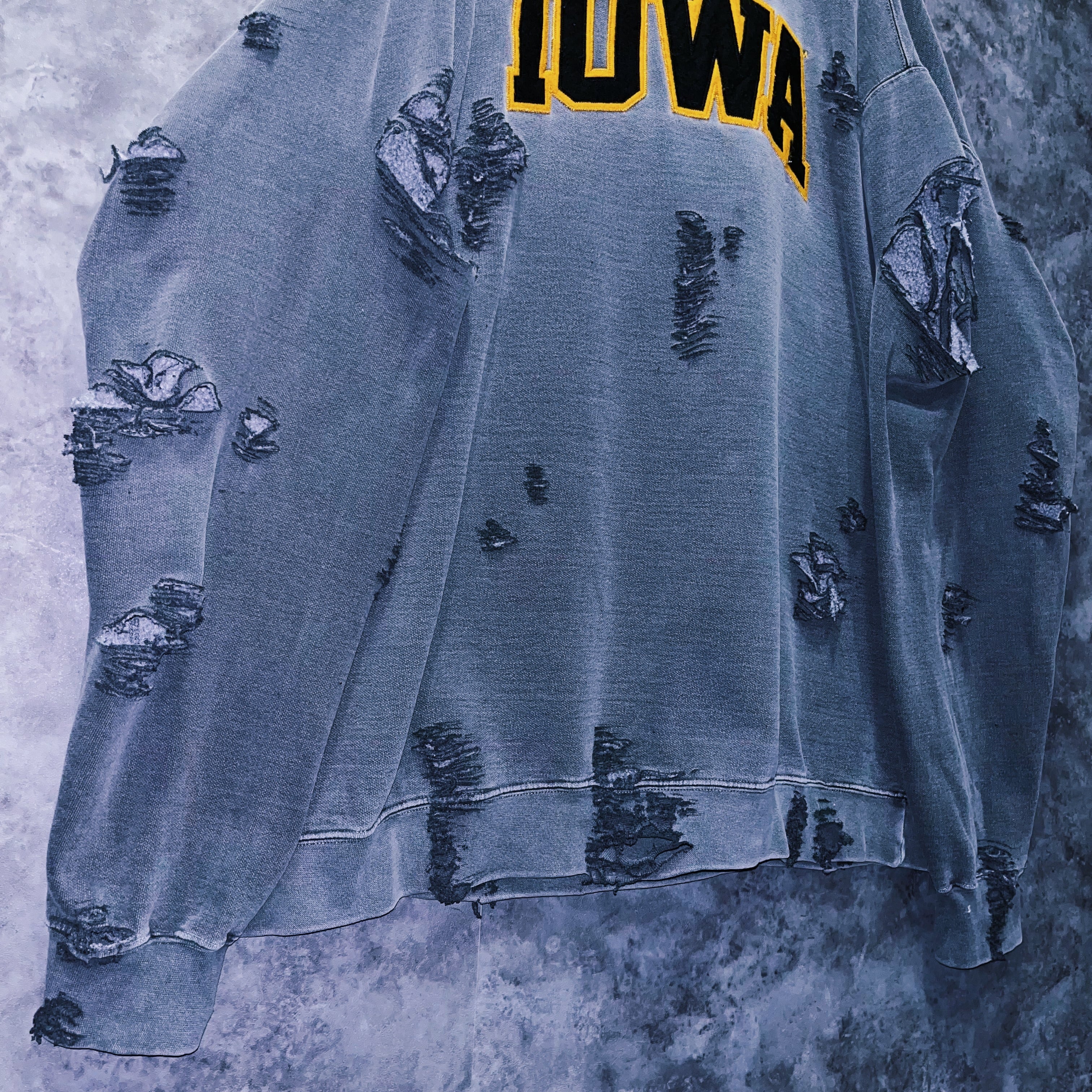 ヴィンテージカレッジロゴパッチワークデザインボロカスタムスウェットプルオーバー