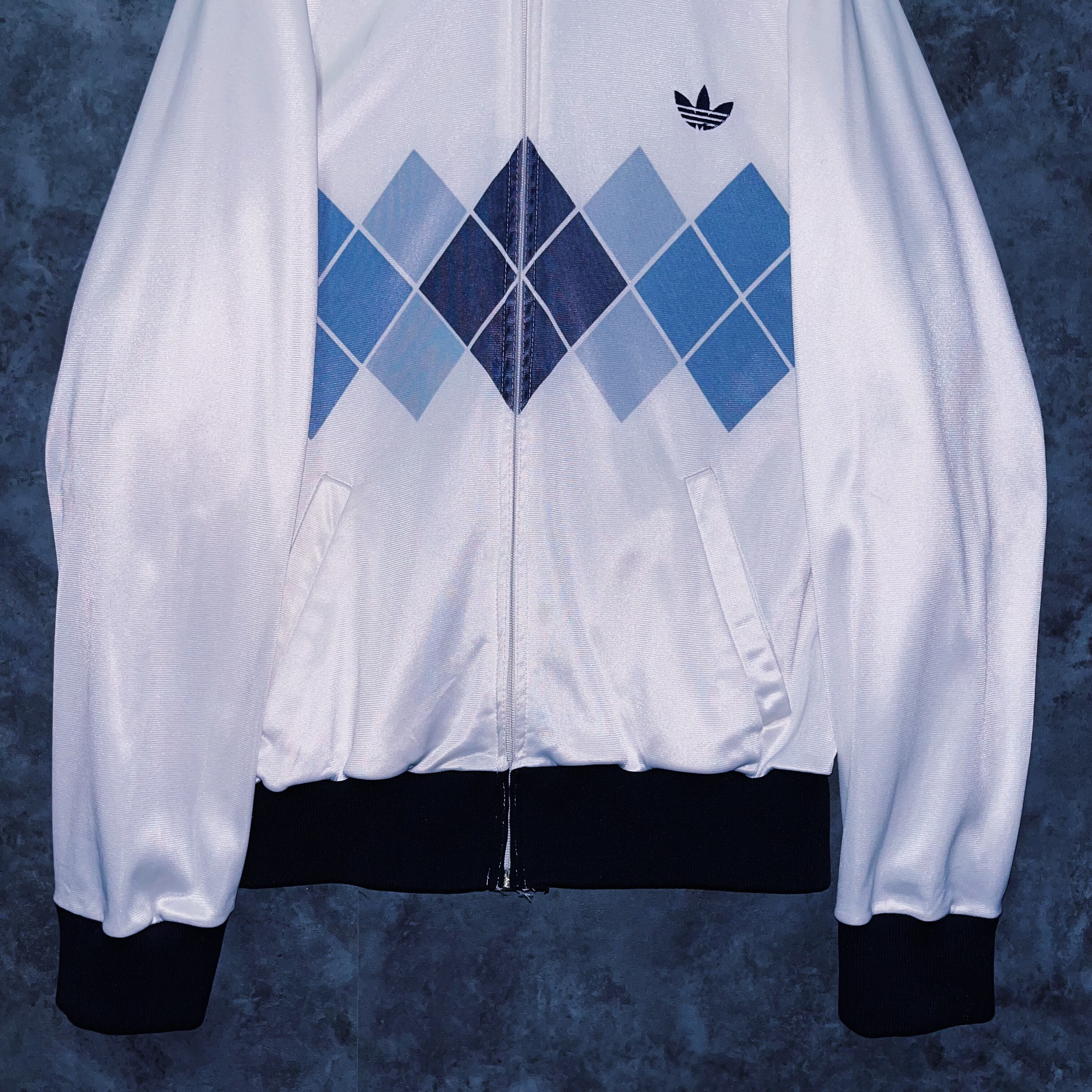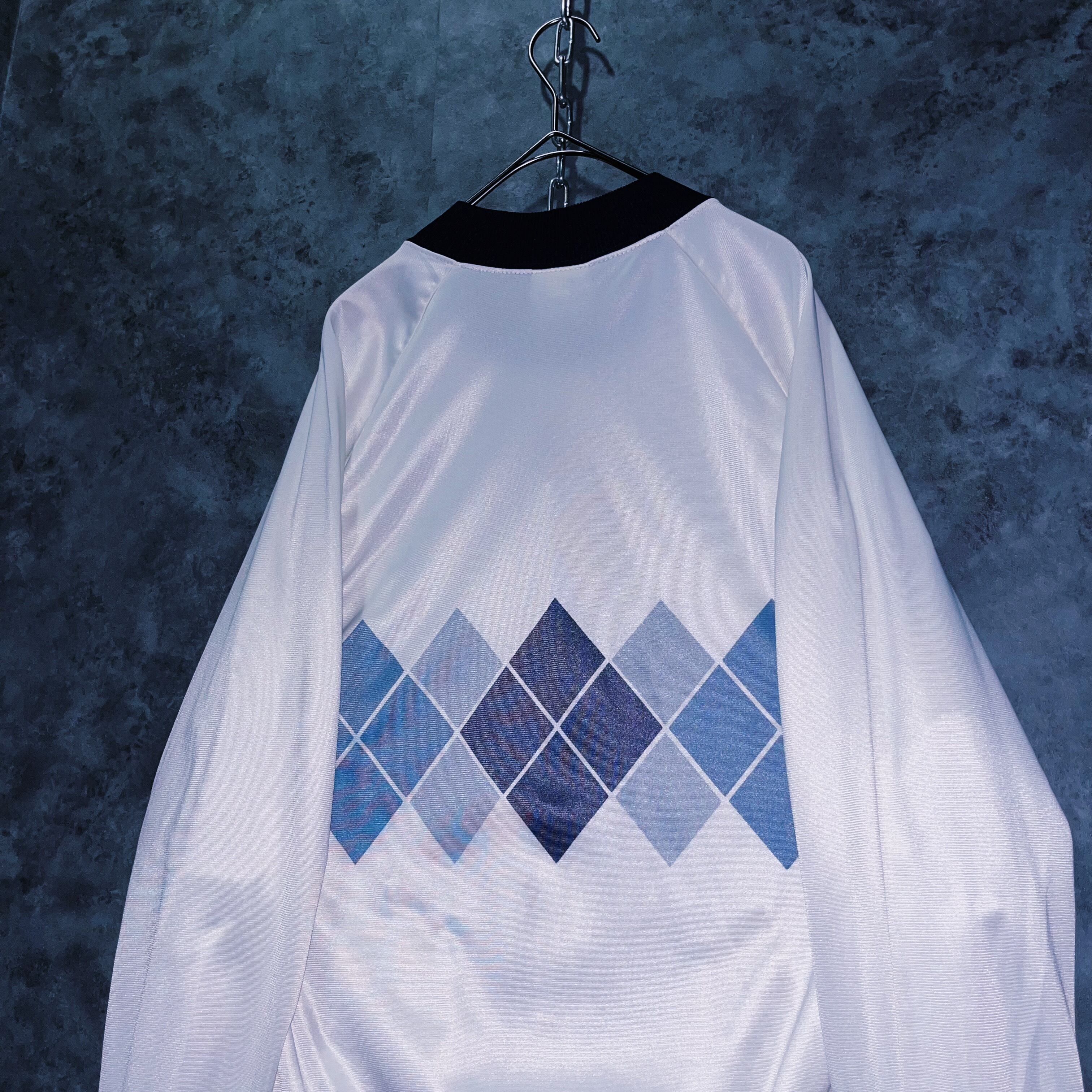 ”adidas“の中でも見かけることの少ないダイヤモンドカットデザインは、ホワイトカラーのボディーにブルカラーのグラデーションでフロント、バックの両方にデザインされ、全方向死角なしの一品。