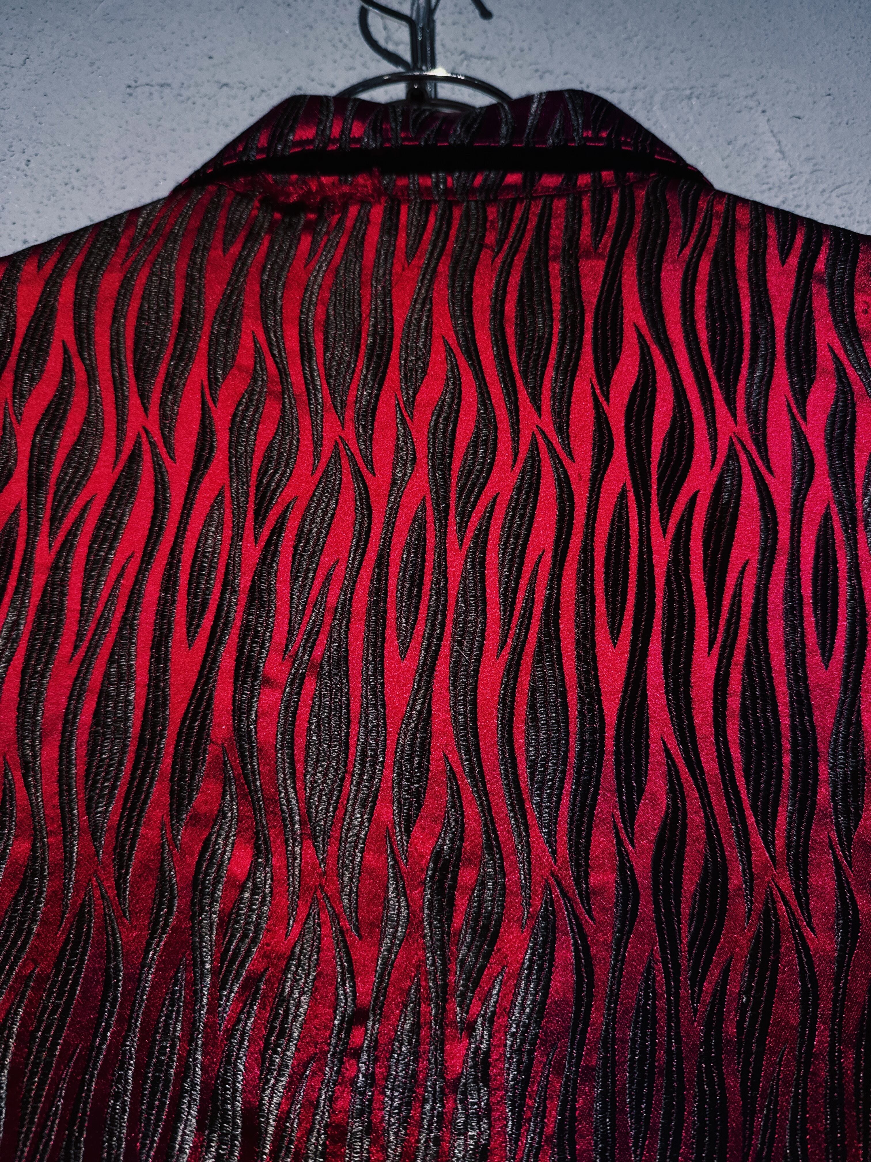 レッドとブラックのフレイムパターンが施されており圧巻の存在感で最高にクールでストリートな1着。一枚でかなり目に止まる圧倒的なデザイン。