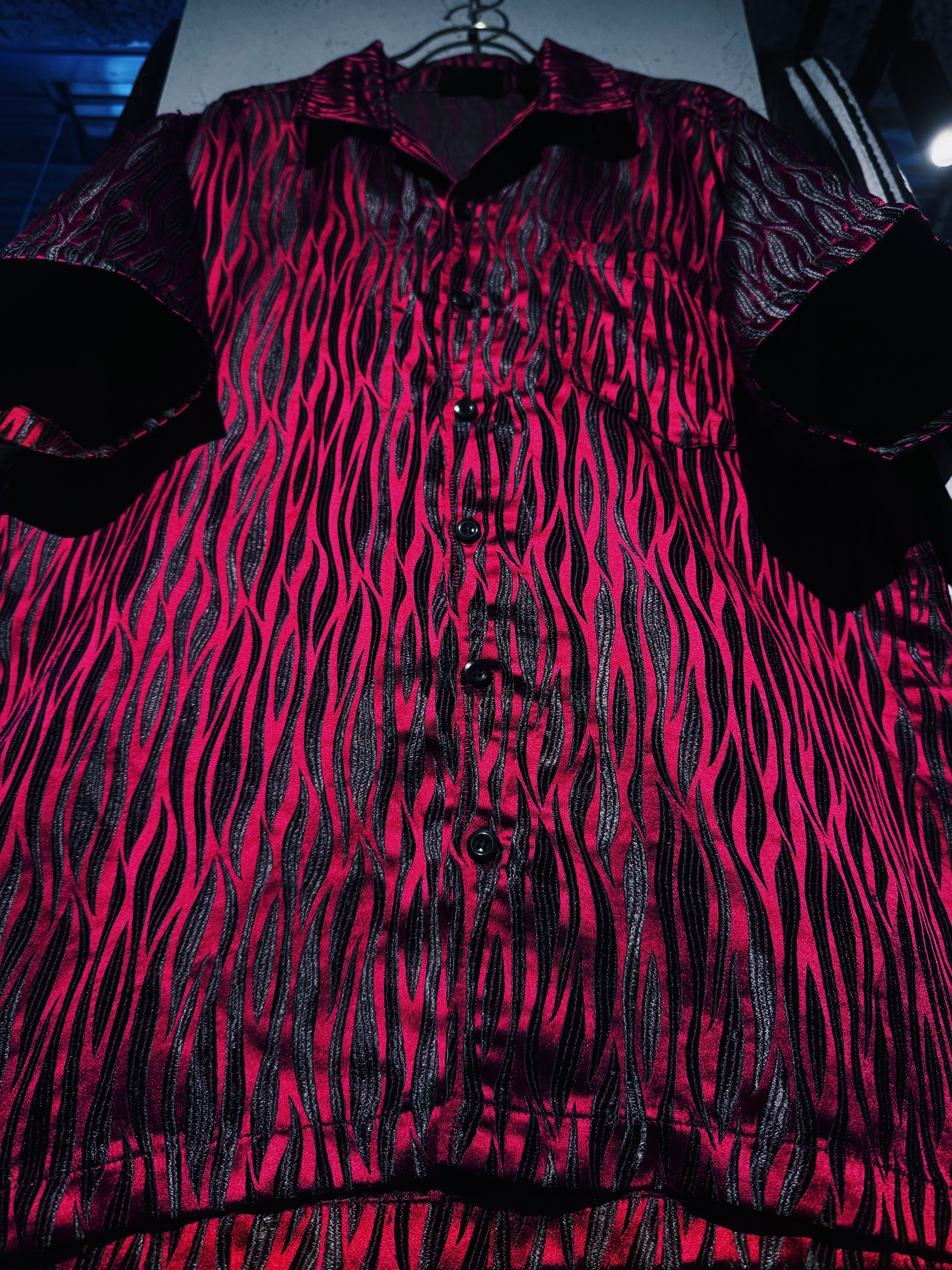 【D4C】90's vintage dark flame pattern open collar loose shirt
