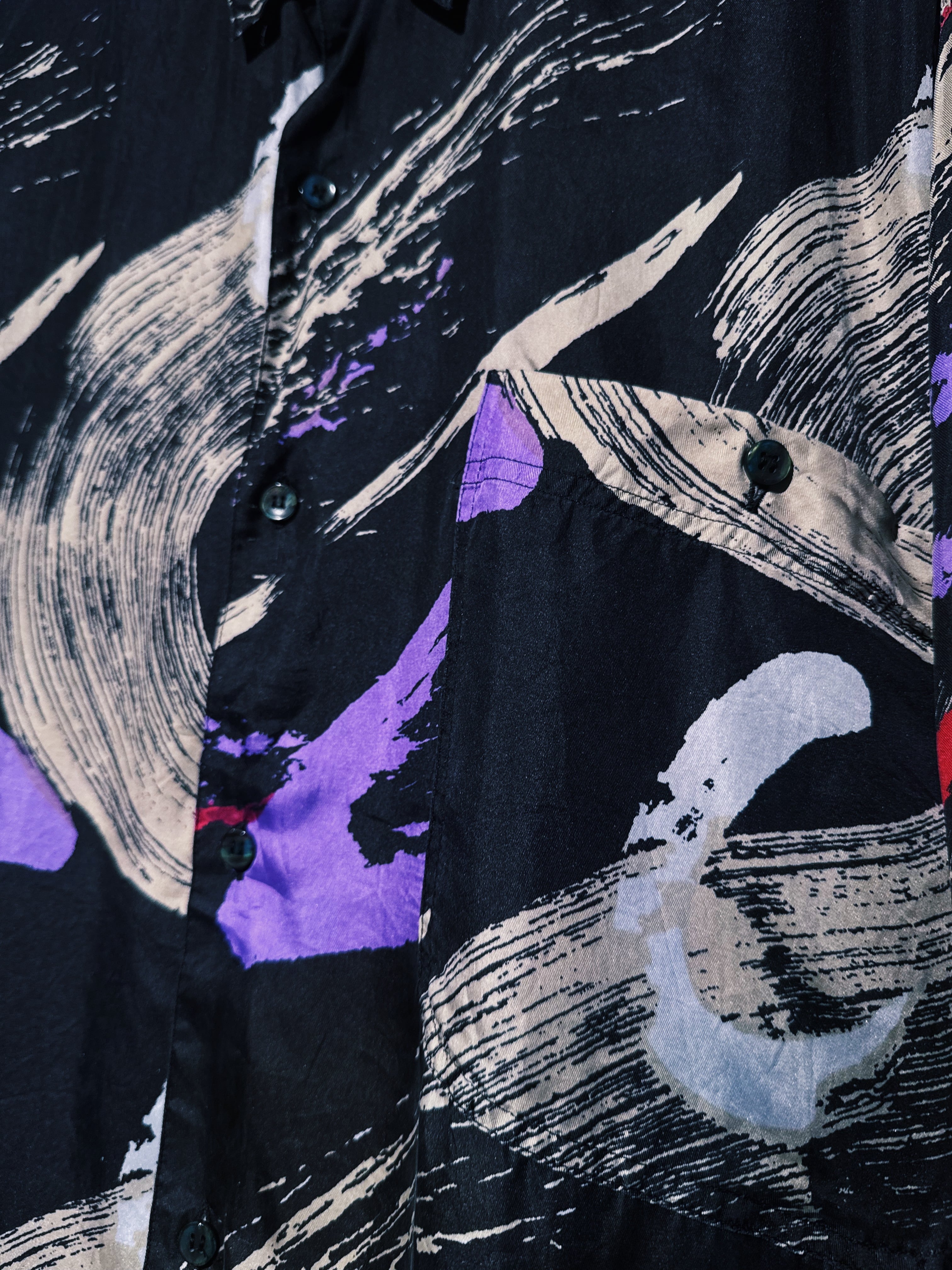 【D4C】"Dead stock"90's Art graphic pattern design silk shirt