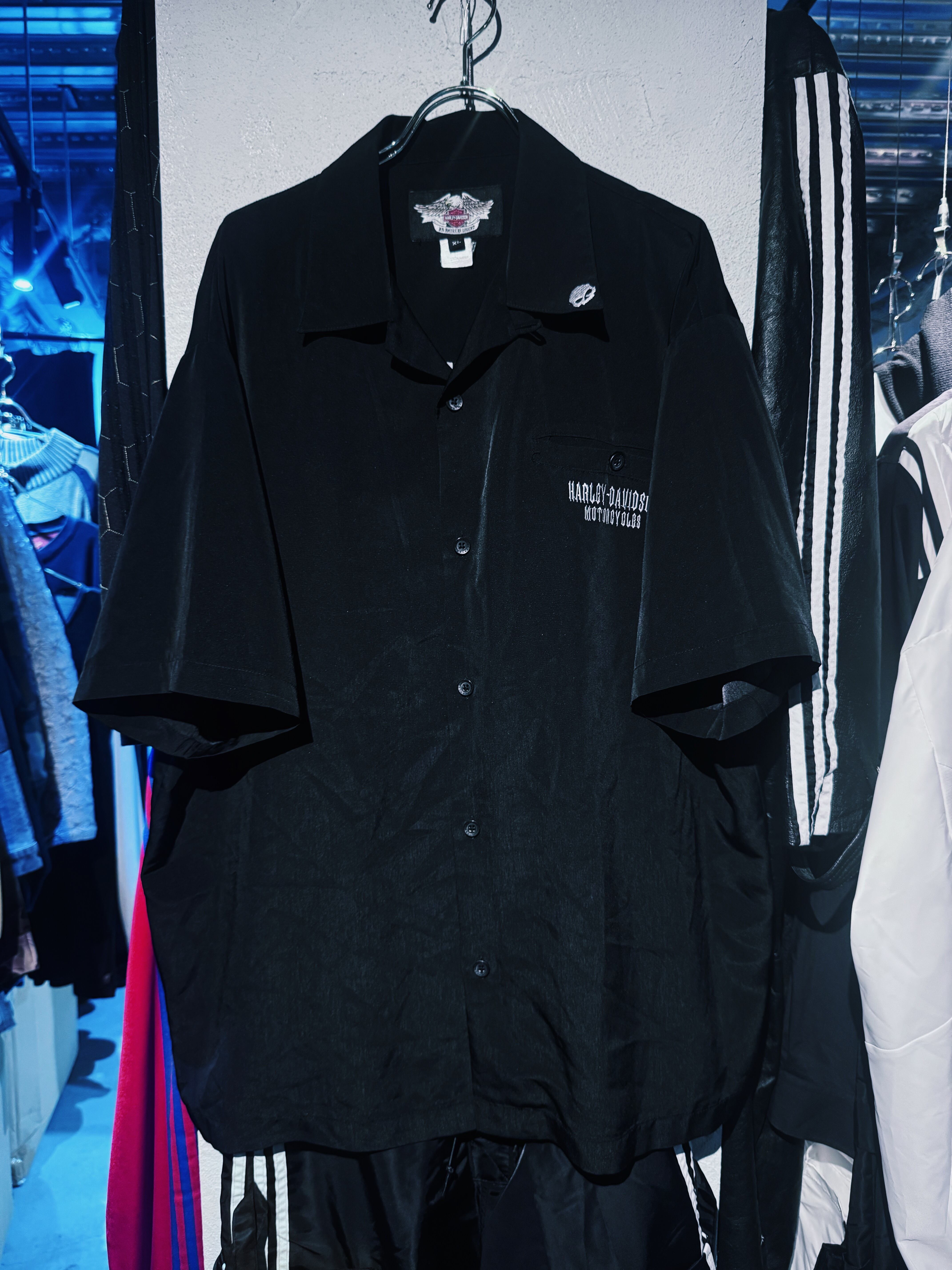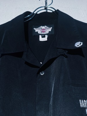 ヴィンテージ"Harley-Davidson"スカルポイントS/Sオープンカラーシャツ