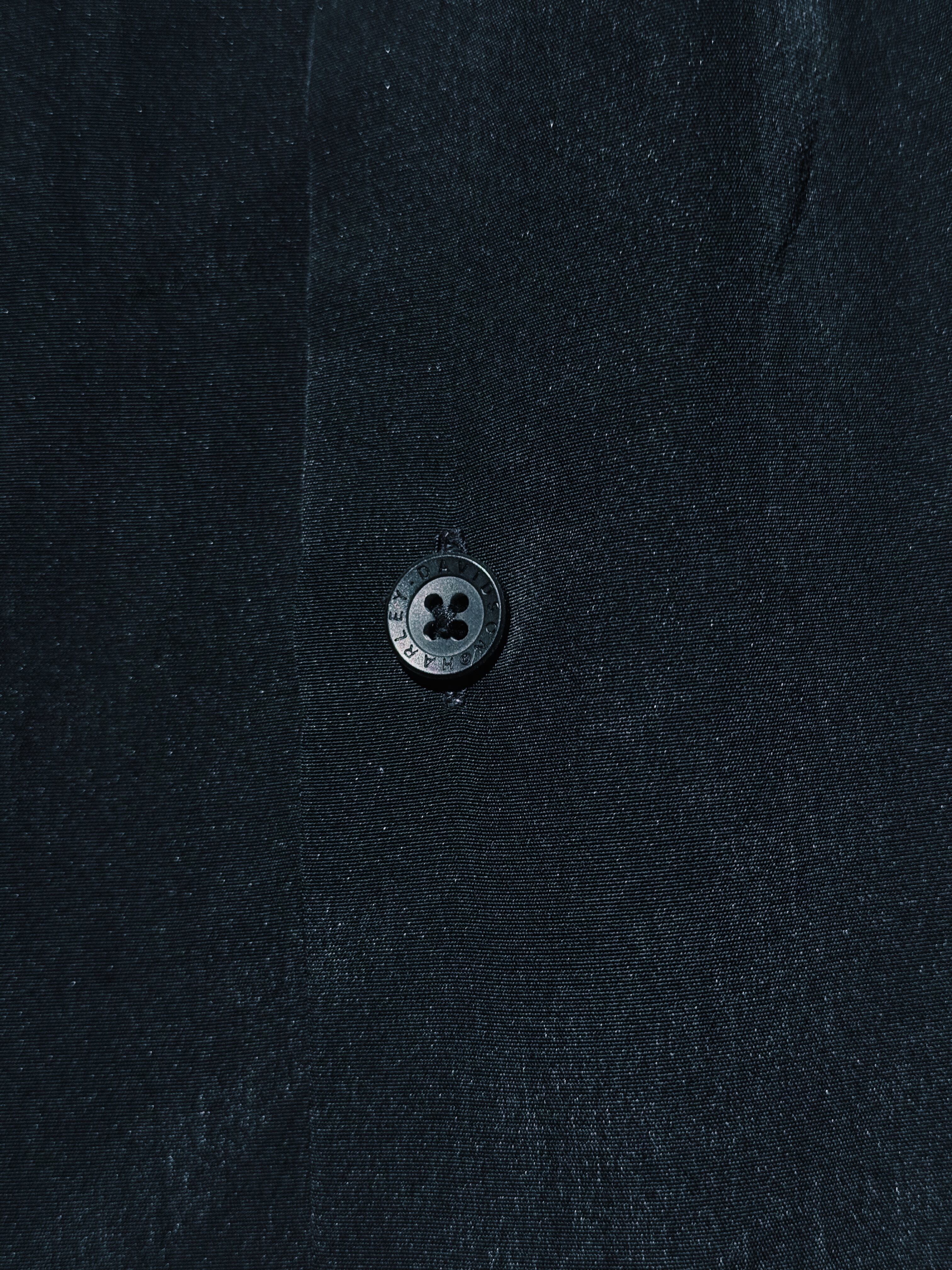 今回は重厚感のあるヘビーブラックに身を包んだショートスリーブシャツ。美しく程よい光沢に身を包んでいるので無地ながらも、圧巻の存在感を演出してくれます。