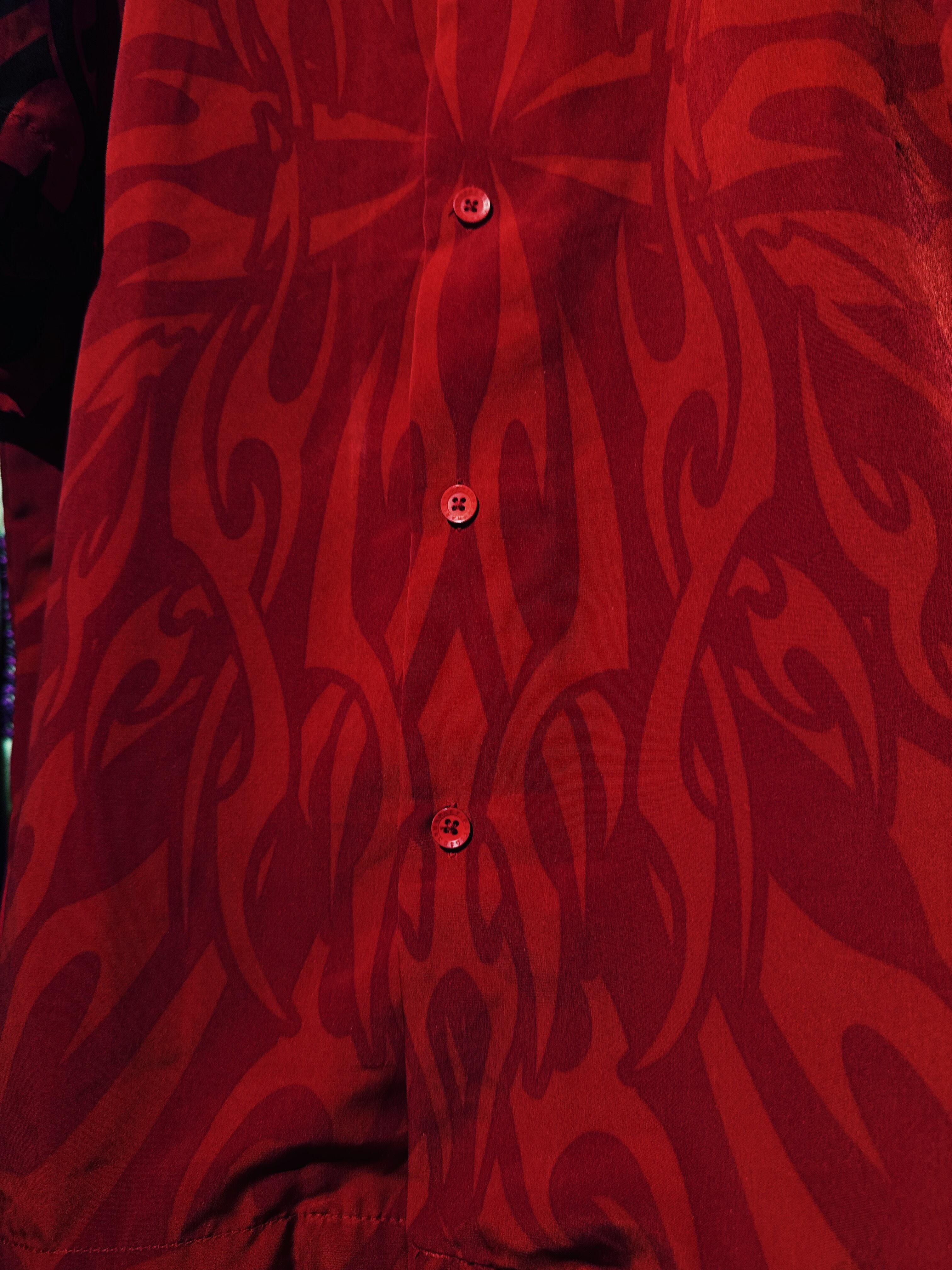 存在感あるクロムレッドをボディにトライバル柄が施された力強い仕上がりに。