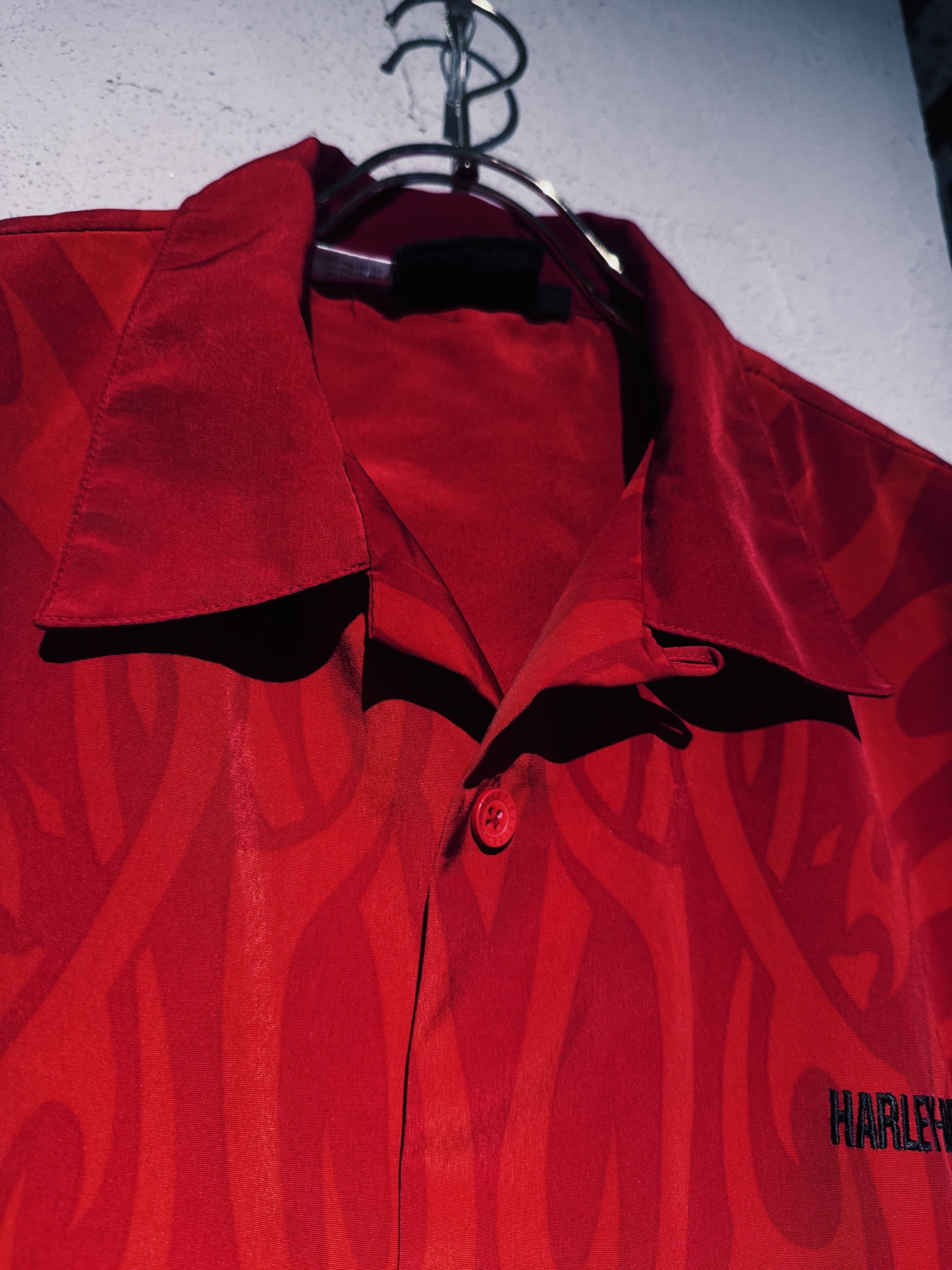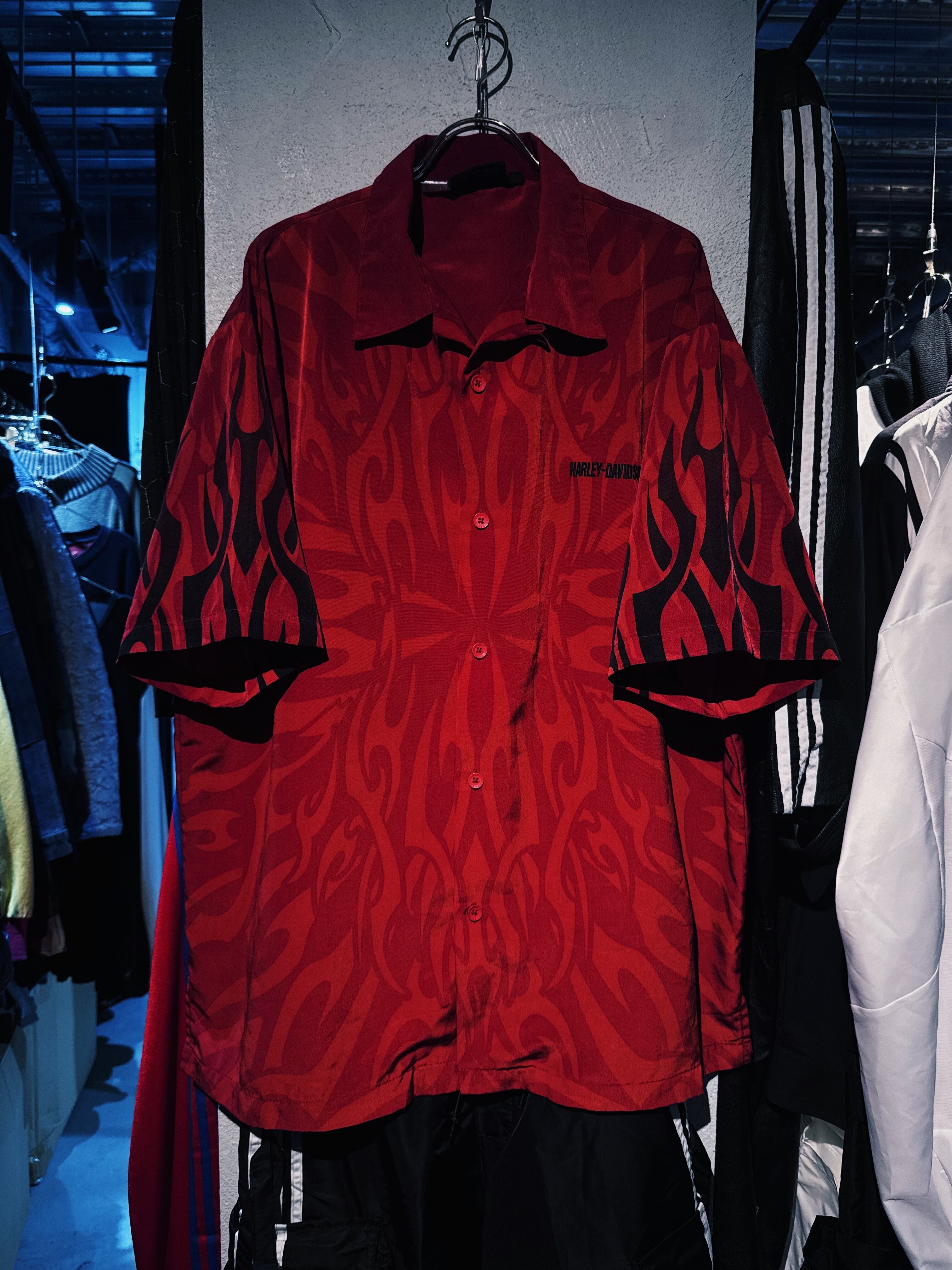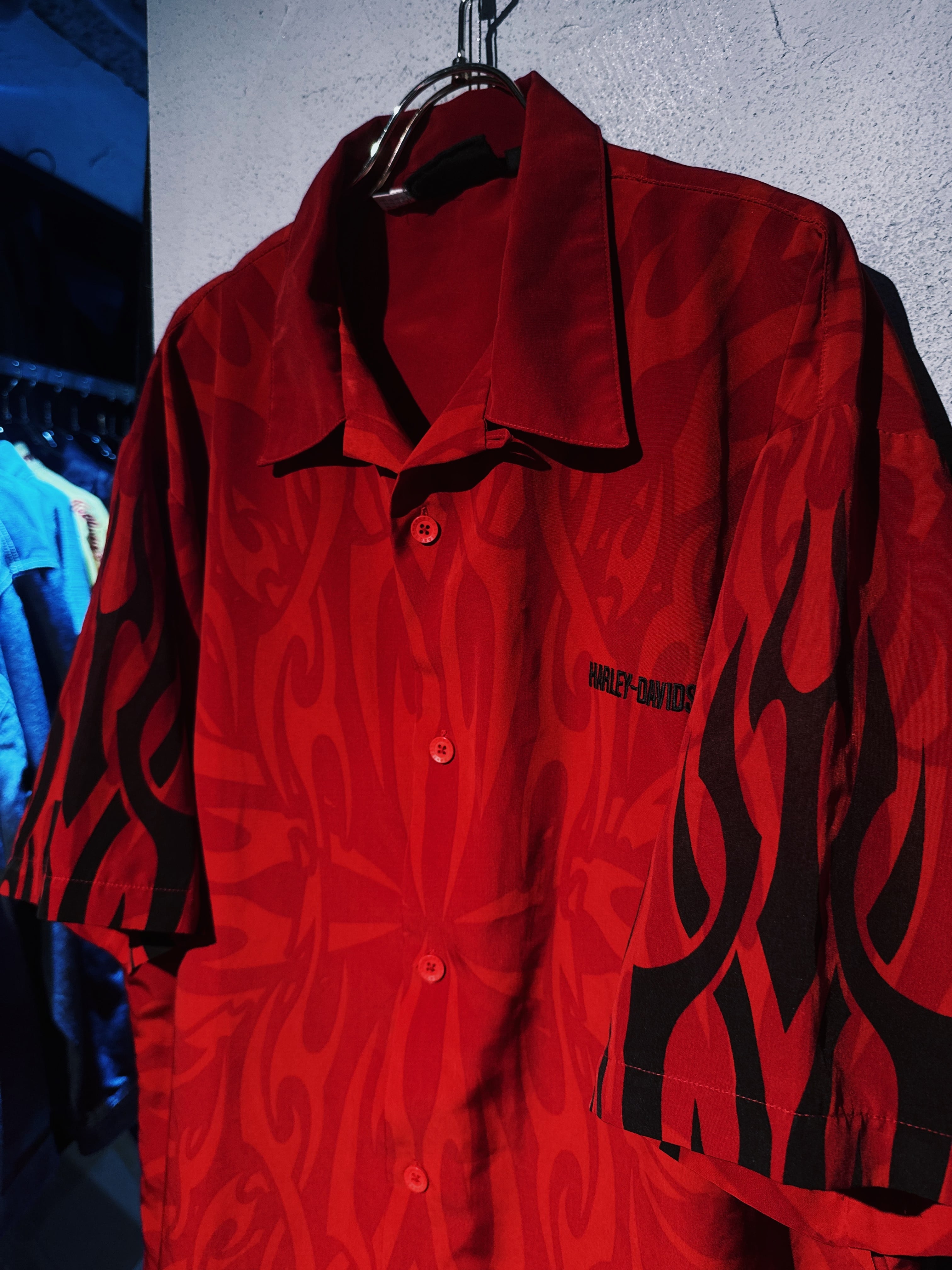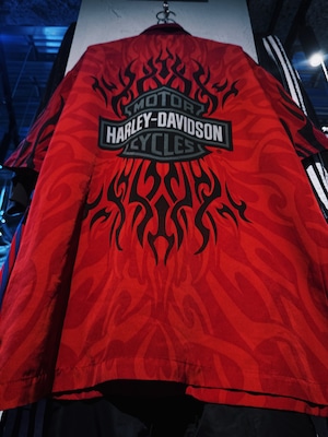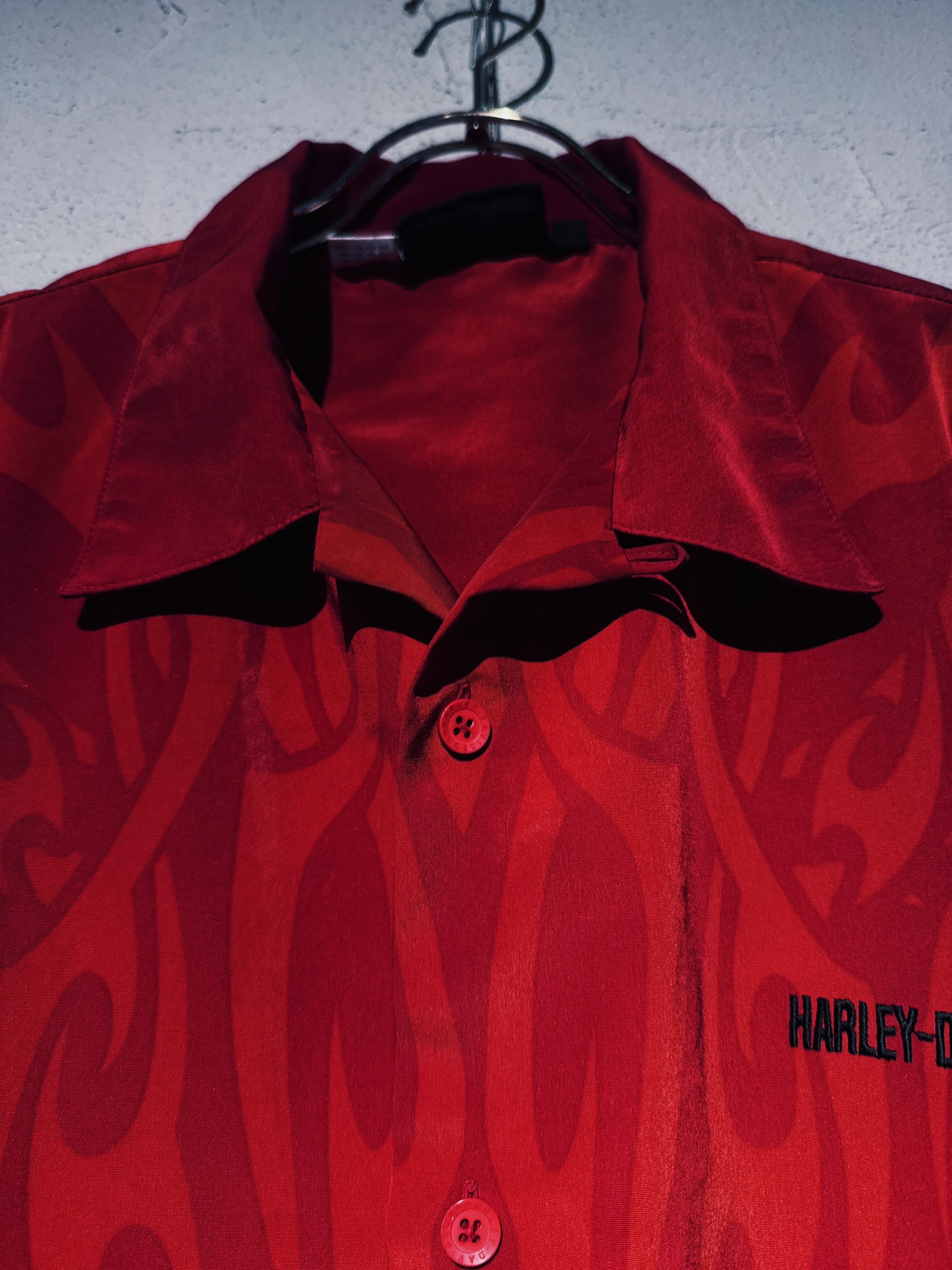 "ハーレーダビッドソン"ヴィンテージトライバルパターンオープンカラーショートスリーブシャツ
