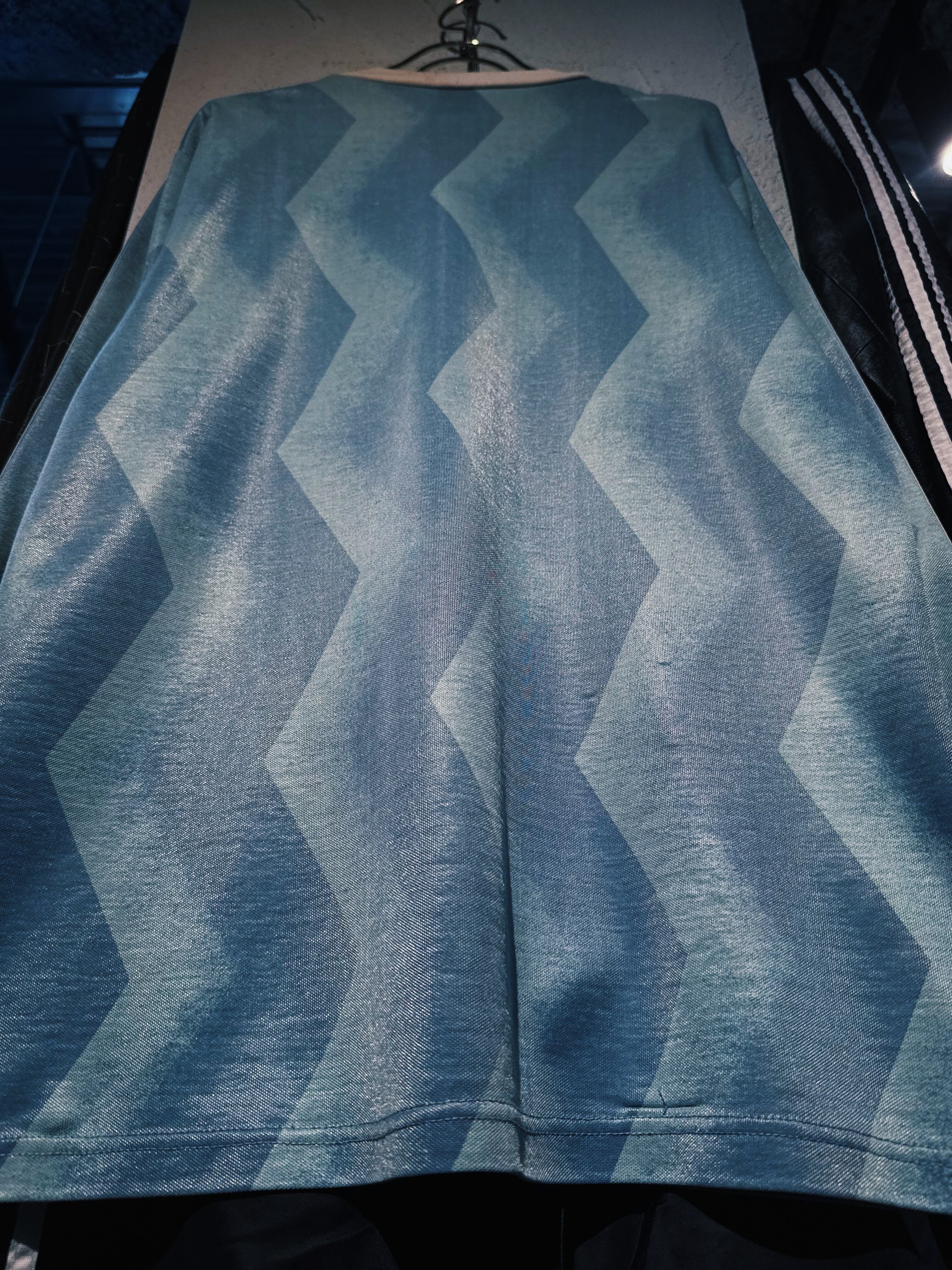 トレフォイルロゴデザインを胸に施し、全体的にブルーで爽やかな印象を持った一着。