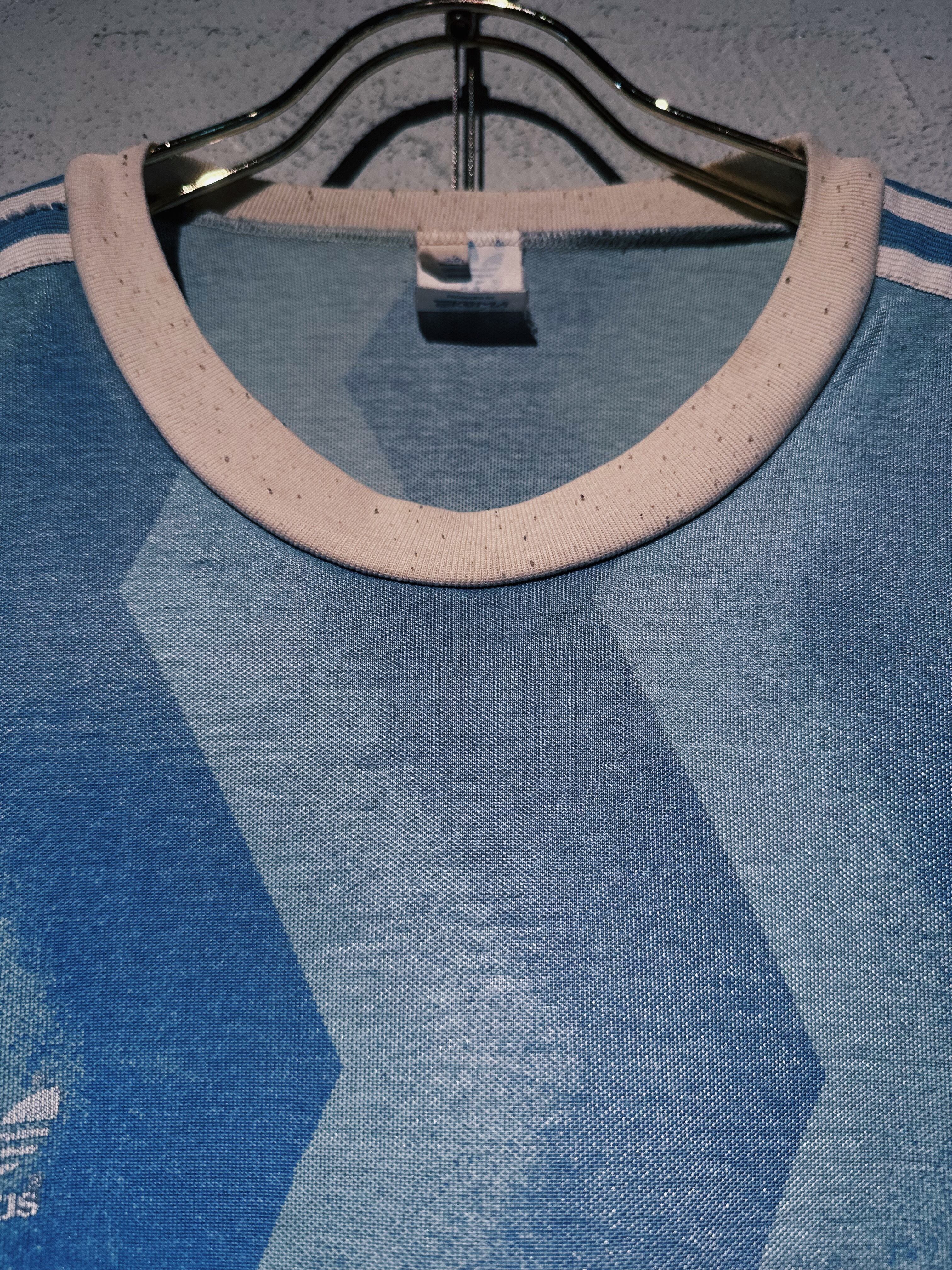 80年代ヴィンテージ"ADIDAS"3ストライプスデザイントレフォイルロゴプリントデザインクルーネックロングスリーブTシャツ