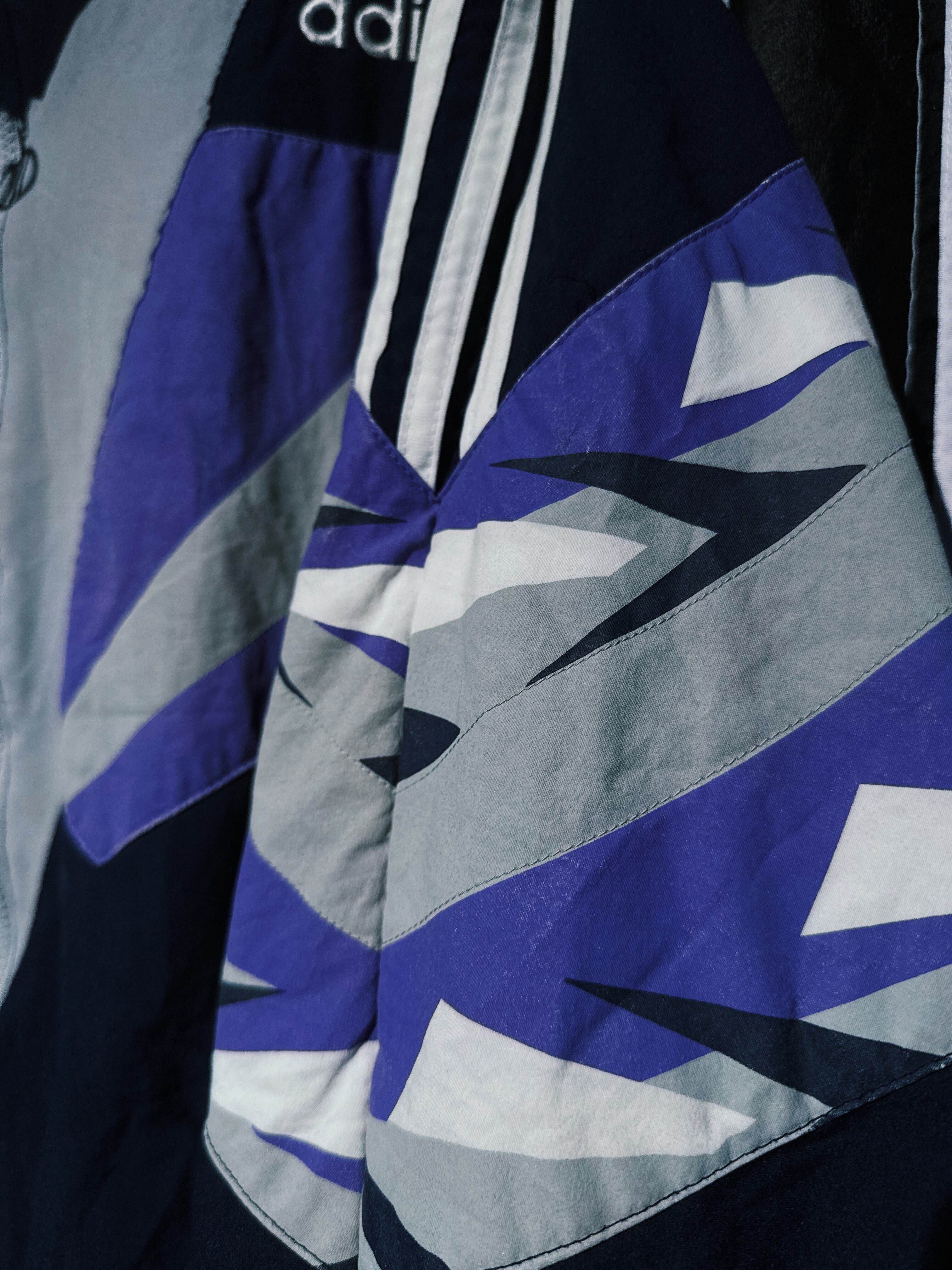パープルカラーのスイッチングに目が奪われるナイロントラックジャケット。3ストライプスやロゴとは違いユーロ規格らしい洗練されたデザインは高級感があって良いですね。