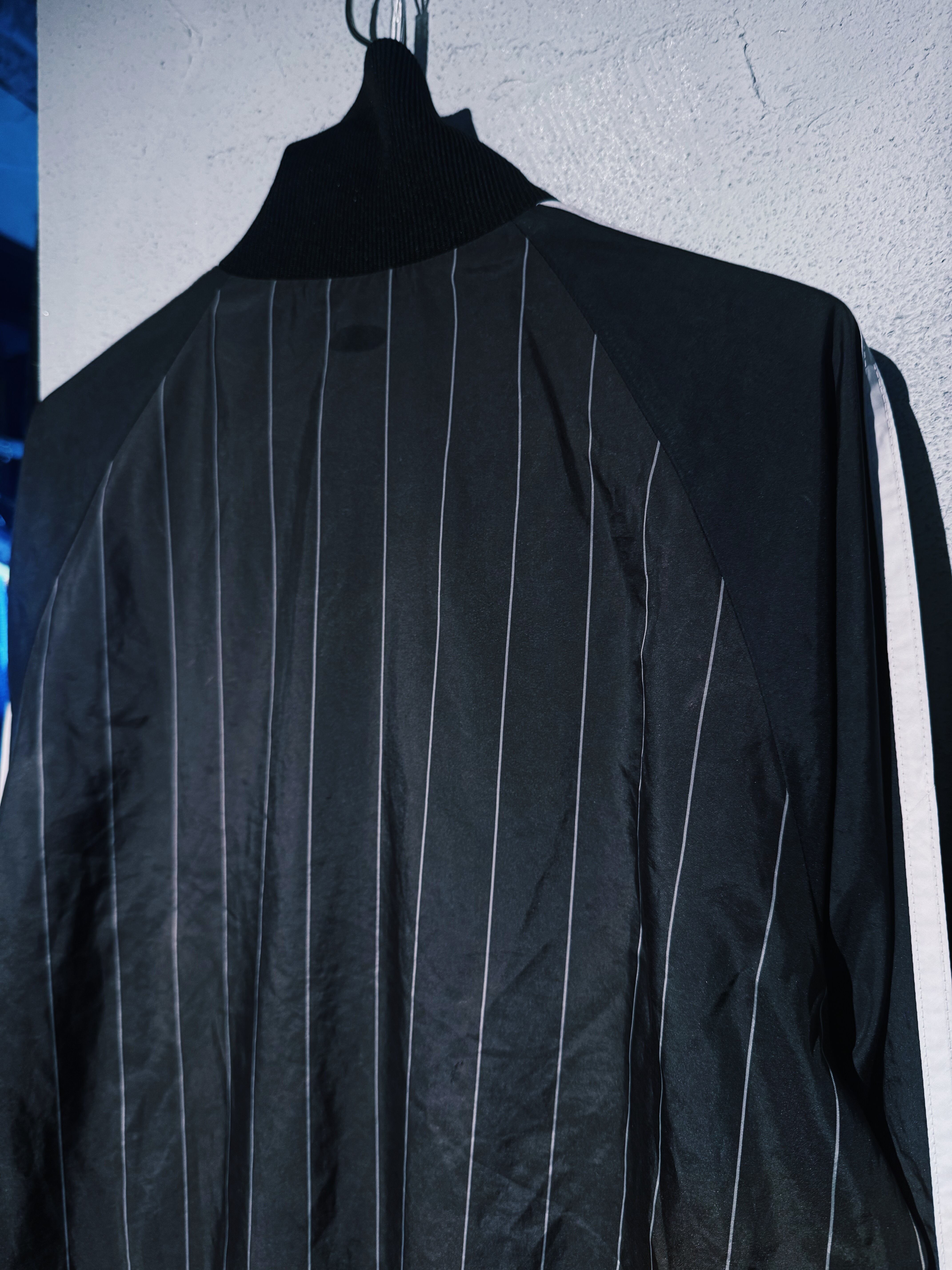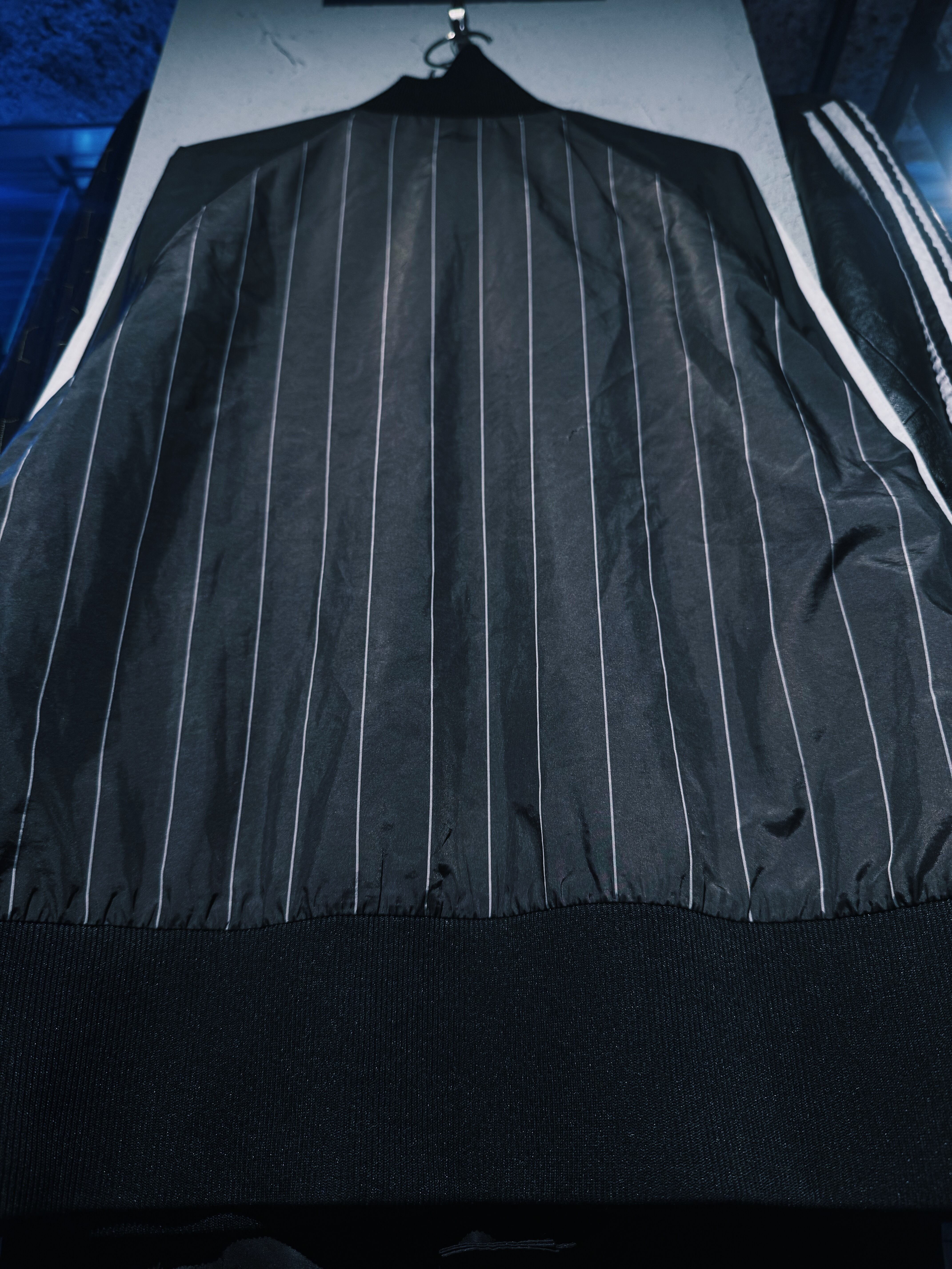 ハイモードなブラックを身に纏い、ボディが光沢感のある異素材とスイッチングされた稀有なデザインのトラックジャケット。