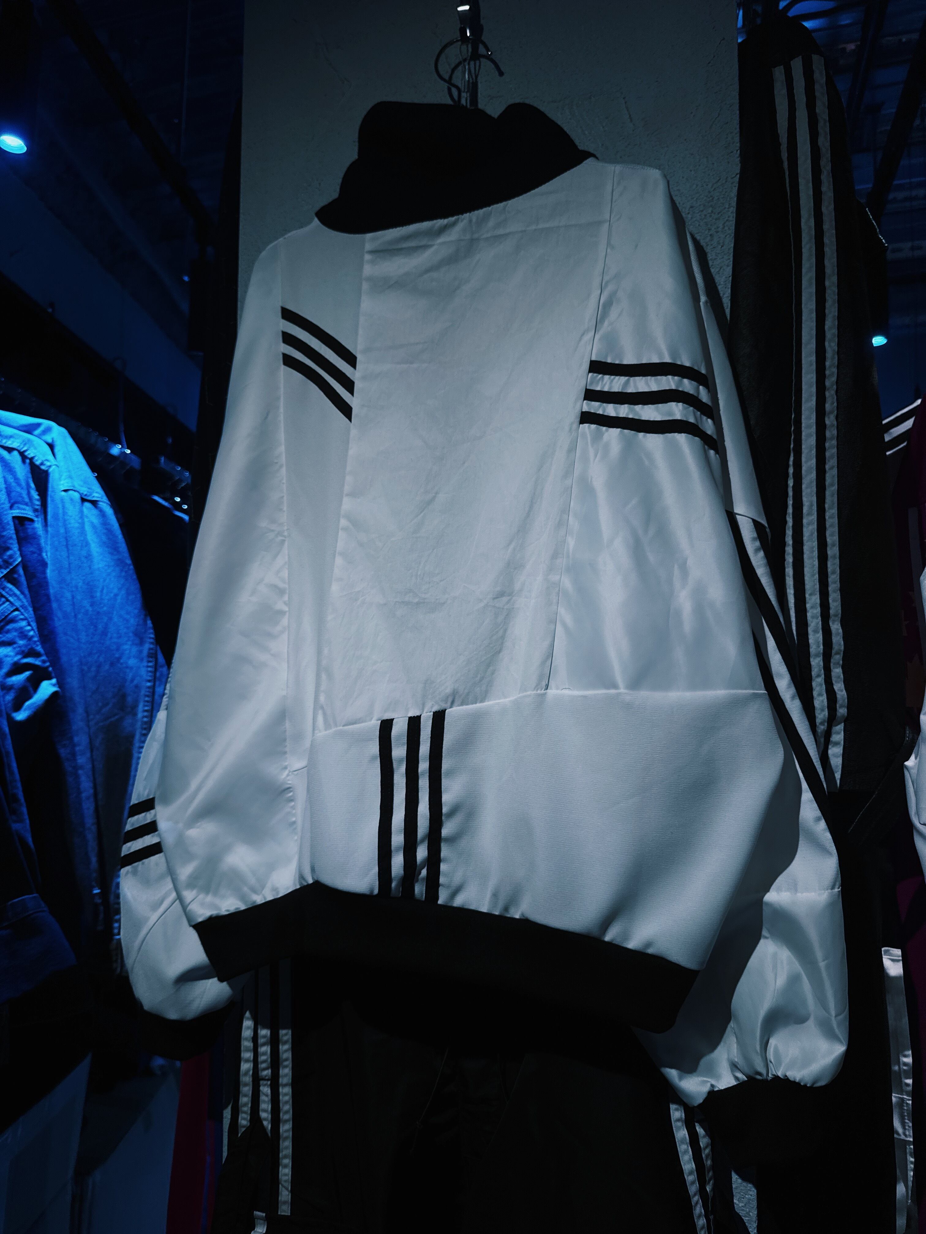 他数のトラックジャケットをパッチワークでデザインを施しており、全てバラバラで圧巻の存在感。無数のトラックジャケットで中には名チームや企業などのチームウェアも存在している個体もあります。
