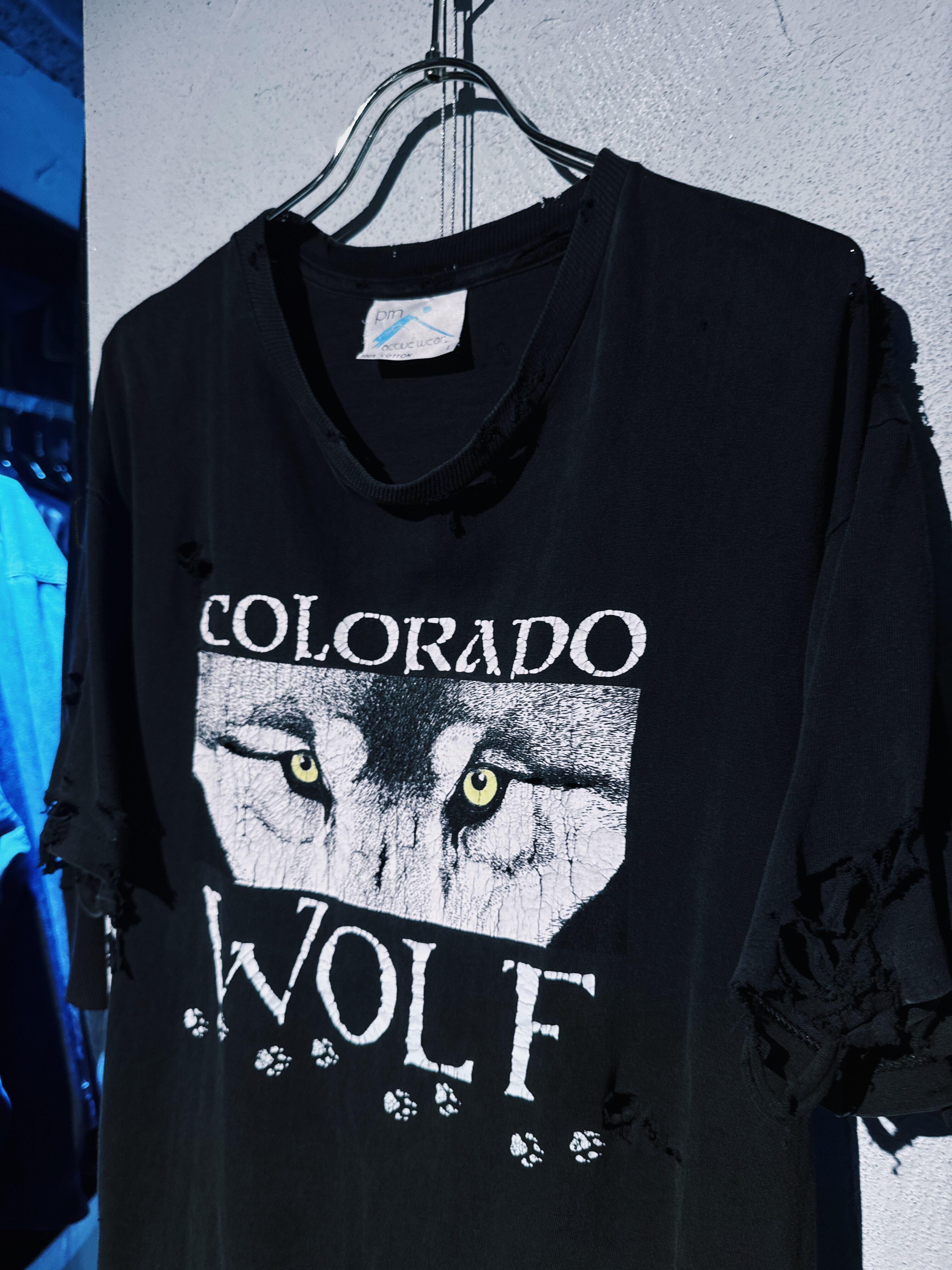 90'sヴィンテージウルフデザインボロカスタムリメイクTシャツ