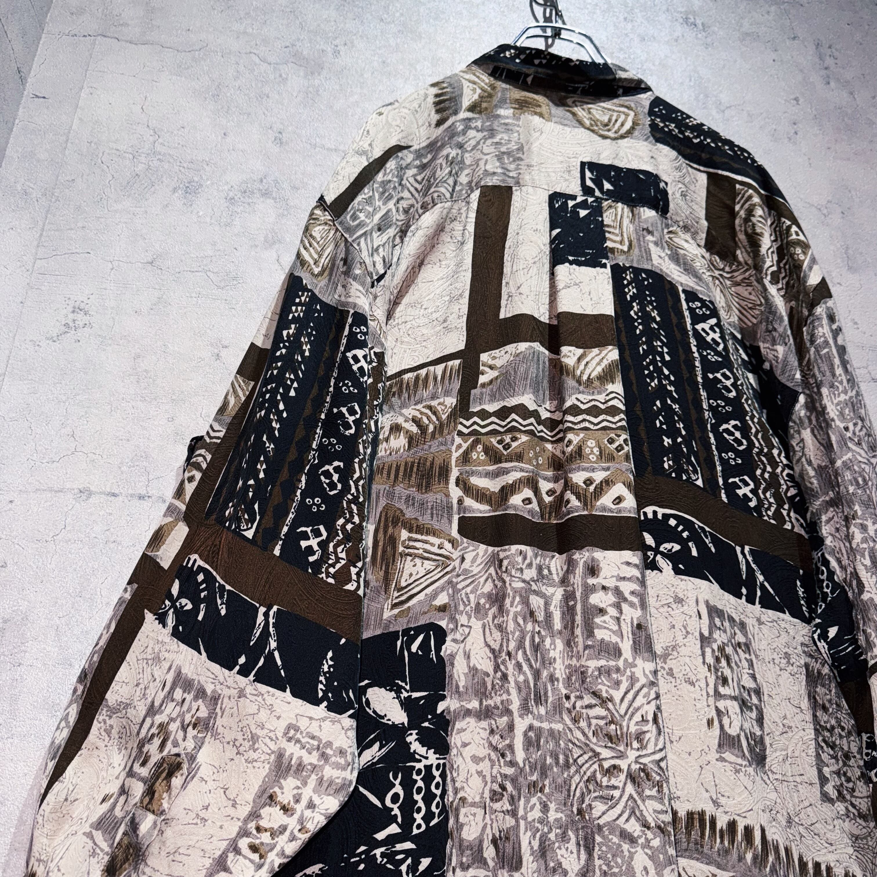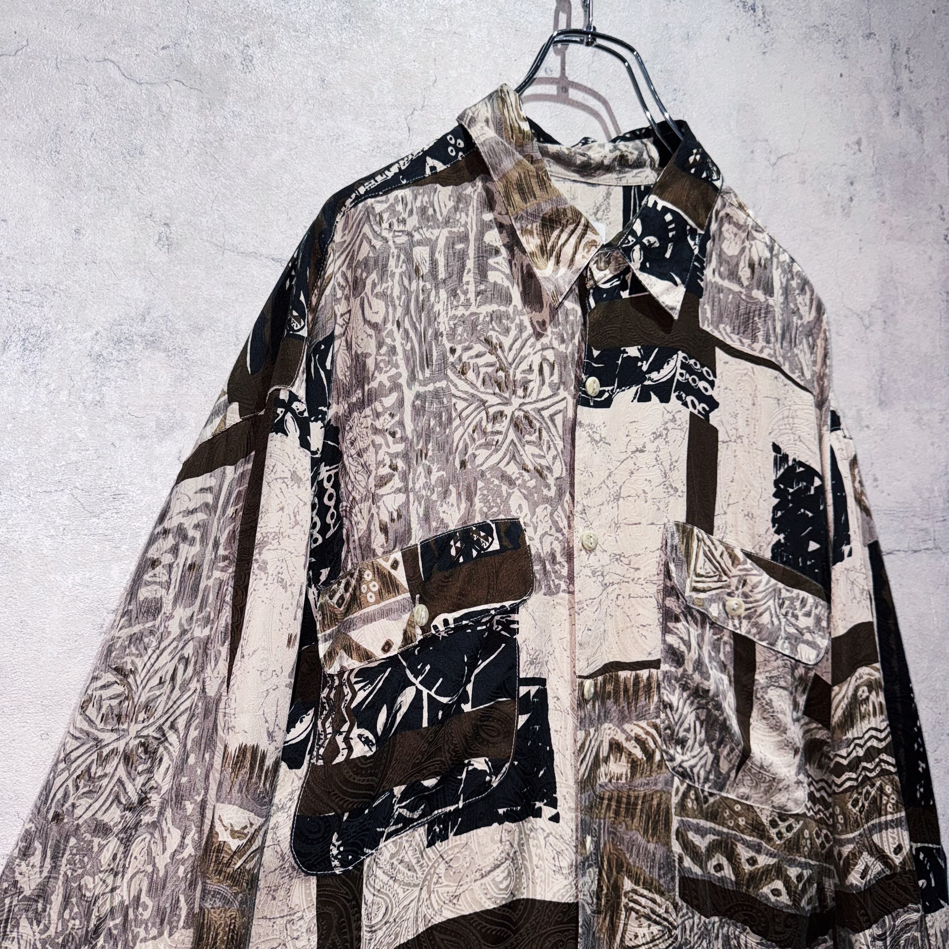 ヴィンテージ90年代アートグラフィックパターンデザインシルクシャツ