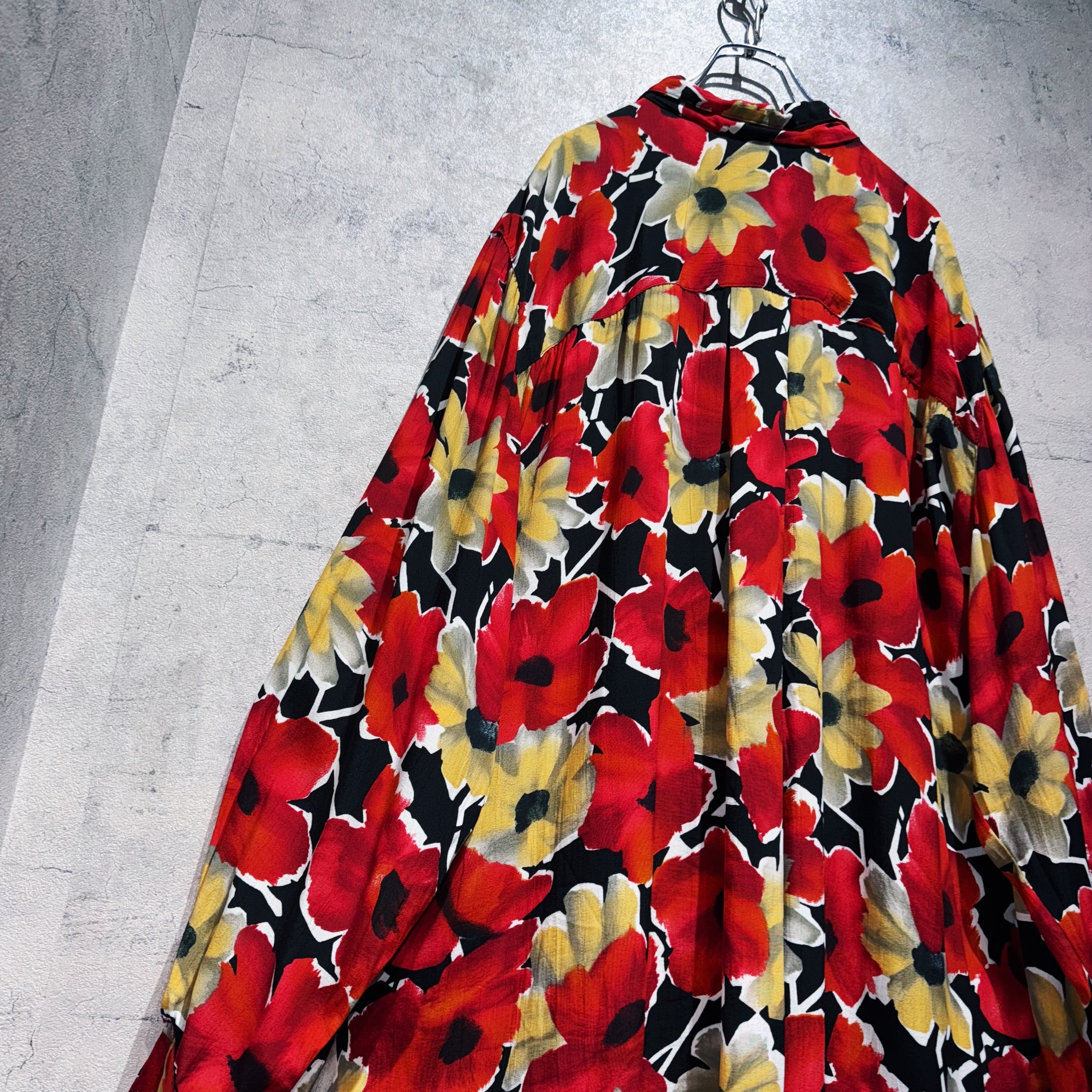 水彩画のようなアートなタッチで美しい花々を描いたグラフィックシャツ。赤と黄色のカラーリングが力強さを表現し、ただならなぬ存在感を演出。