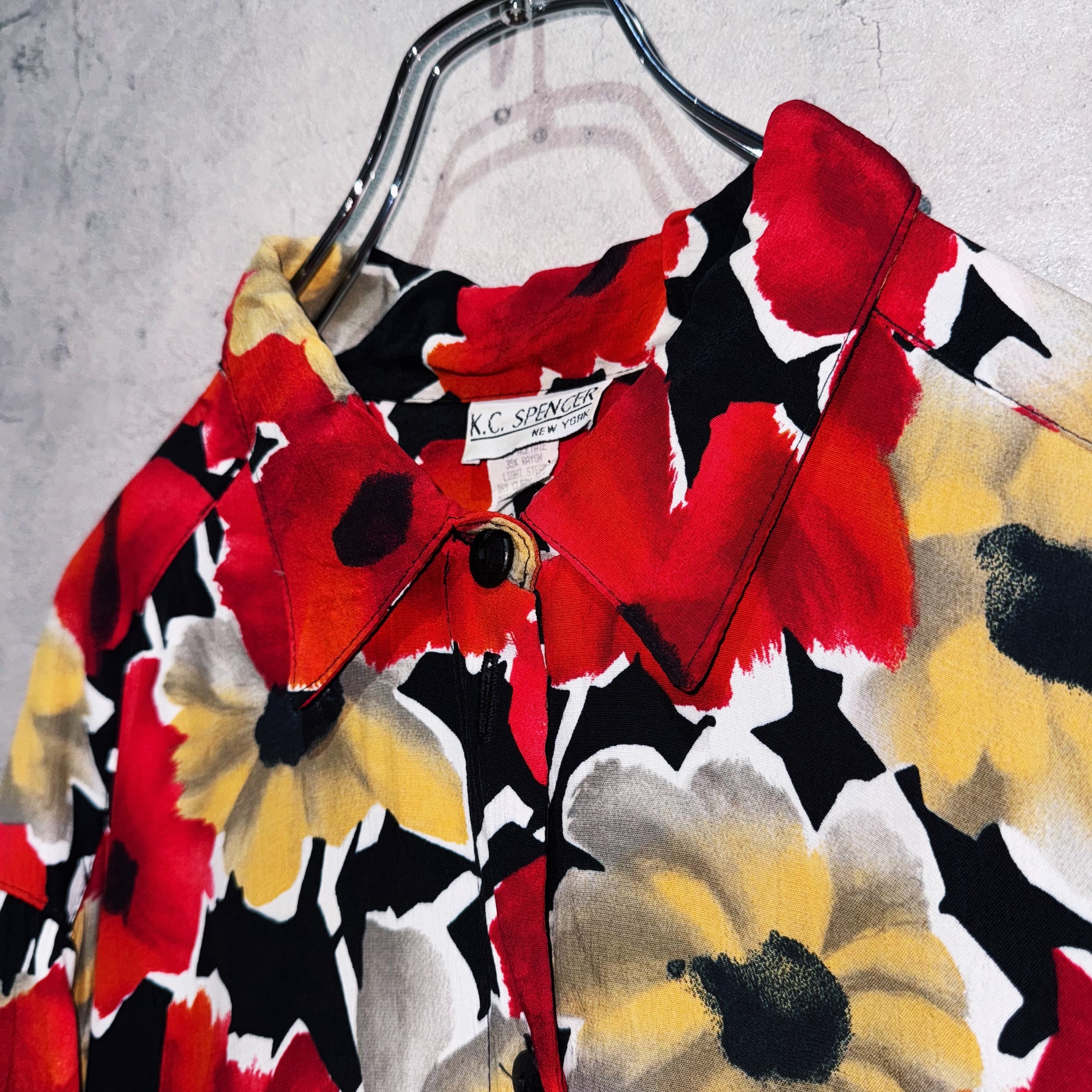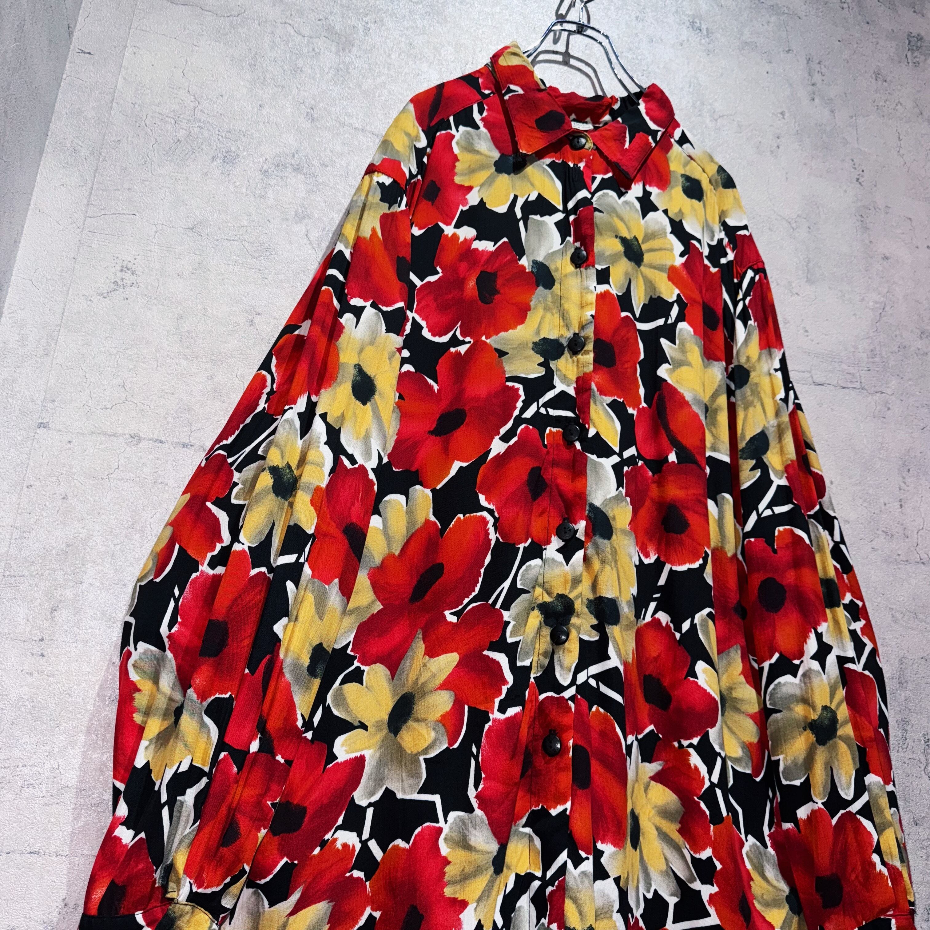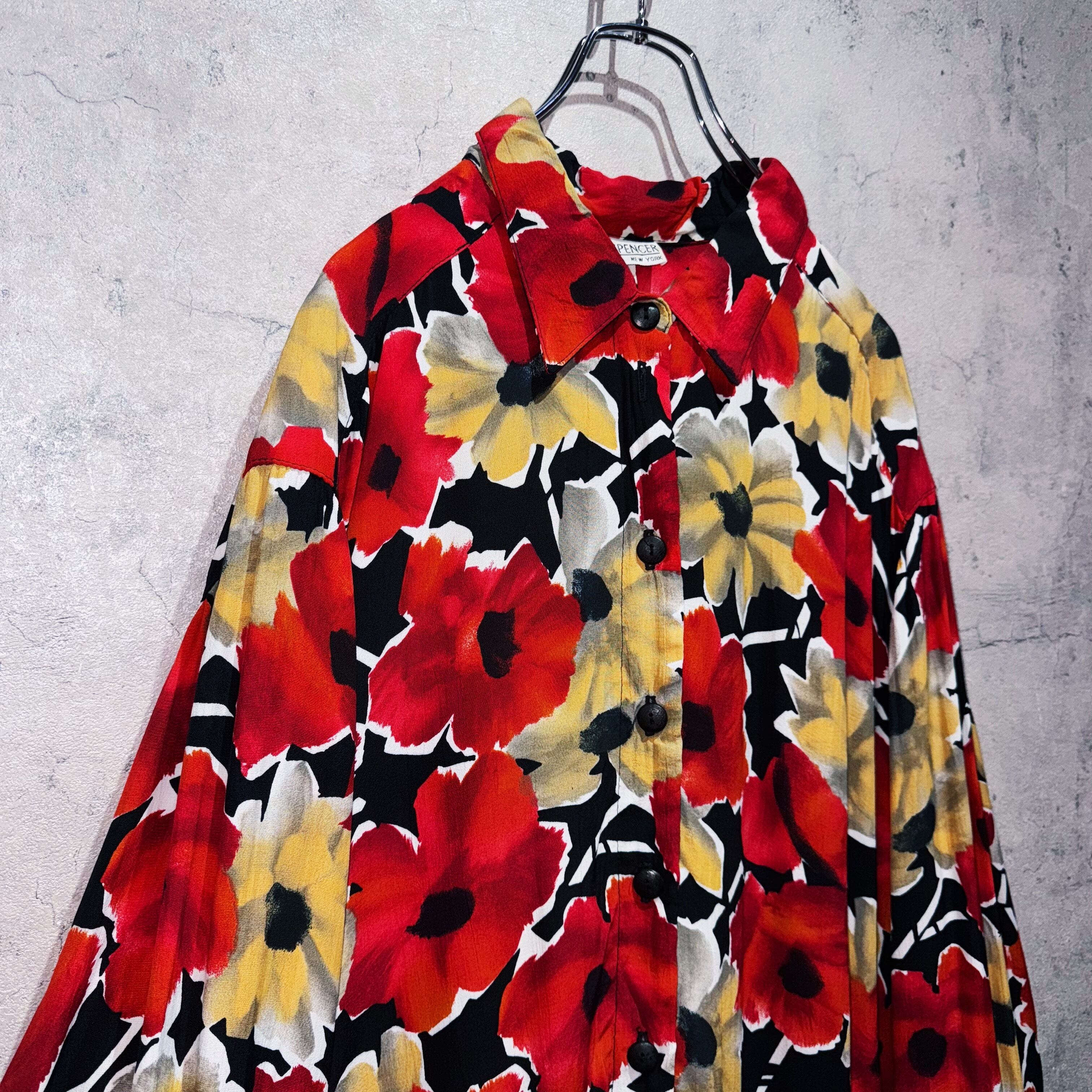 ヴィンテージアートフラワーパターンデザインルーズシャツ