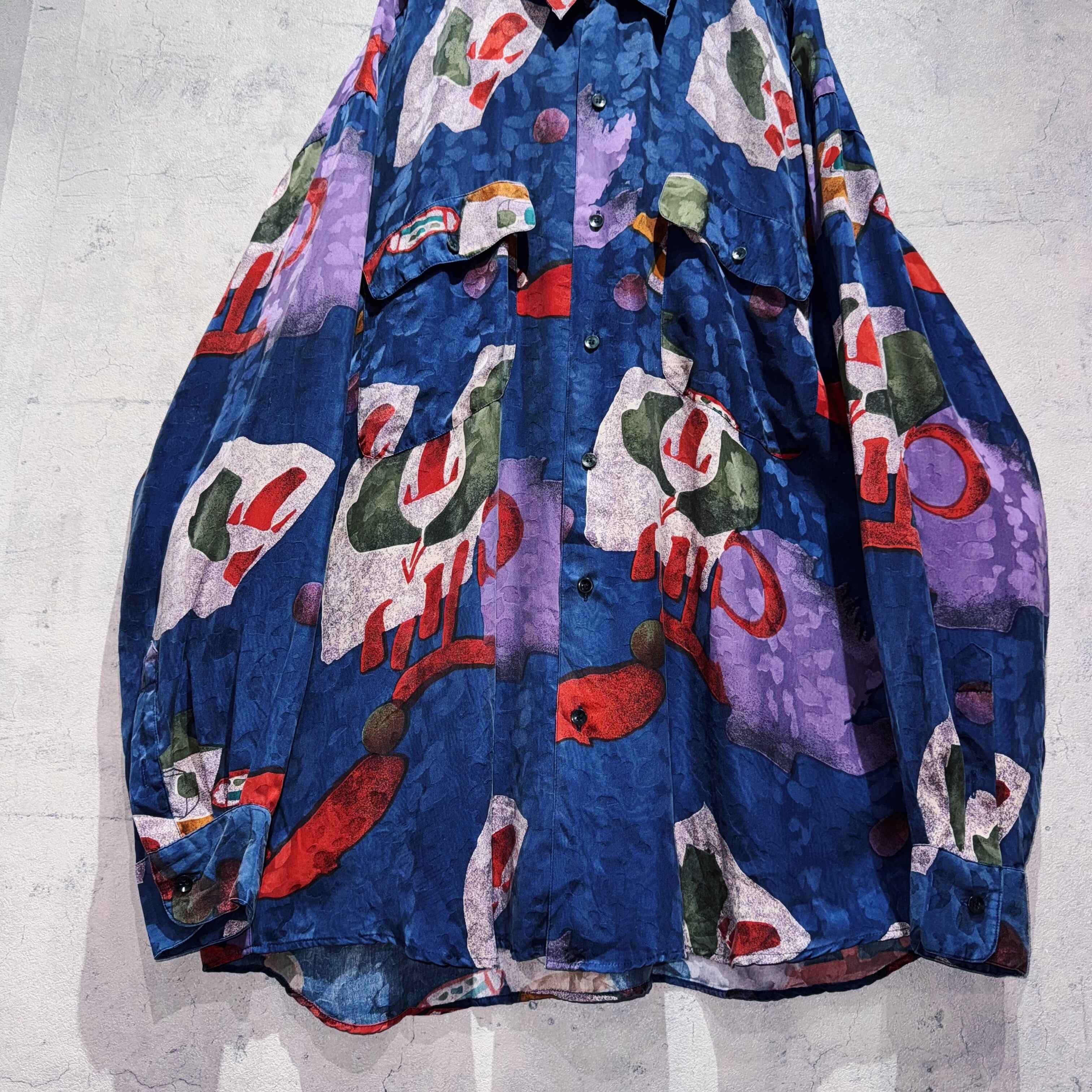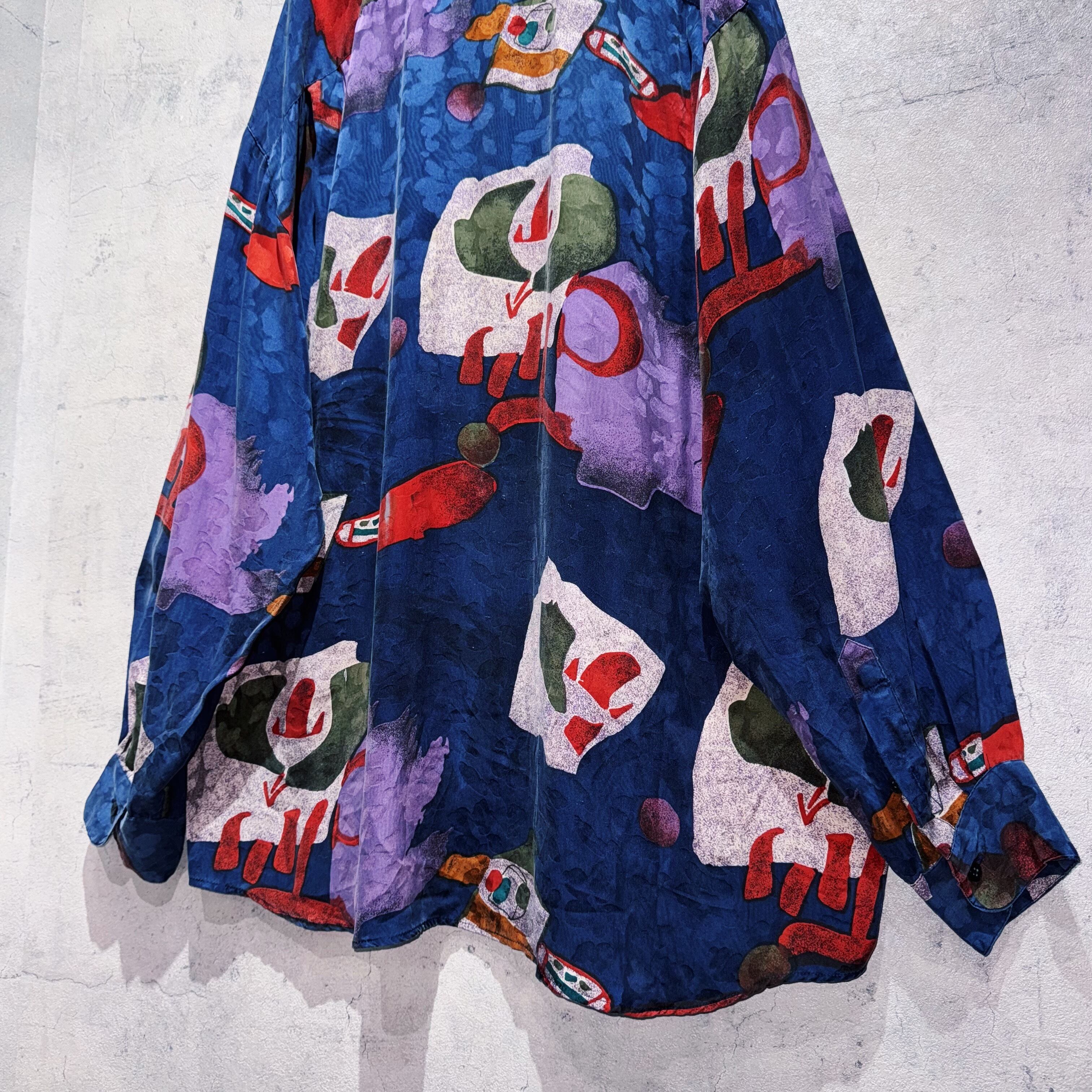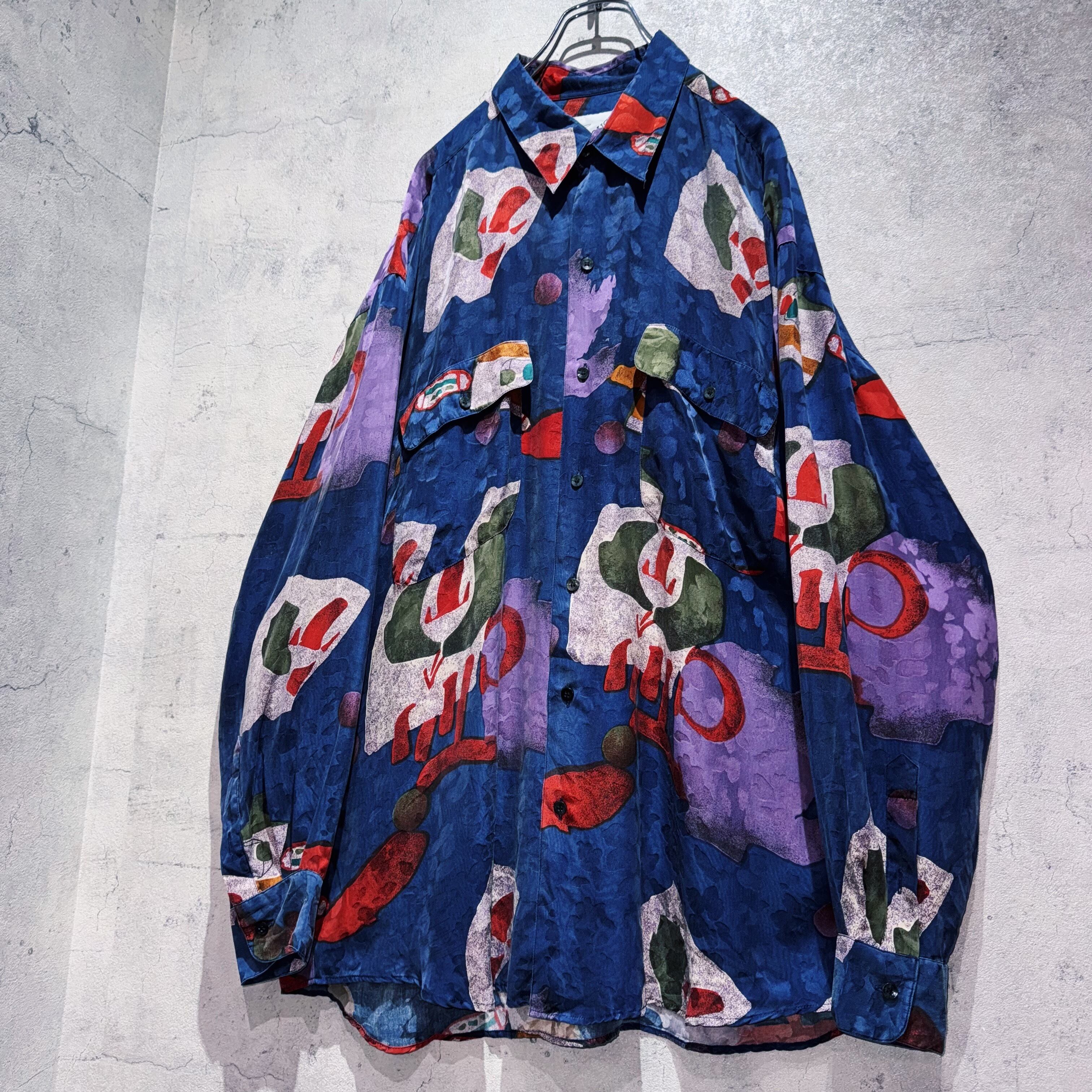 "Dead stock"90's Art graphic pattern design silk shirt