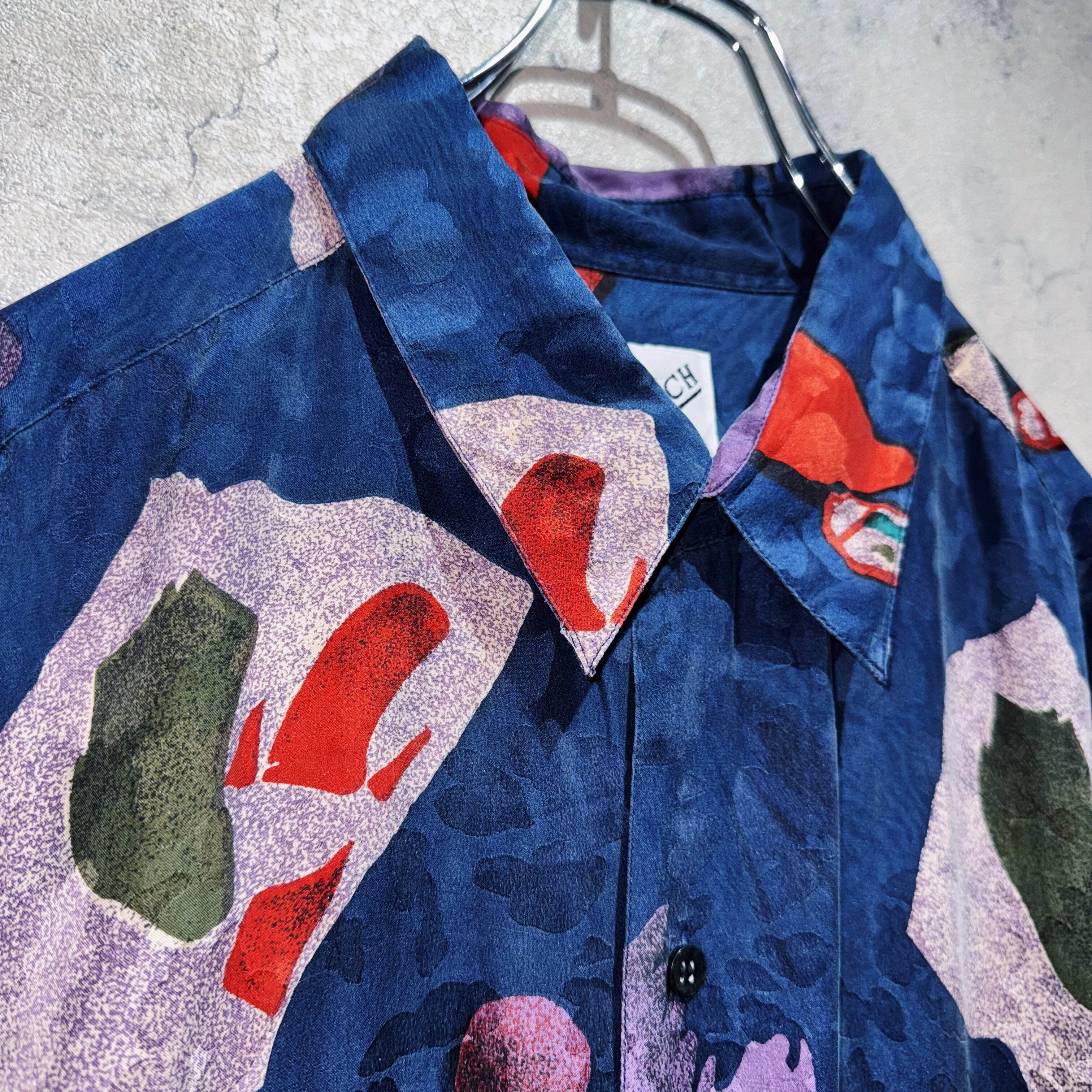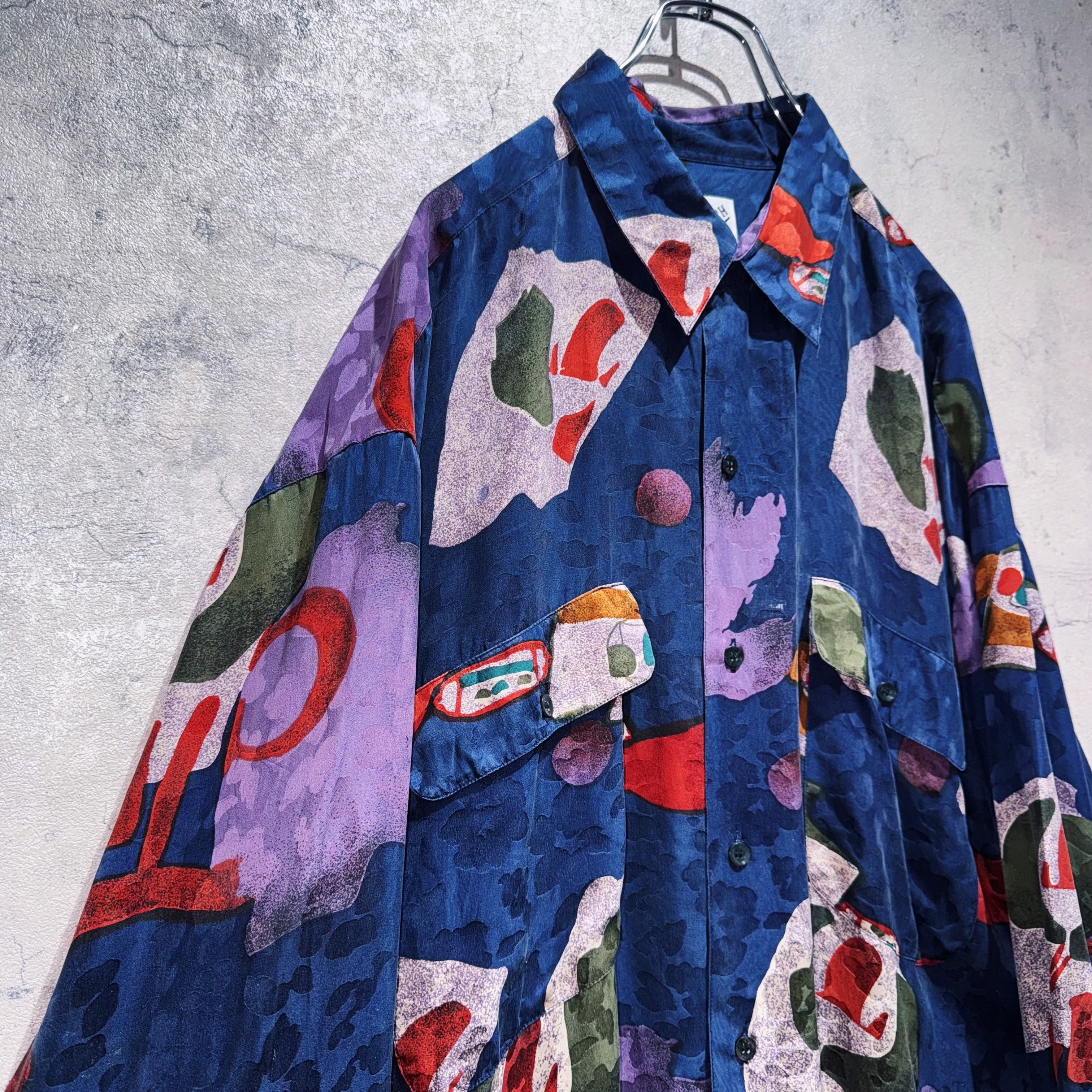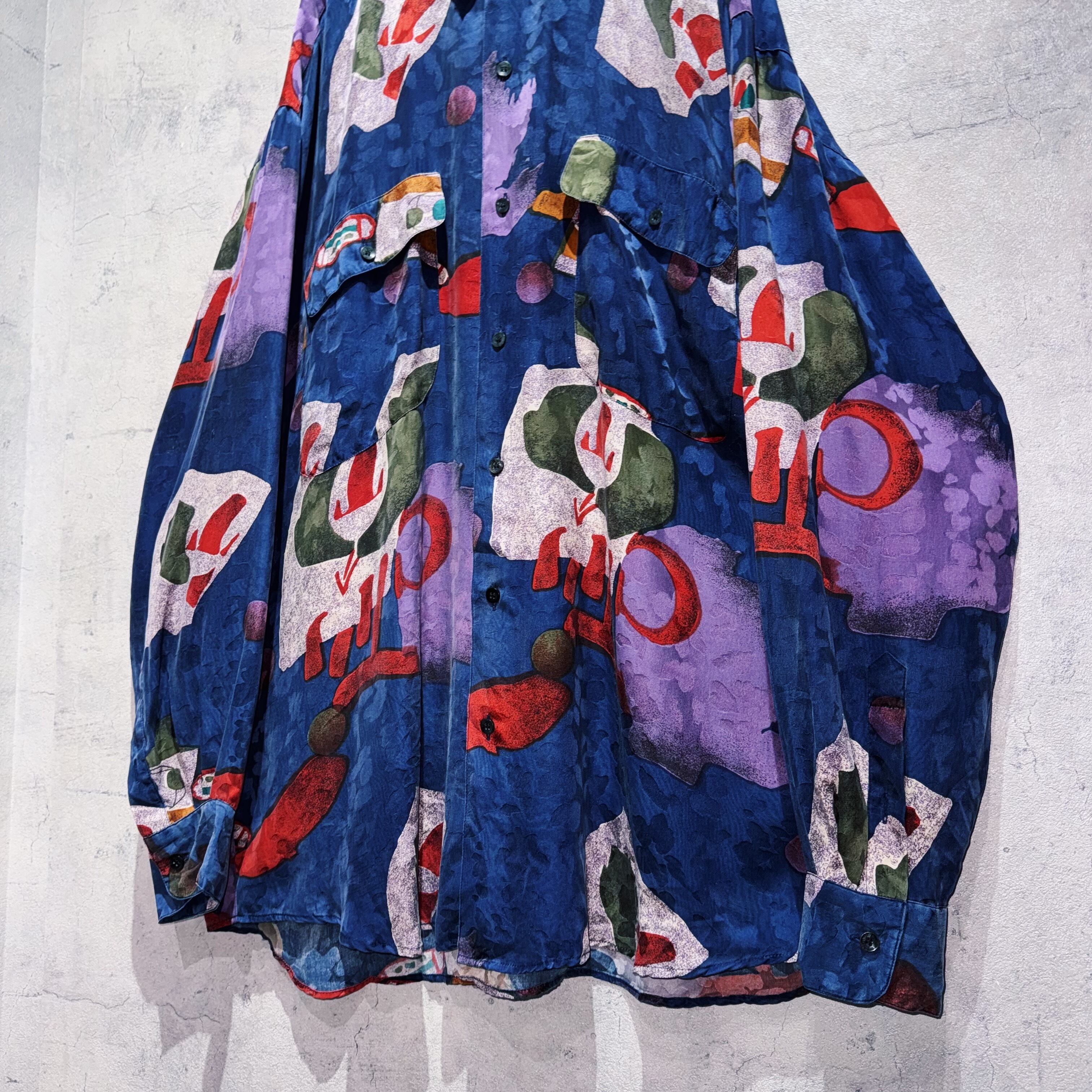 "Dead stock"90's Art graphic pattern design silk shirt
