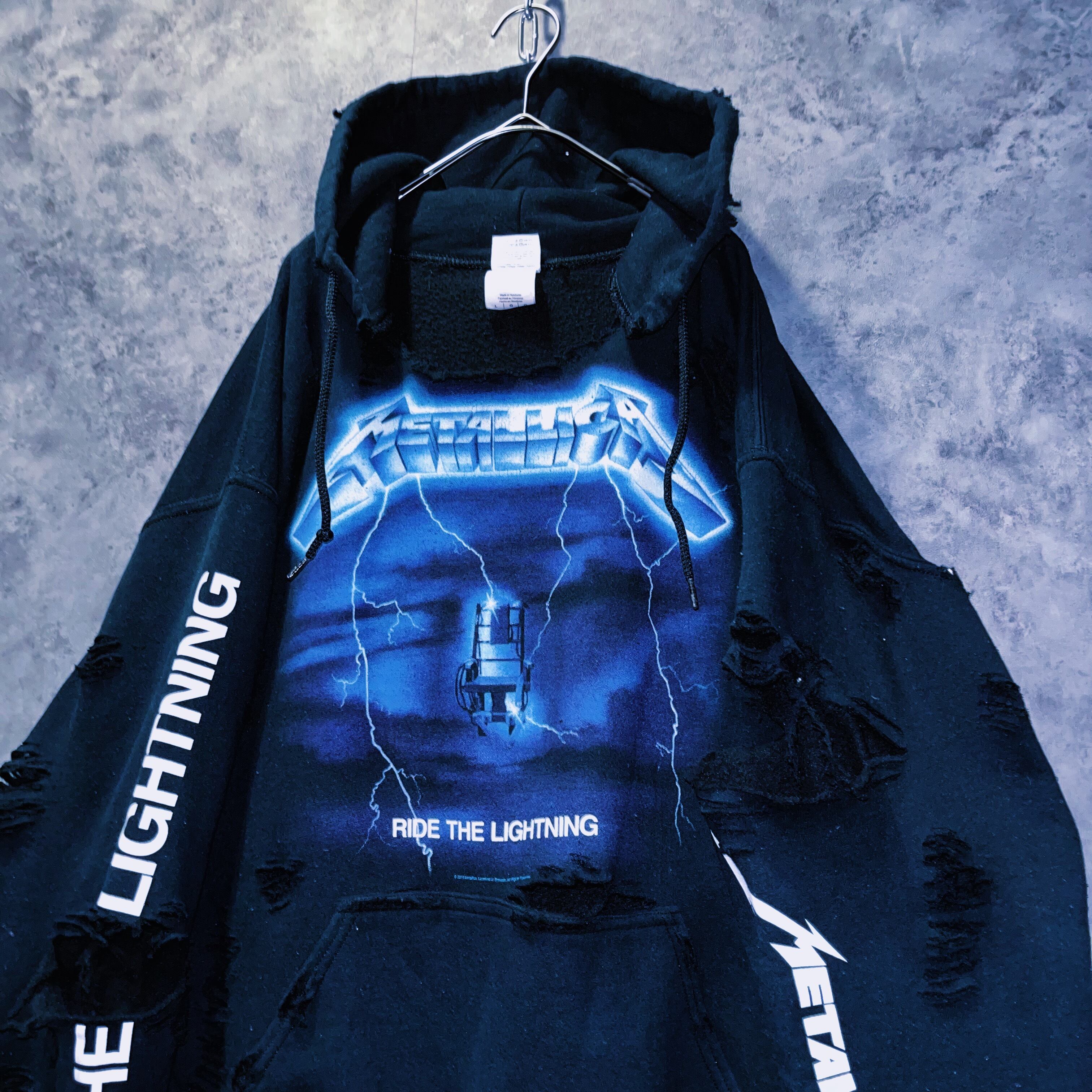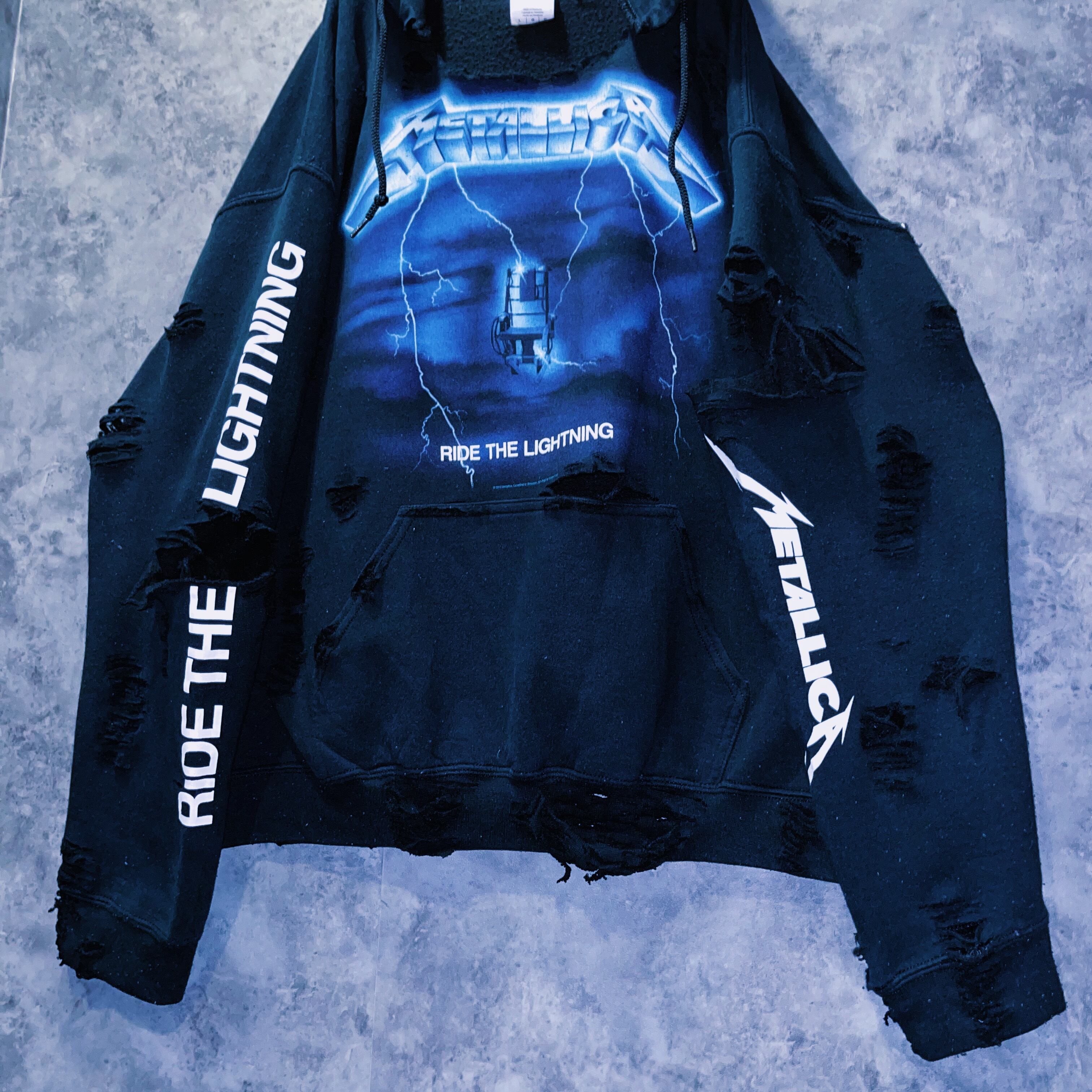スペシャルヴィンテージ“METALLICA Ride the lightning”バンドロゴデザインボロカスタムスウェットフーディー