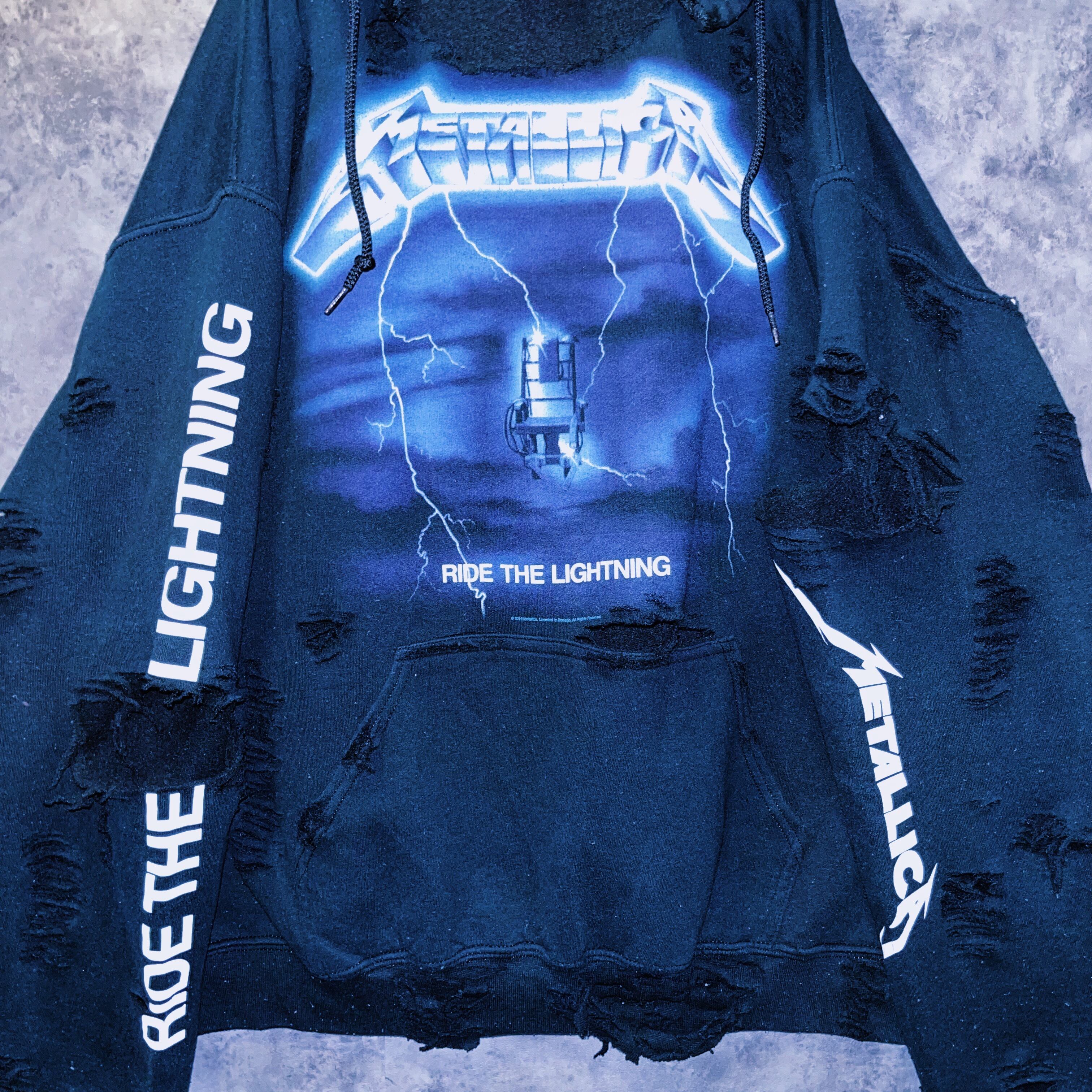 special vintage “METALLICA Ride the lightning” band logo design boro custom sweat hoodie