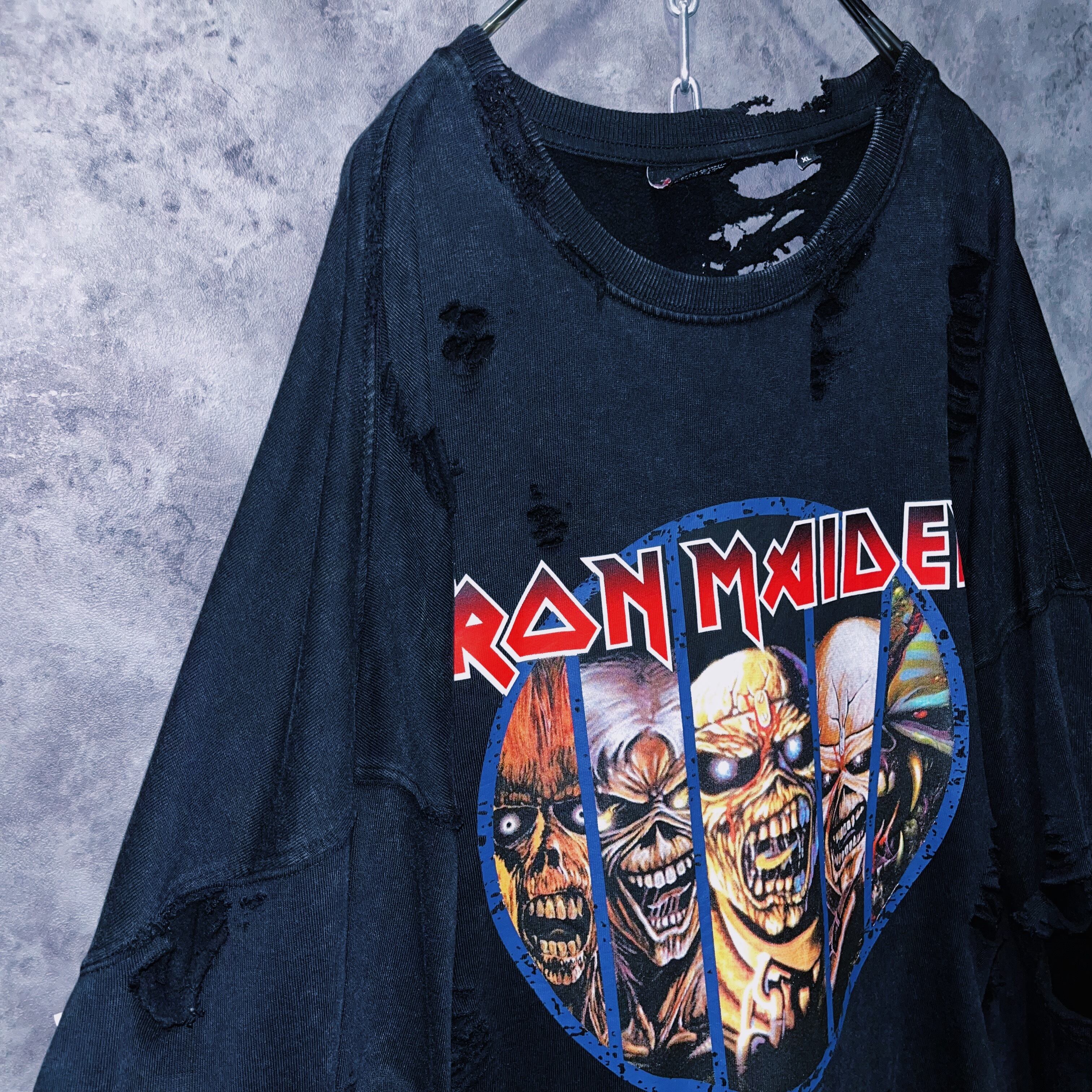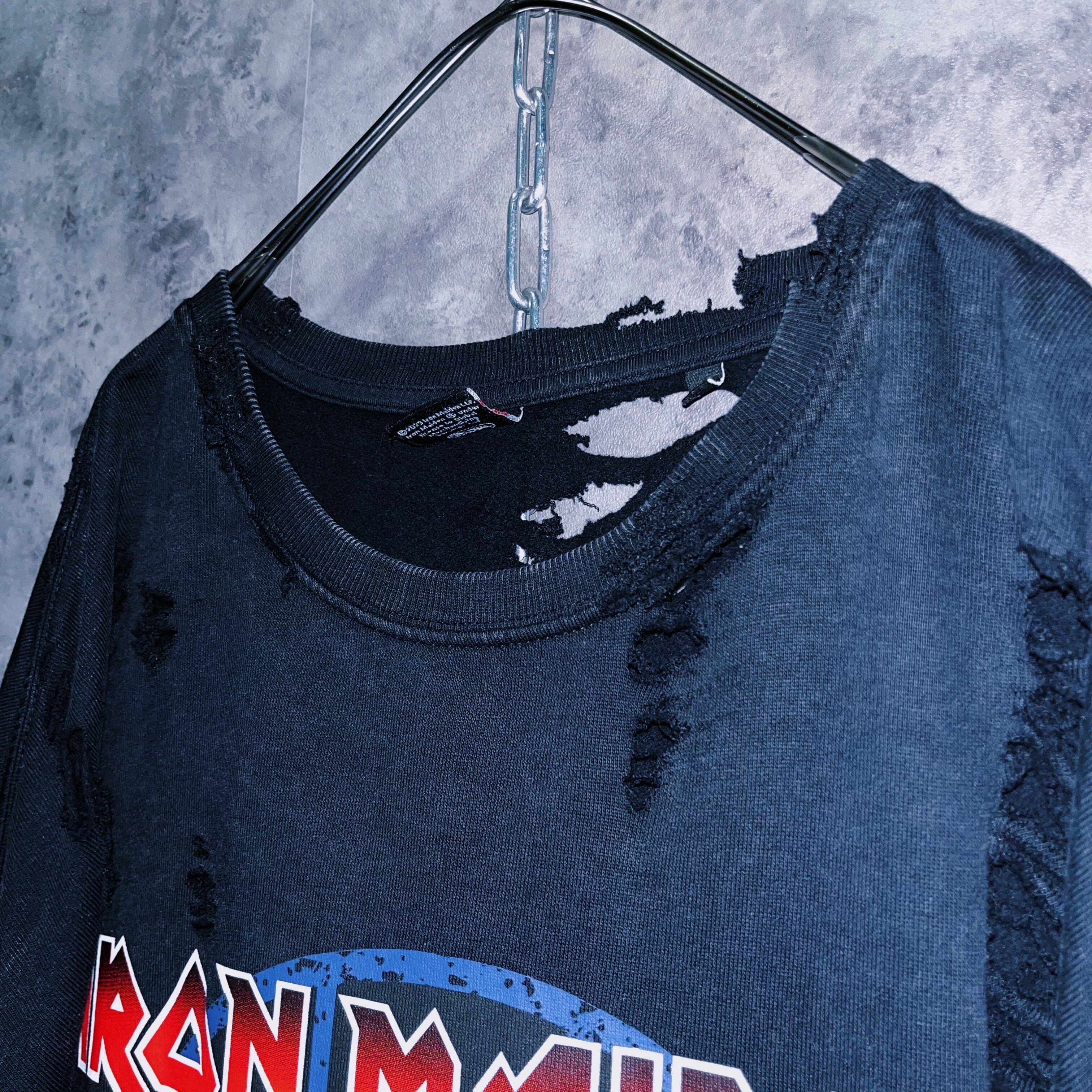 スペシャルヴィンテージ“IRON MAIDEN”バンドロゴデザインボロカスタムロングスリーブTシャツ