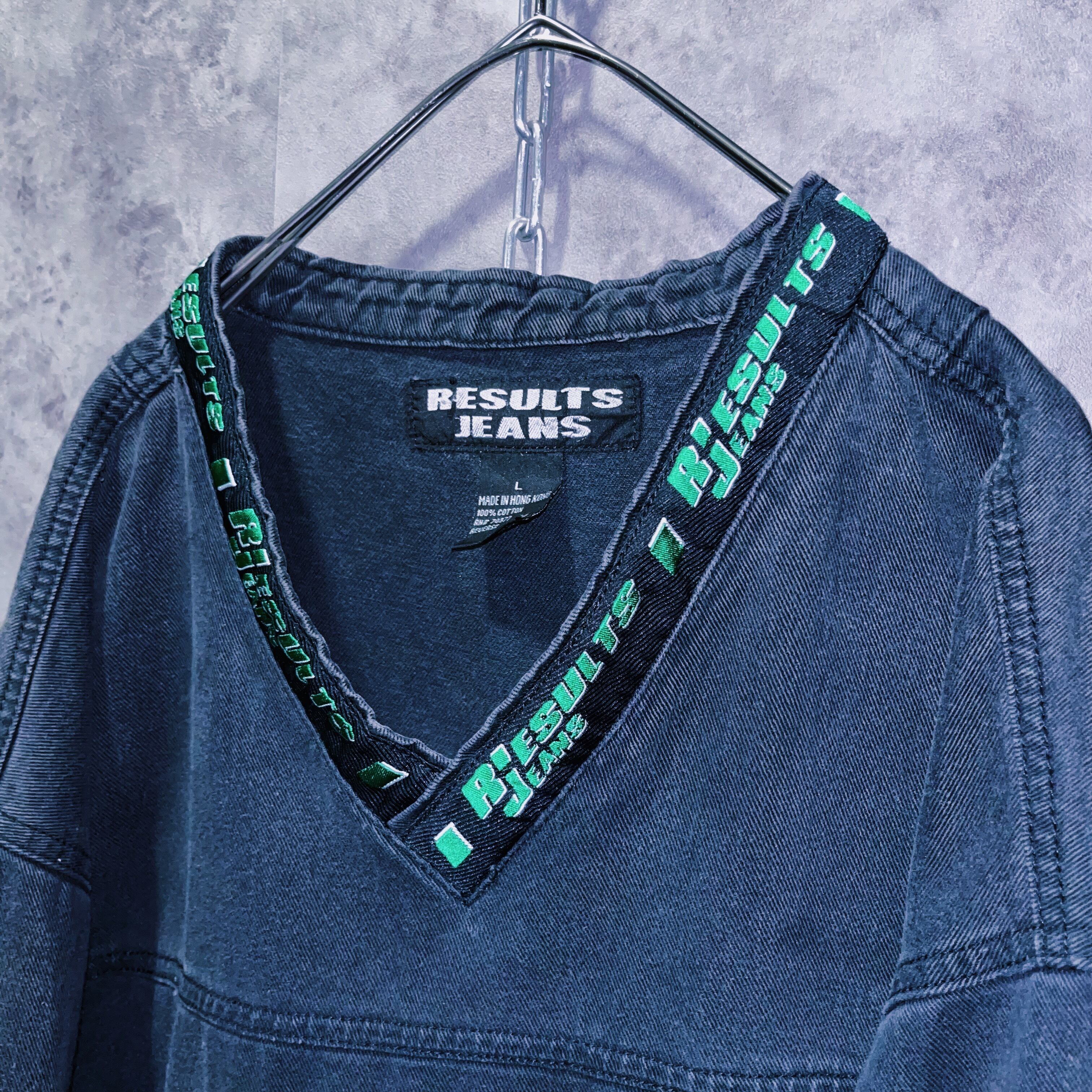 90年代ヴィンテージ"RESULTS JEANS"ブラックデニムハーフスリーブルーズゲームシャツ