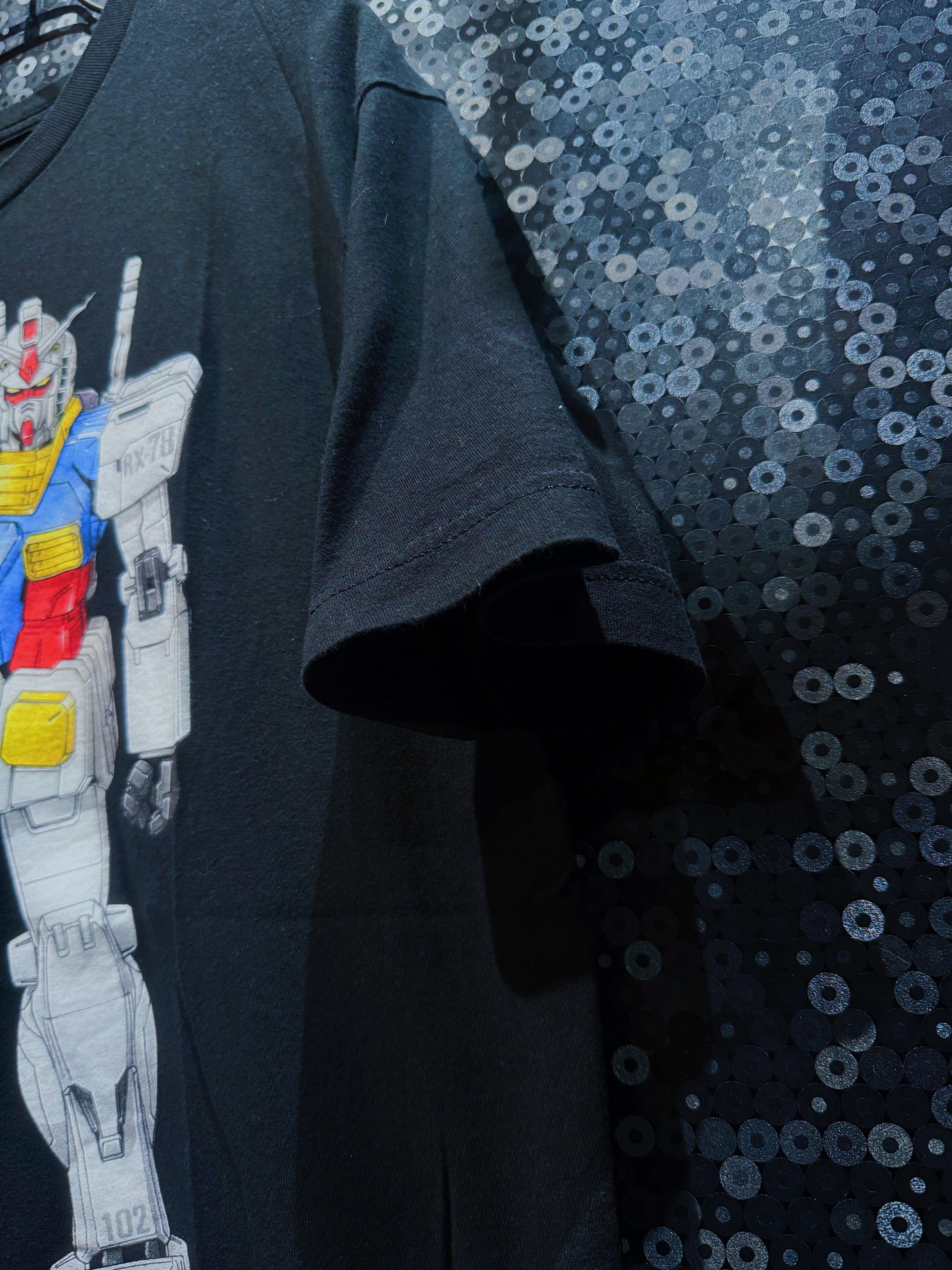 『機動戦士ガンダム(Mobile Suit Gundam)』の初代RX-78-2ガンダムをフィーチャーした公式Tシャツです。デザインの中心には、シリーズの象徴ともいえる白・青・赤のトリコロールカラーのモビルスーツ「RX-78-2」が立体感のあるディテールで描かれています。足元には「GUNDAM(ガンダム)」ロゴが日英併記でプリントされており、国内外問わずファンに訴求する仕様になっています。
