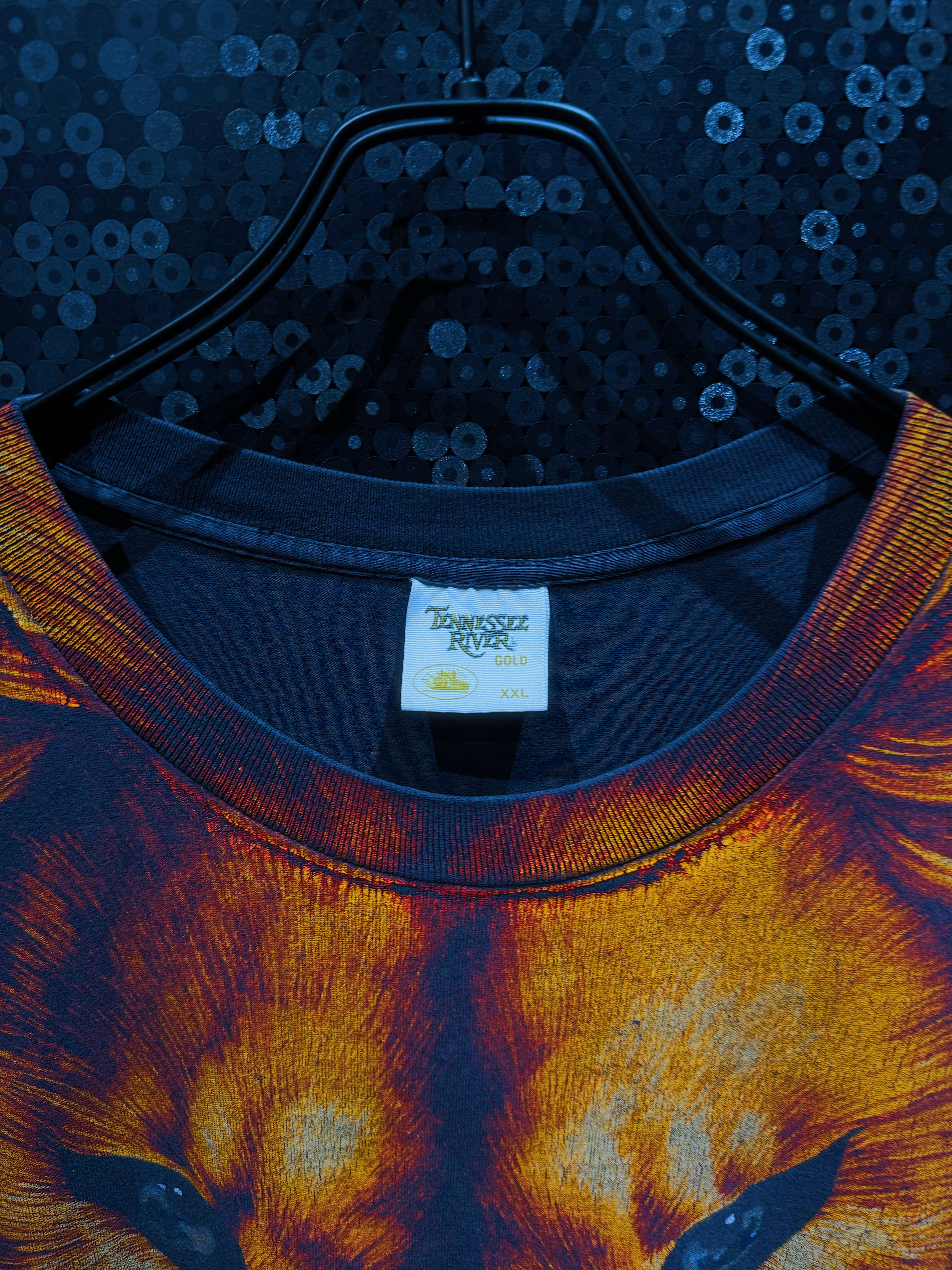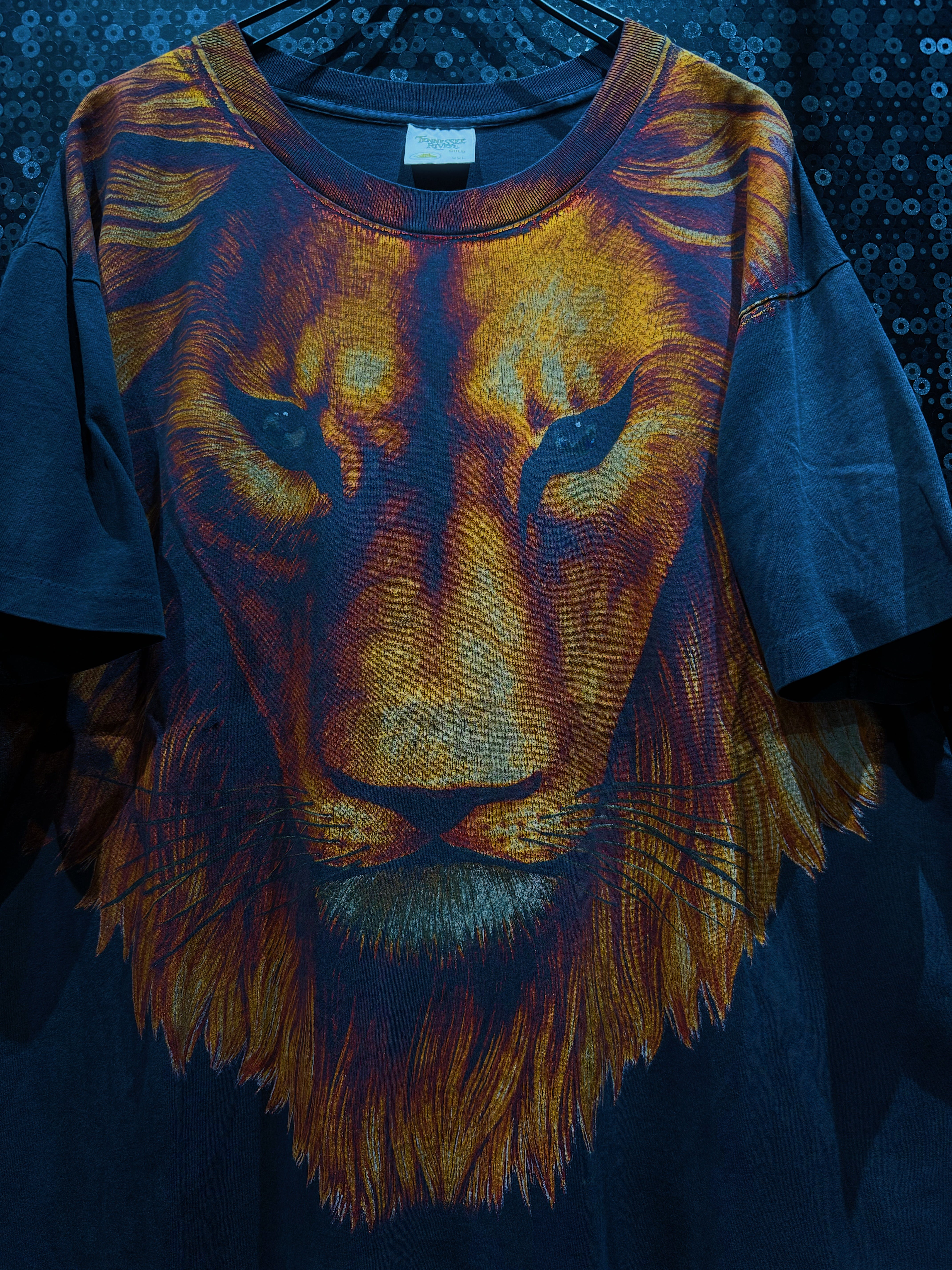 アメリカの「Tennessee River Gold」製のヴィンテージTシャツで、フロントにライオンのリアルなフェイスが大胆にプリントされたインパクトの強い一枚です。