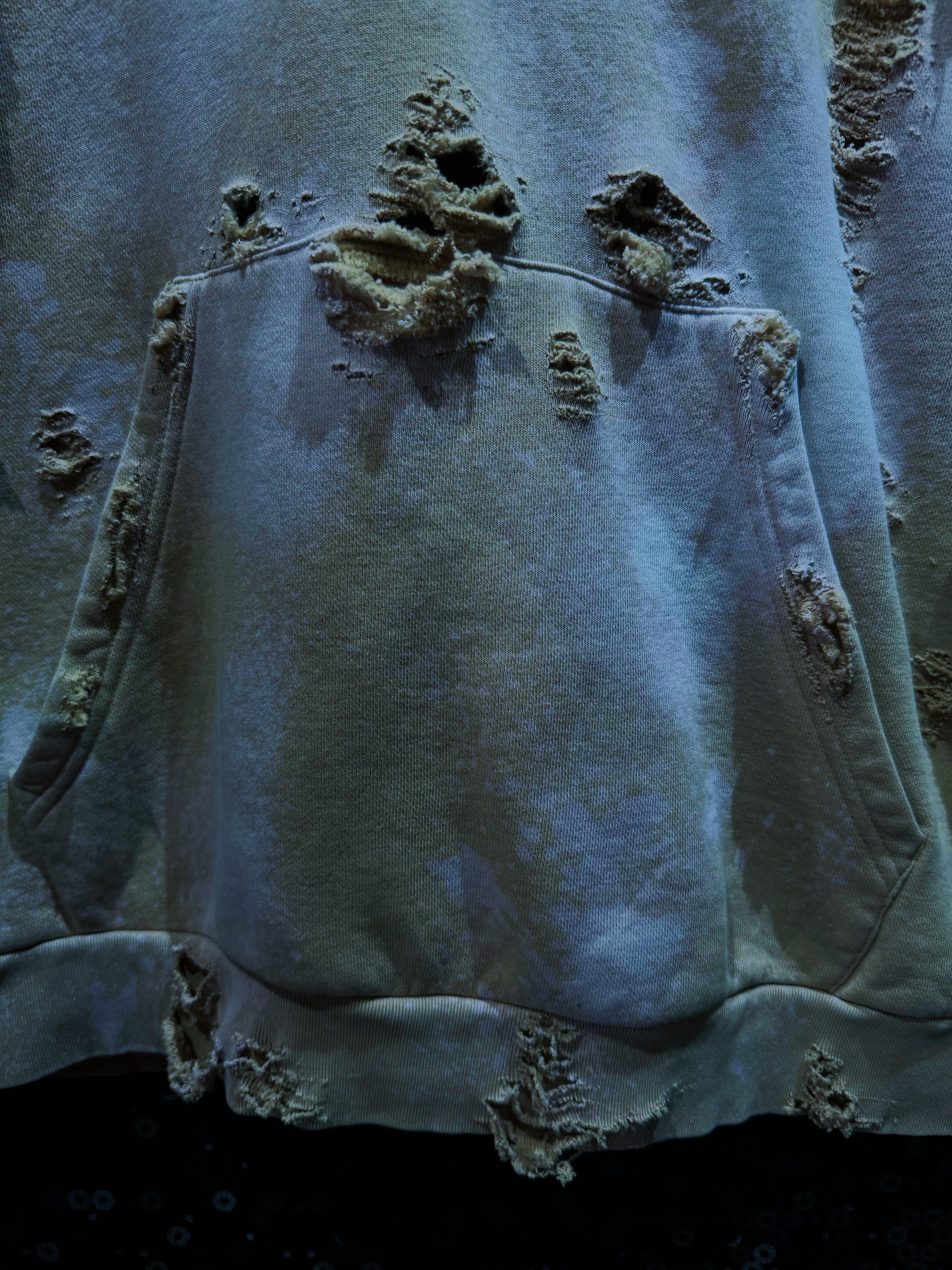 フードはカットオフされラフに垂れ下がる仕様で、ストリート×グランジを融合したようなエッジィな空気感も演出。