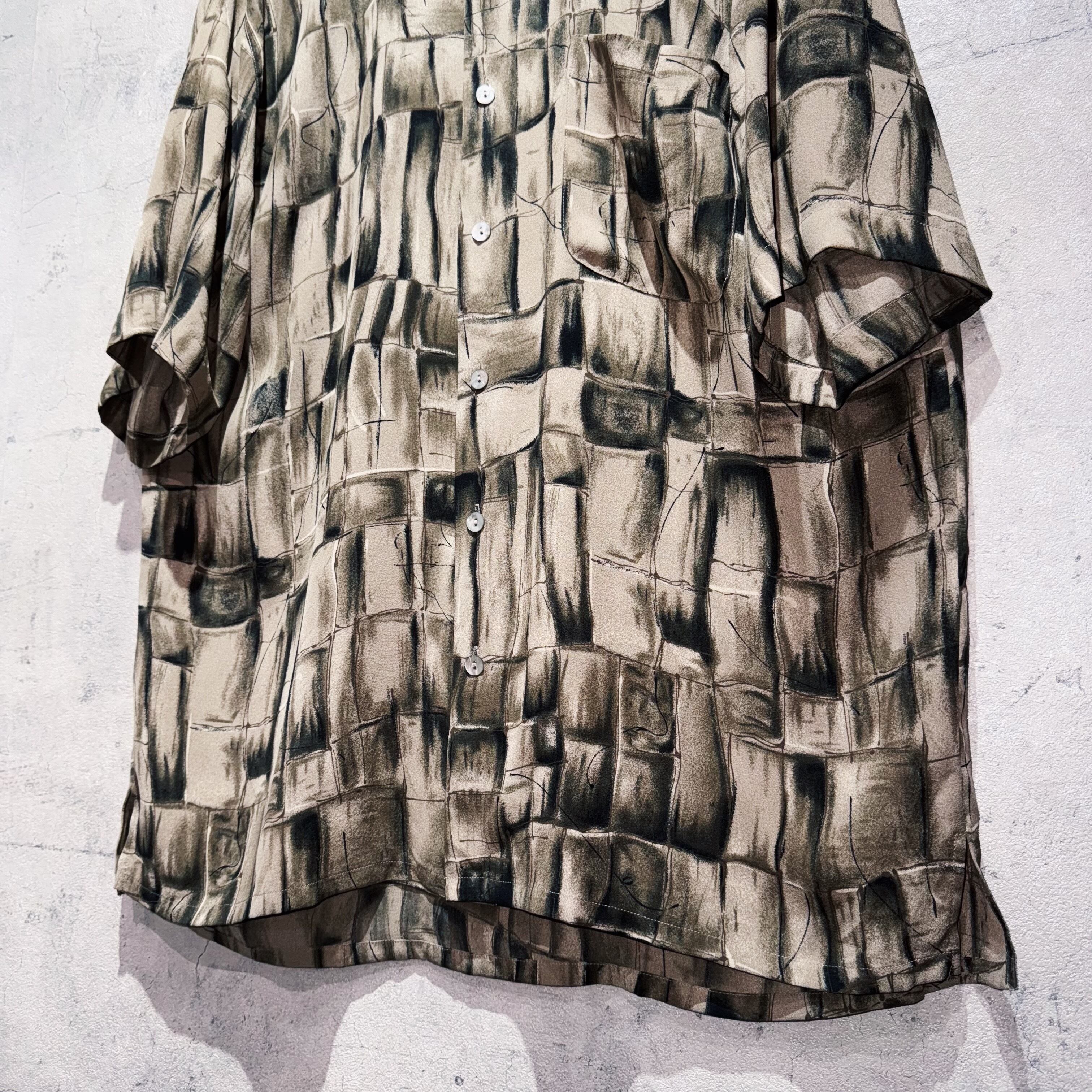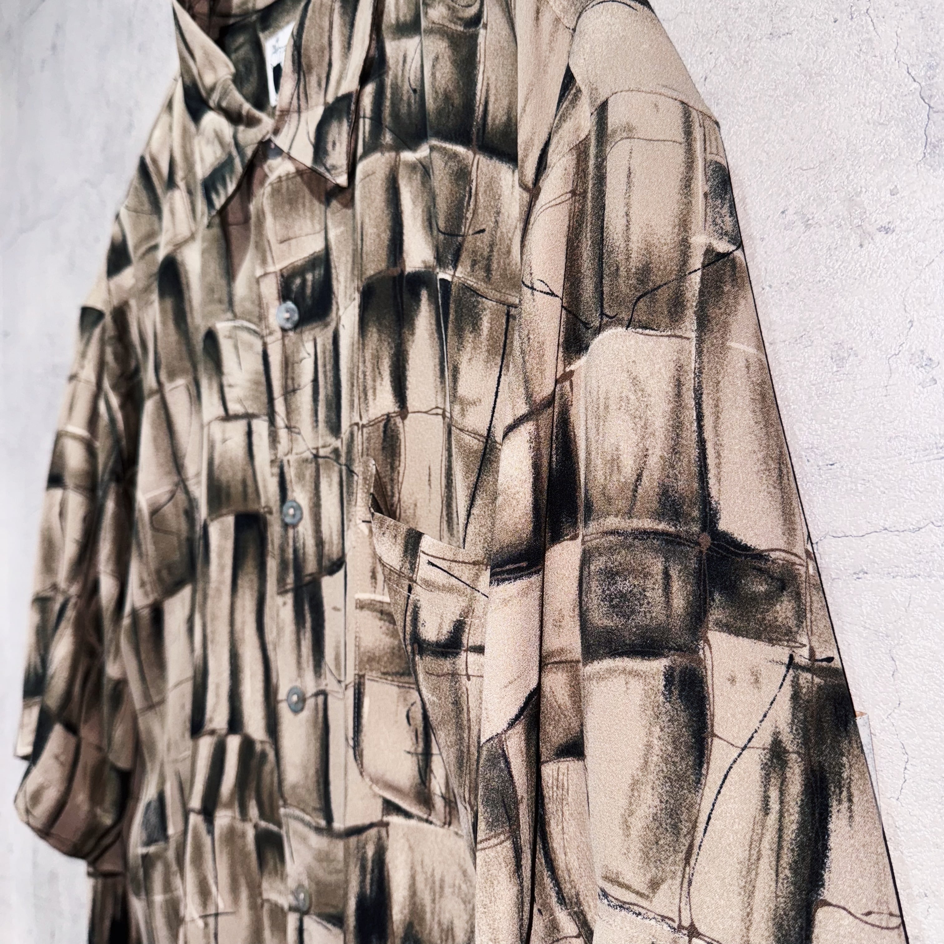 クロコダイル柄のような重厚感と渋さを兼ね備えた柄をアートグラフィックで表現したデザインシャツ。とろみのある素材感は着用時、綺麗に体のラインに沿ってドレープし美しいシルエットを演出。